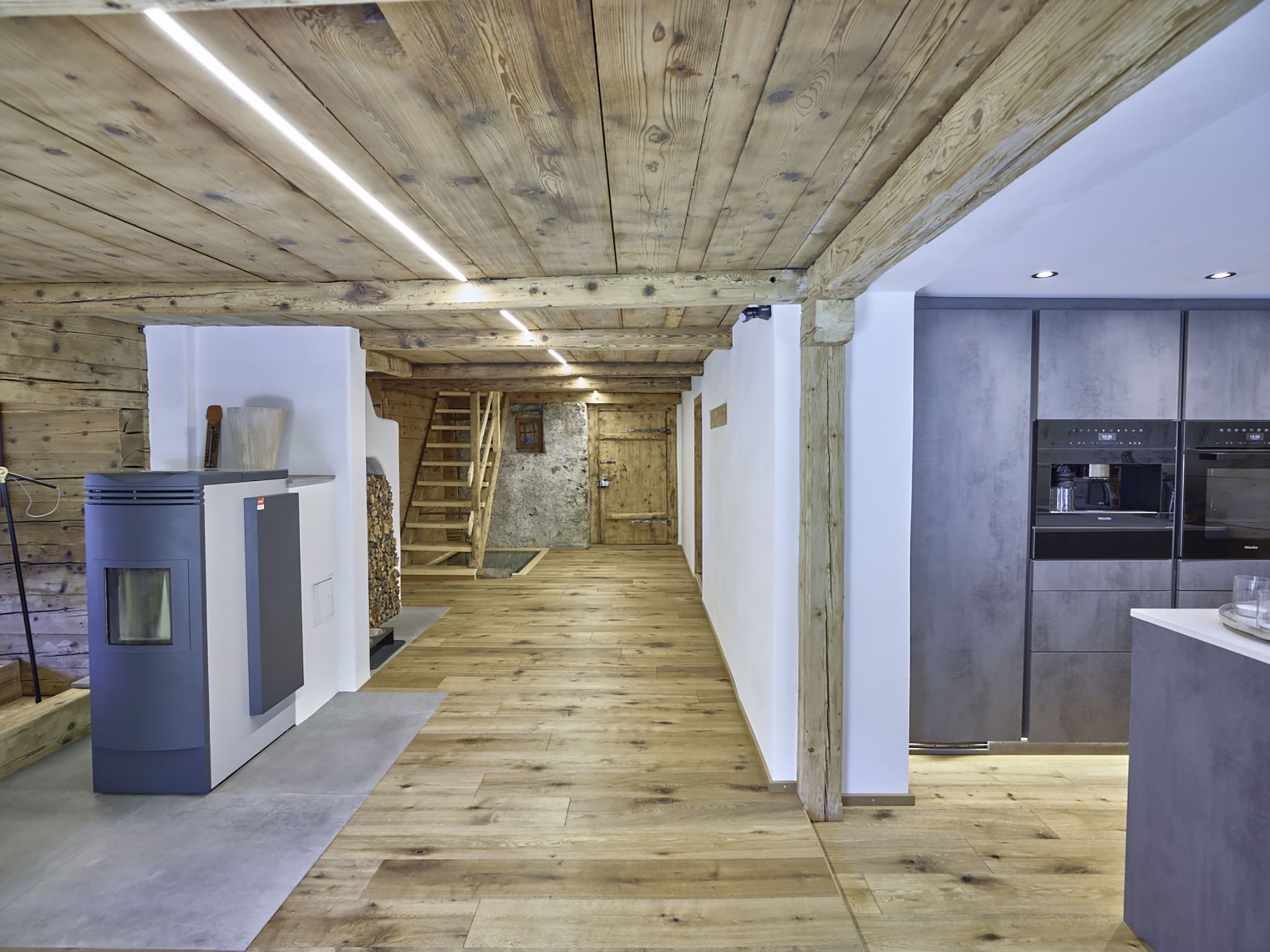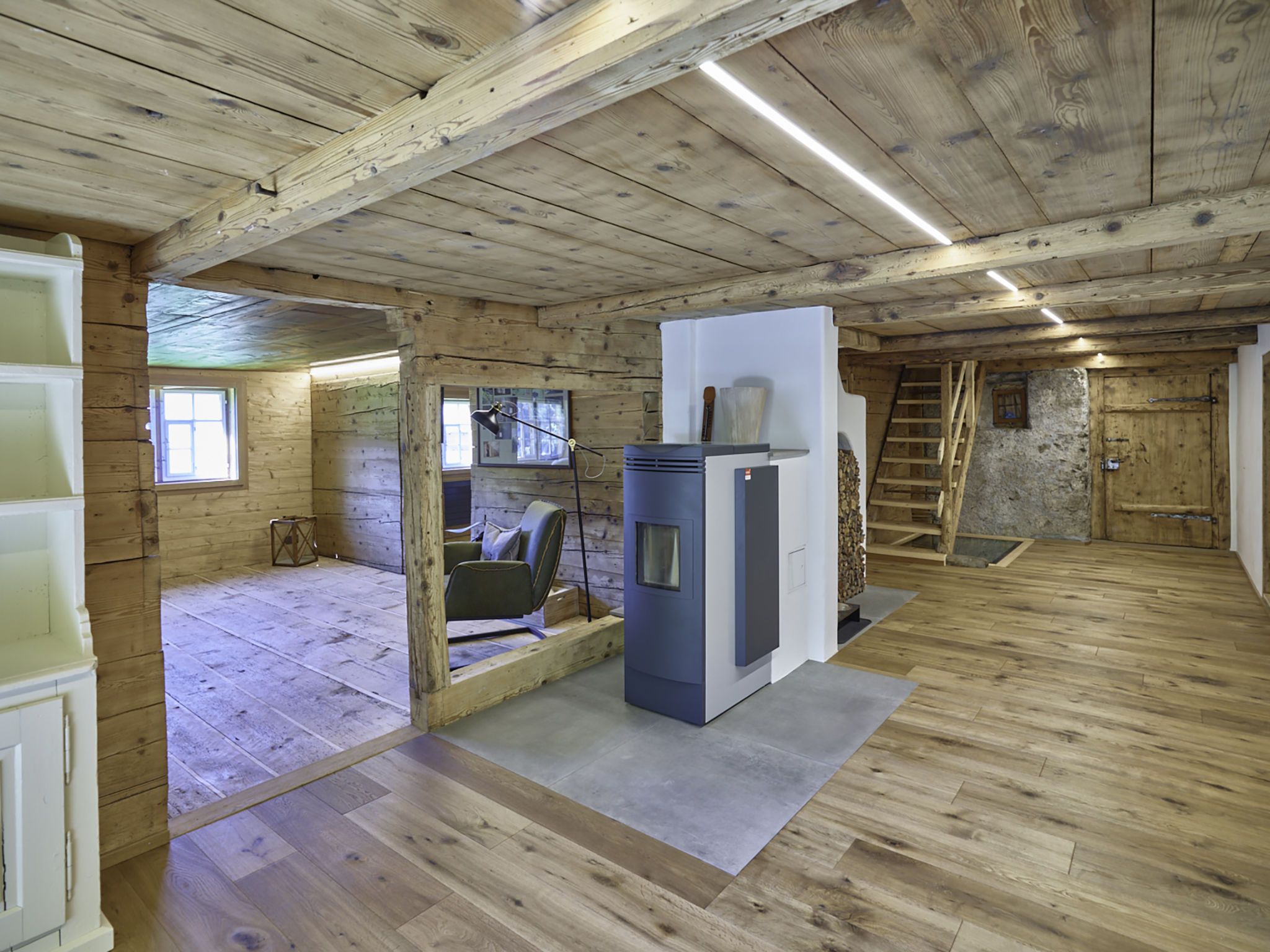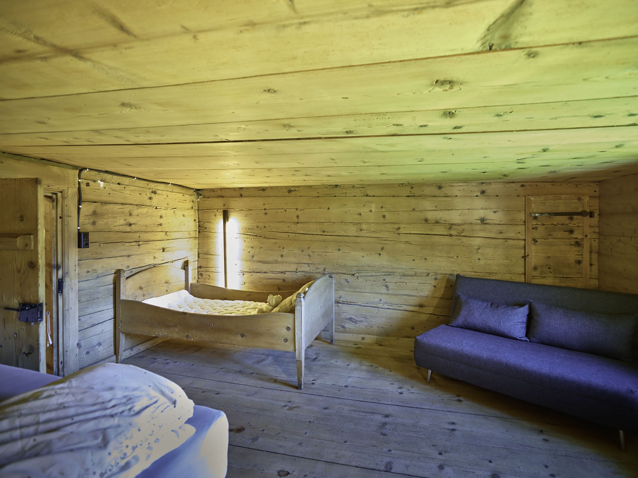 7-Zimmer-Haus 160 m2 auf 3 Stockwerken. Komfortabel und rustikal eingerichtet: Wohnzimmer, Deckenhöhe 180 - 200 cm, niedrige Türrahmen, Höhe 170 cm mit Kabel-TV (Flachbildschirm). Ausgang zum Gartensitzplatz. Esszimmer. Offene Küche (Backofen, Geschirrspüler, 4 Glaskeramikplatten, Toaster, Wasserkocher, Mikrowelle, Tiefkühler, elektrische Kaffeemaschine, Racletteofen, Fondue Set (Käse)). Dusche/WC. Obergeschoss: 2 Doppelzimmer, jedes Zimmer mit Kabel-TV (Flachbildschirm). 1 Zimmer mit 1 Diwanbett, 1 franz. Bett und Kabel-TV (Flachbildschirm). Bad/Dusche/WC. 2. Obergeschoss: (steile Treppe) 1 Zimmer mit 1 Diwanbett. Spielzimmer. Holzdielenboden. Gartensitzplatz 30 m2. Terrassenmöbel, Gartengrill, Liegestühle (3), Loggia, Abstellkammer. Schöne Sicht auf die Berge, die Landschaft und die Ortschaft. Zur Verfügung: Waschmaschine, Wäschetrockner, Babybett. Internet (Wireless LAN, gratis). Parkplatz, Garage beim Haus. Bitte beachten: Nichtraucher-Unterkunft.