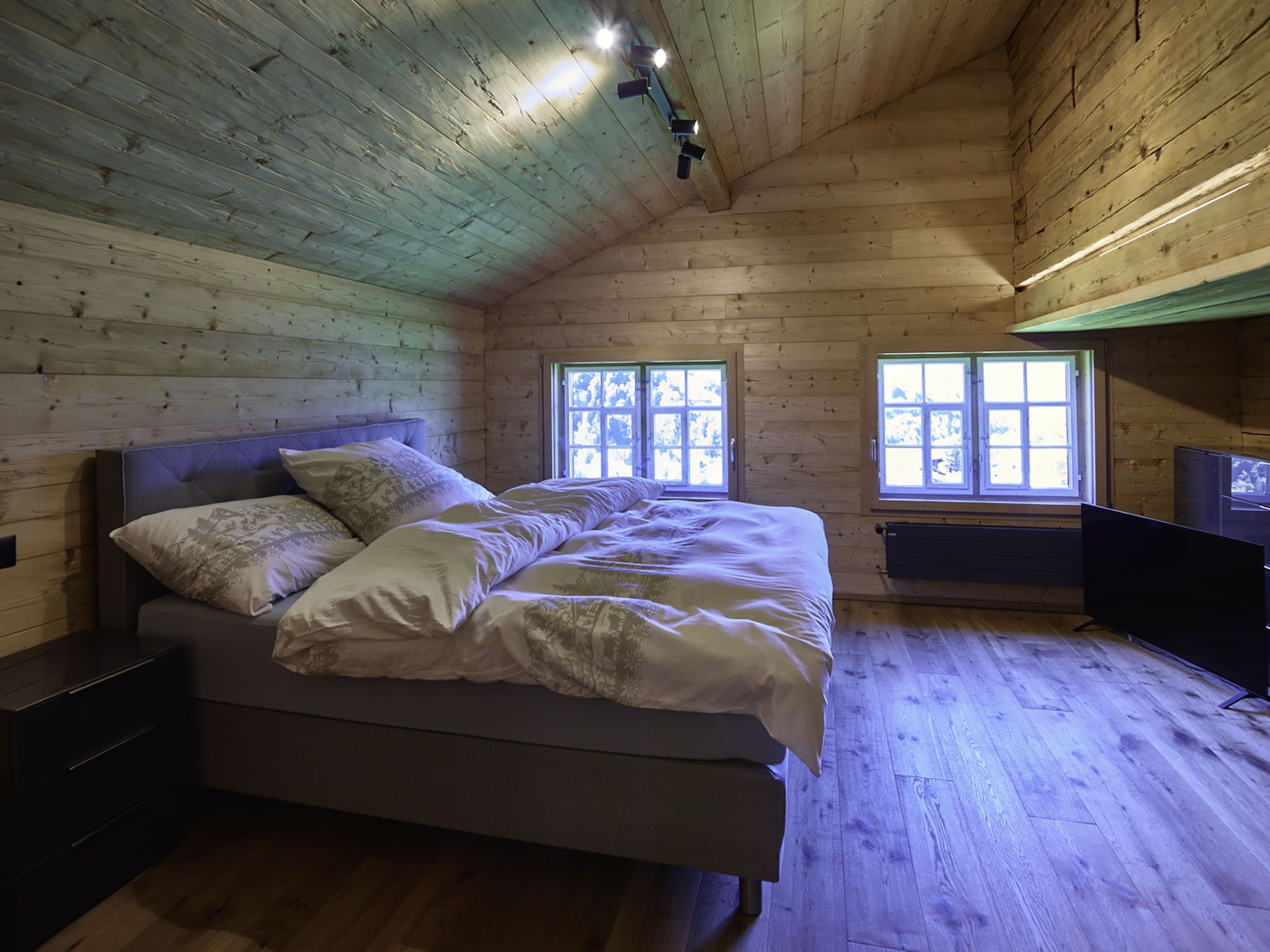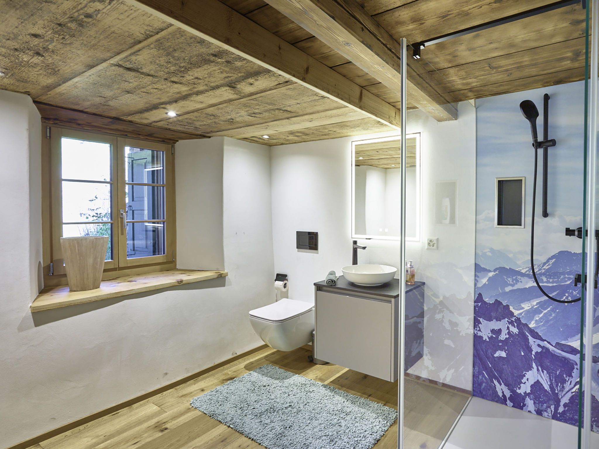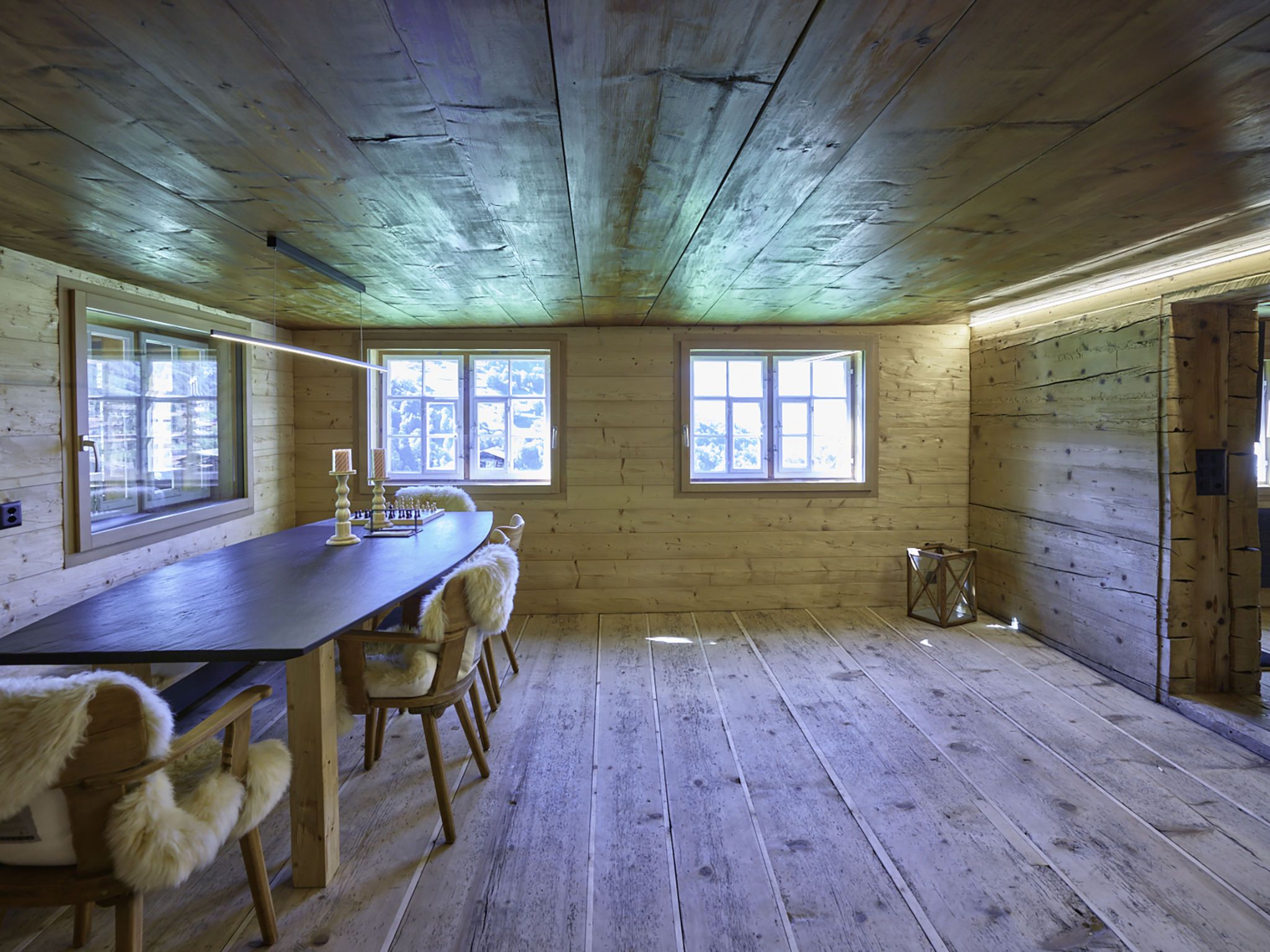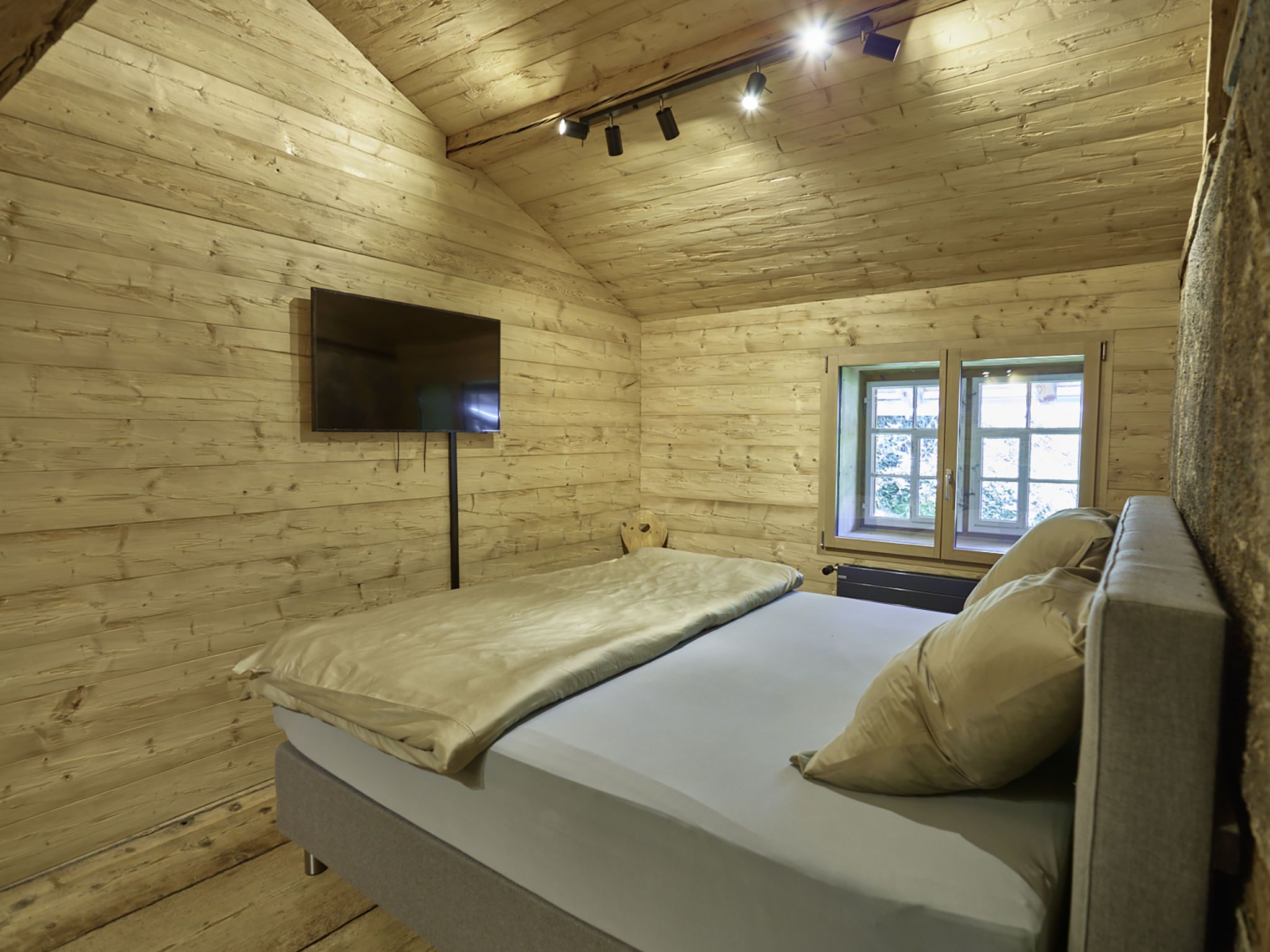 7-Zimmer-Haus 160 m2 auf 3 Stockwerken. Komfortabel und rustikal eingerichtet: Wohnzimmer, Deckenhöhe 180 - 200 cm, niedrige Türrahmen, Höhe 170 cm mit Kabel-TV (Flachbildschirm). Ausgang zum Gartensitzplatz. Esszimmer. Offene Küche (Backofen, Geschirrspüler, 4 Glaskeramikplatten, Toaster, Wasserkocher, Mikrowelle, Tiefkühler, elektrische Kaffeemaschine, Racletteofen, Fondue Set (Käse)). Dusche/WC. Obergeschoss: 2 Doppelzimmer, jedes Zimmer mit Kabel-TV (Flachbildschirm). 1 Zimmer mit 1 Diwanbett, 1 franz. Bett und Kabel-TV (Flachbildschirm). Bad/Dusche/WC. 2. Obergeschoss: (steile Treppe) 1 Zimmer mit 1 Diwanbett. Spielzimmer. Holzdielenboden. Gartensitzplatz 30 m2. Terrassenmöbel, Gartengrill, Liegestühle (3), Loggia, Abstellkammer. Schöne Sicht auf die Berge, die Landschaft und die Ortschaft. Zur Verfügung: Waschmaschine, Wäschetrockner, Babybett. Internet (Wireless LAN, gratis). Parkplatz, Garage beim Haus. Bitte beachten: Nichtraucher-Unterkunft.
