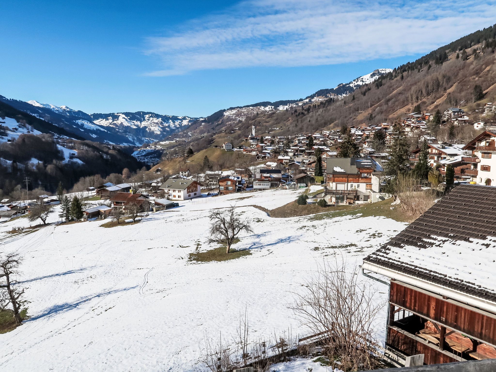 Saas im Prättigau 7 km von Klosters: Rustikales, komfortables Landhaus Im Rach, 980 m.ü.M., auf 3 Stockwerken, Baujahr 1900, renoviert im Jahre 2023. Am Ortsrand, 700 m vom Zentrum, alleinstehende, ruhige, sonnige Lage, 7 km vom Skigebiet, in einer Sackgasse, im Grünen. Zur Alleinbenutzung: Grundstück, Garten 100 m2. Grill. Im Hause: Einstellraum für Fahrräder, Skiraum, Zentralheizung. Zufahrt bis zum Haus. Im Winter 4x4 empfohlen. Parkplatz beim Haus, Einzelgarage beim Haus. Lebensmittelgeschäft 1 km, Supermarkt 3 km, Restaurant 1 km, Bushaltestelle 300 m, Bahnstation Saas im Prättigau 500 m, Hallenbad 3 km. Luftseilbahn 7 km, Skilift 7 km, Skisportanlagen 7 km, Skipisten 7 km, Skibushaltestelle 300 m, Skischule 7 km, Schlittelbahn 7 km, Eisfeld 7 km. Bekannte Skigebiete sind gut erreichbar: Klosters Madrisa 7 km, Klosters/Davos Parsenn 9 km. Bitte beachten: Hauptstrasse in der Nähe.