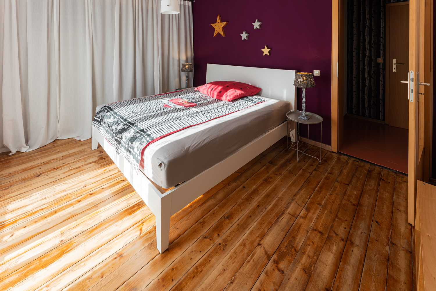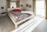 Die beiden separaten Schlafzimmer sind 12 und 15qm groß und jeweils mit einem Doppelbett (160 x 200 cm + 180 x 200 cm, durchgehende Matratzen) ausgestattet.
