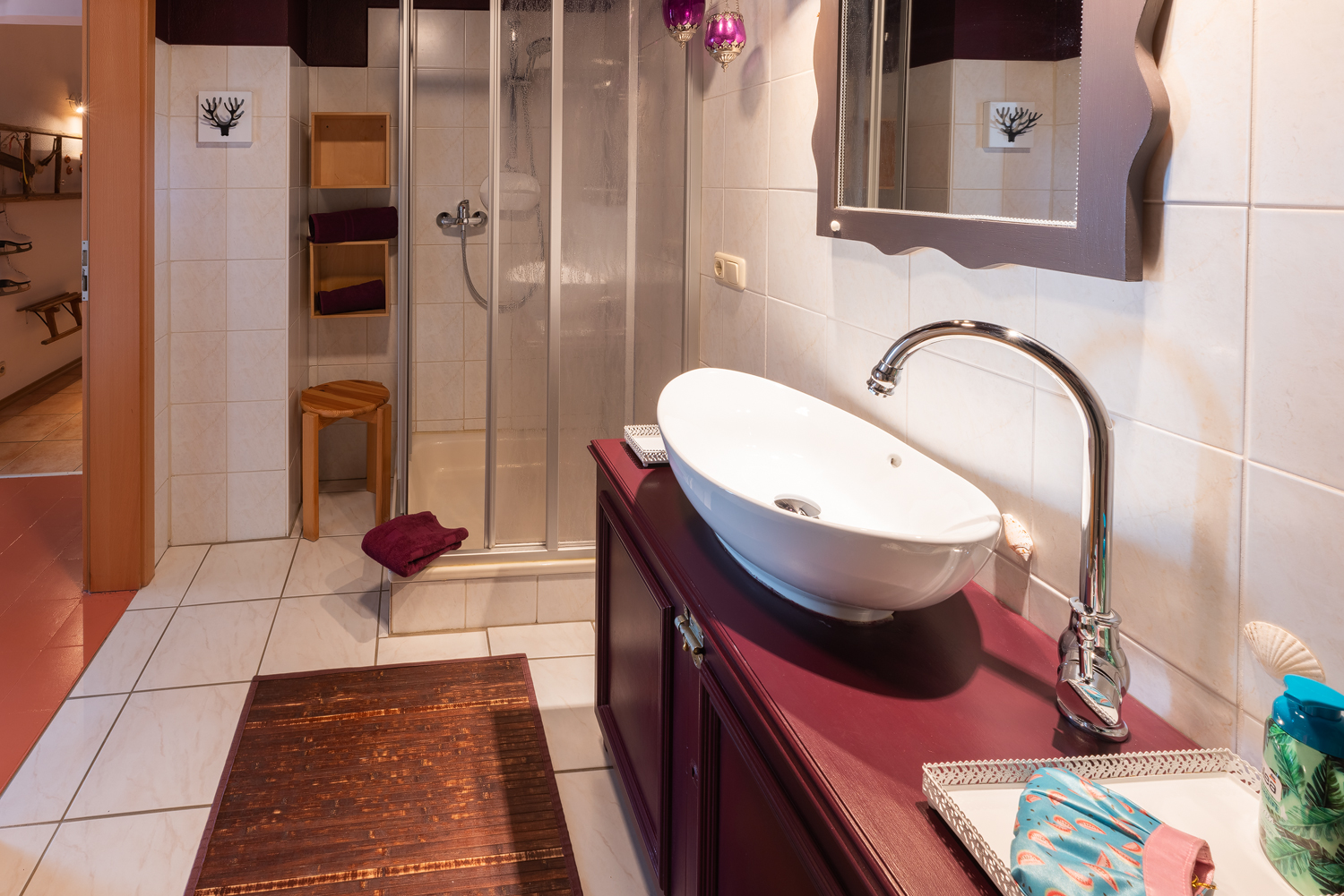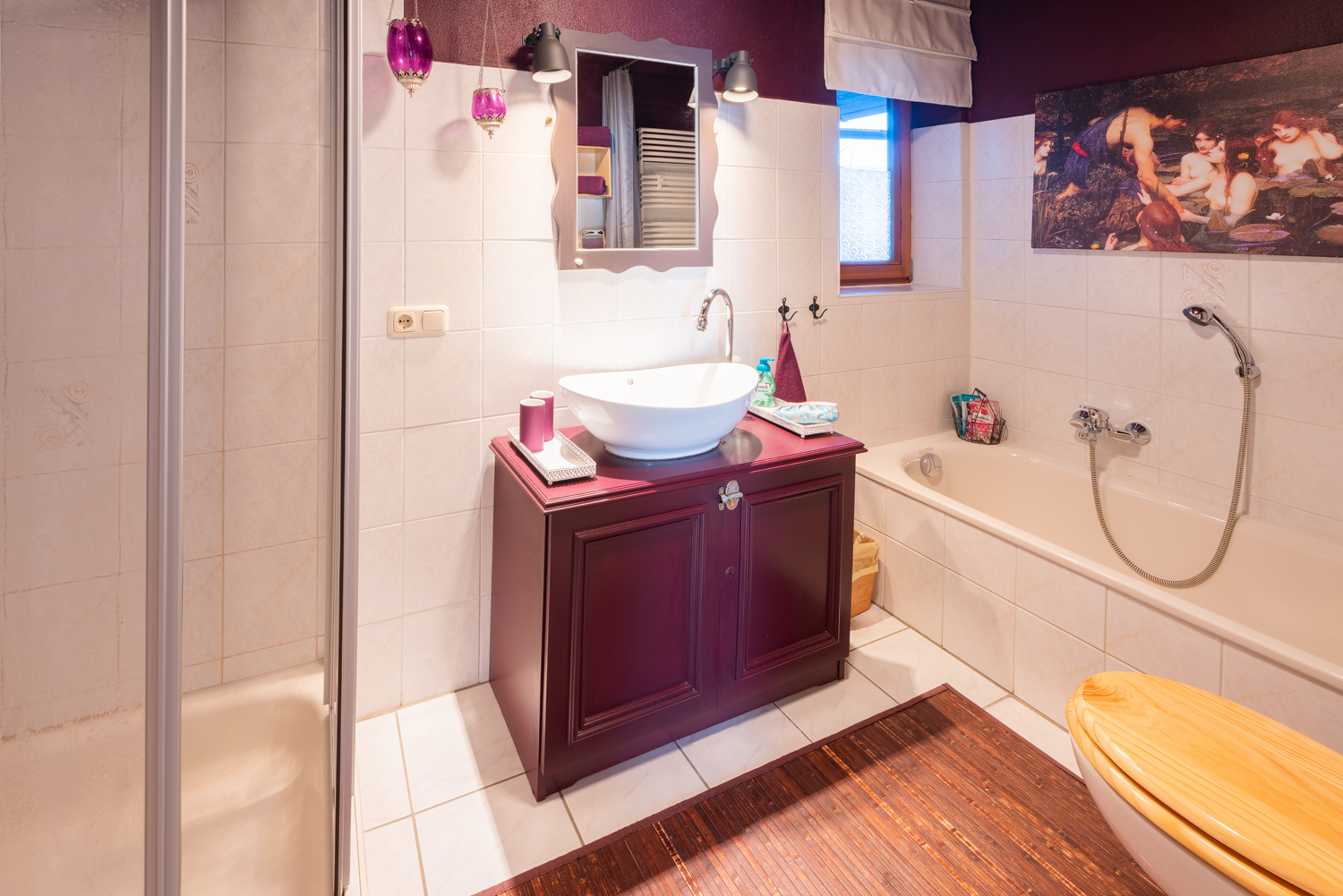 Das Bad hat ein WC, Waschtisch, Dusche und eine Badewanne. Um Seife und Toilettenpapier (Erstaustattung) brauchen sie sich nicht zu kümmern.