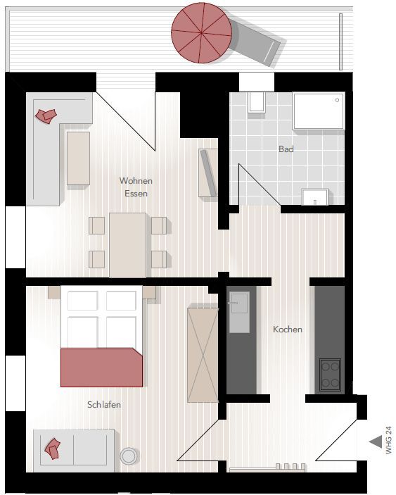 2-Raum Komfort Wohnung mit Holzböden und Balkon für 1-2 Personen.
