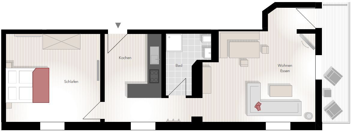 2-Raum Wohnung im 2. Stock mit 52qm und Balkon für 1-3 Personen.
