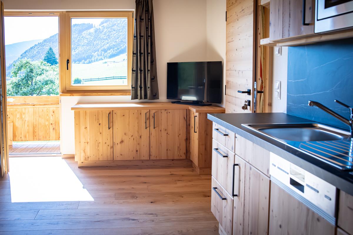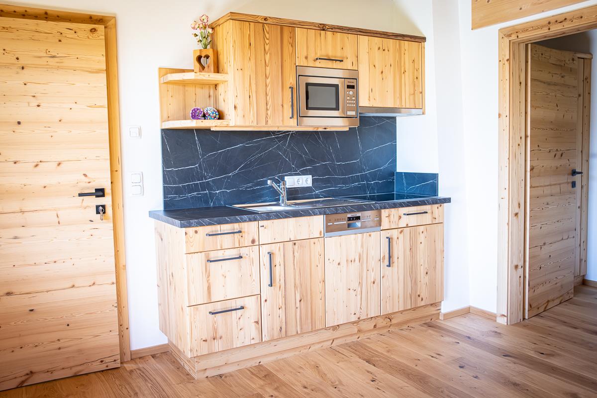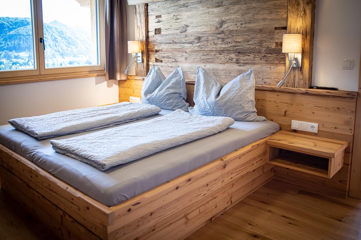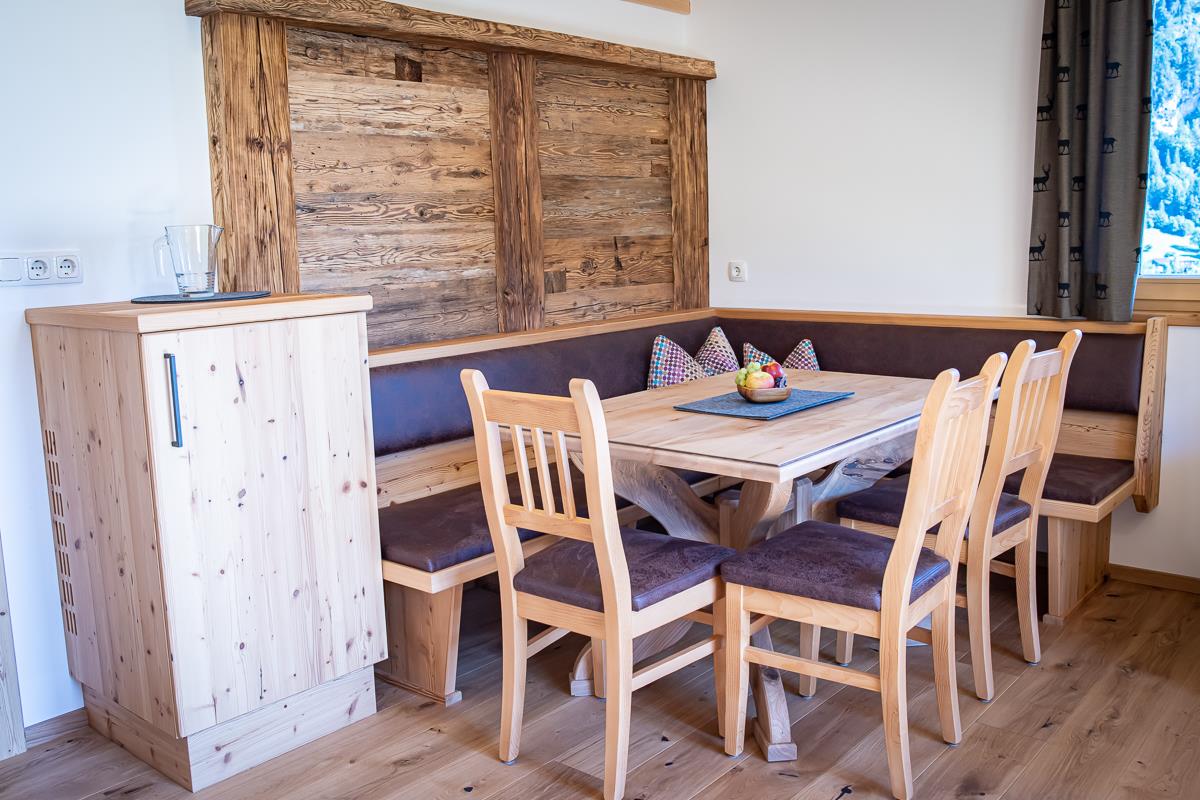 Unser ganz besonders Augenmerk legten wir dabei auf die Verwendung von regionalen und natürlichen Materialien. Das verarbeitete Fichten- und Zirbenholz stammt großteils aus dem hofeigenen Bergwald und in maßgenauer Handarbeit mit viel Liebe zum Detail im heimeligen Altholz-Stil eingebaut.