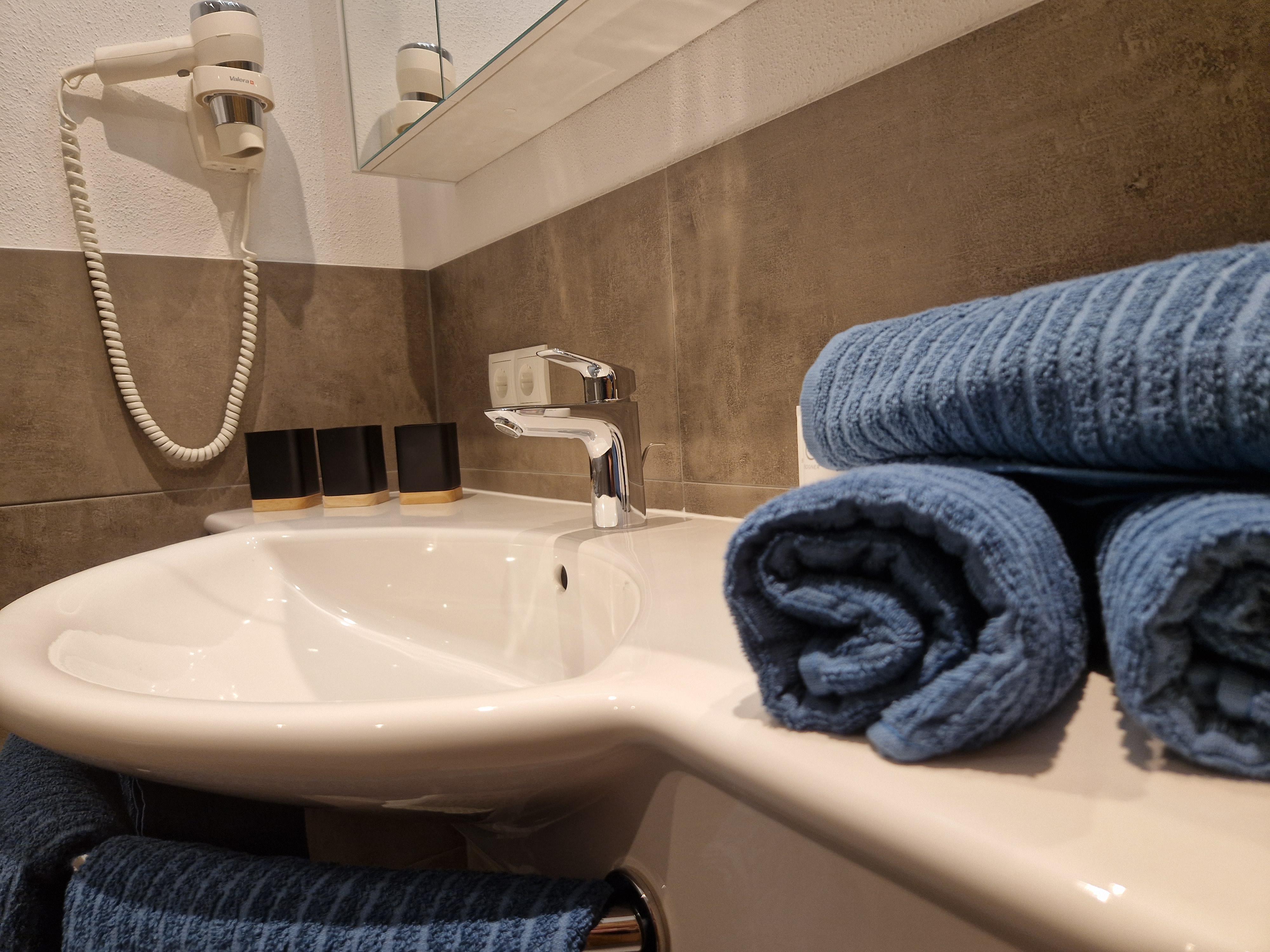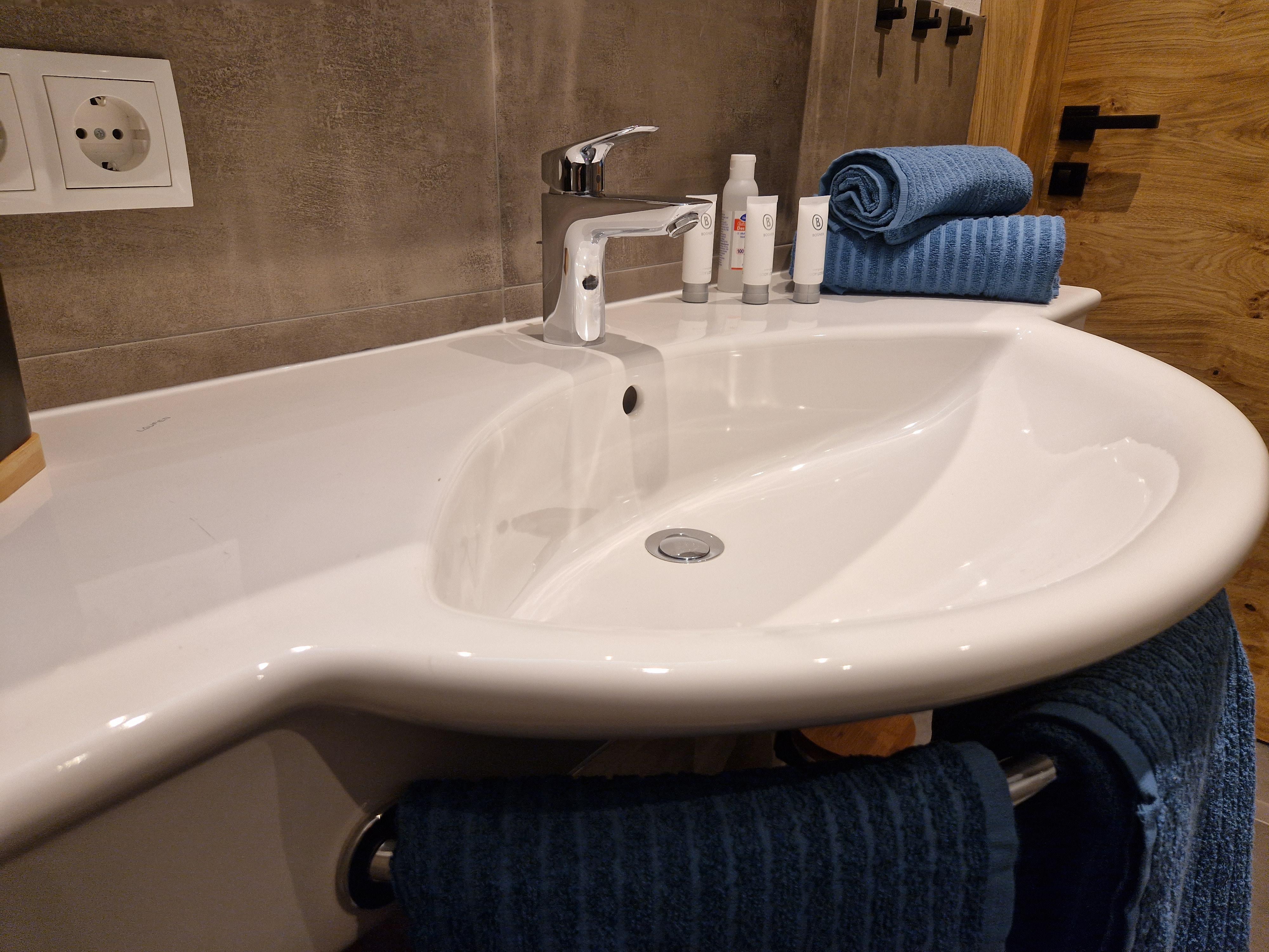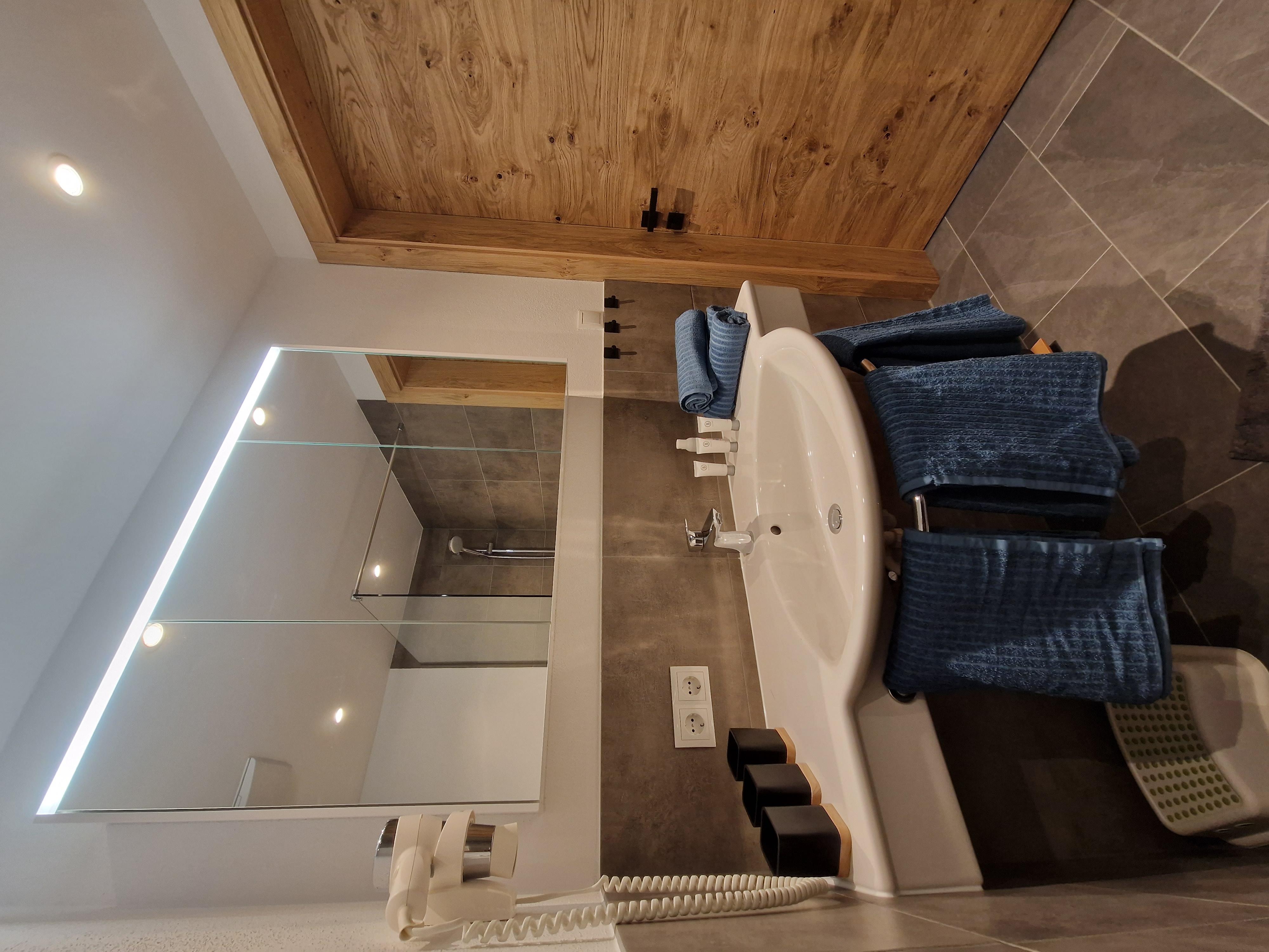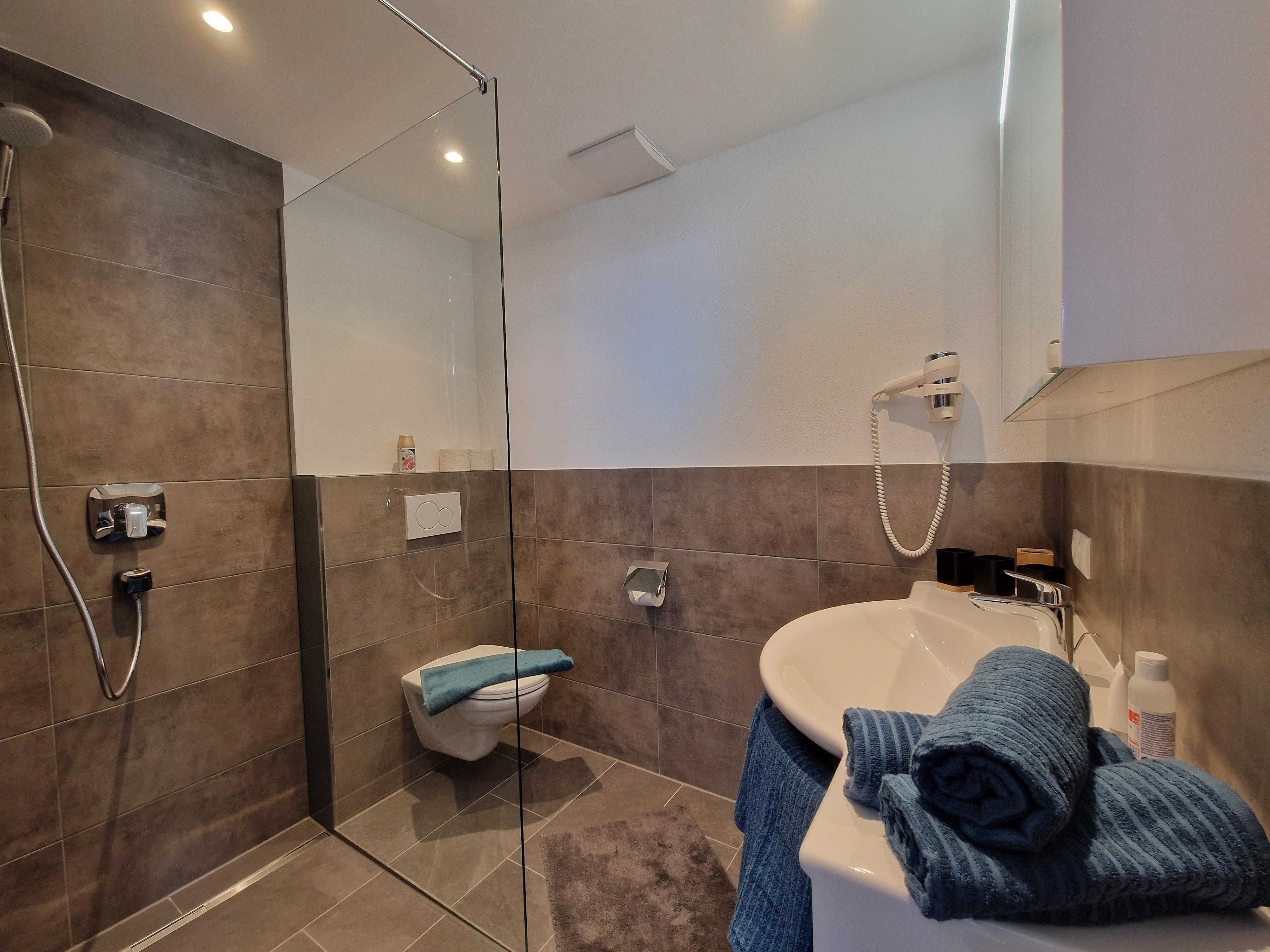 Apart Kreuzspitz mit ca. 31 m²: 1 Schlafzimmer mit Doppelbett und einem Einzelbett, Badezimmer mit Dusche/WC, Wohnküche mit Essbereich und Küchenzeile (Cerankochfeld, Backrohr, Geschirrspüler, Kühlschrank, Wasserkocher uvm.), Balkon mit Sitzgelegenheit.
