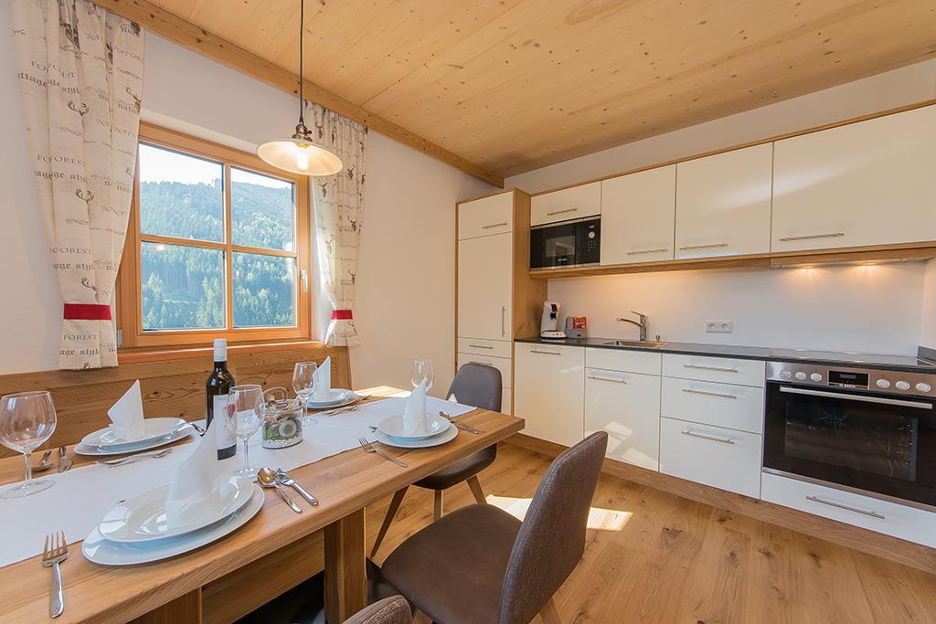 • komplett ausgestattete Küche mit Kaffeemaschine, Wasserkocher, Mikrowelle, Herd mit Backrohr & Geschirrspüler