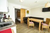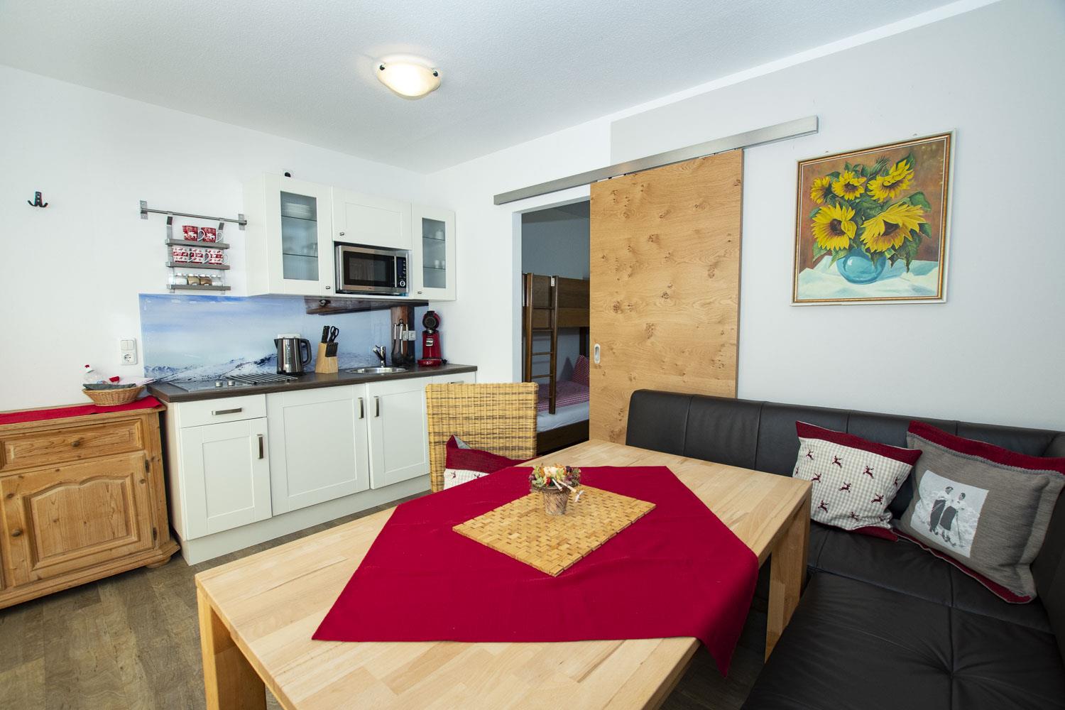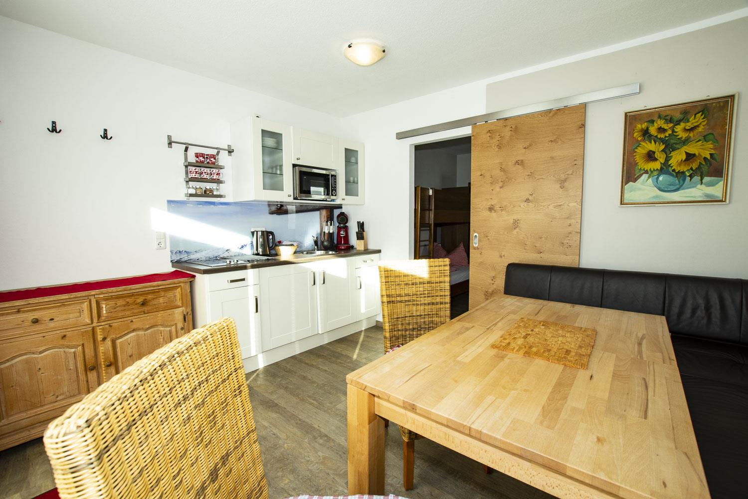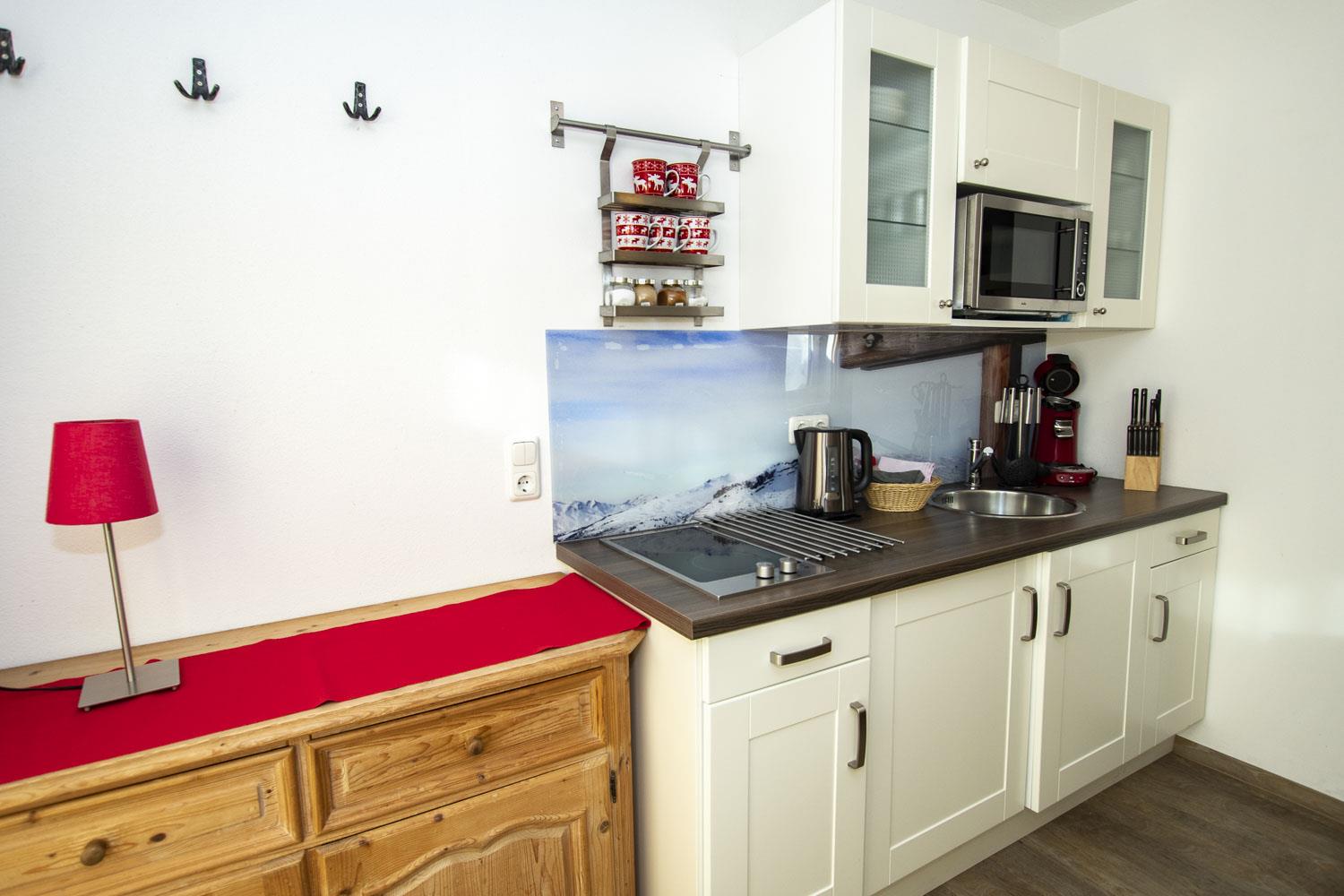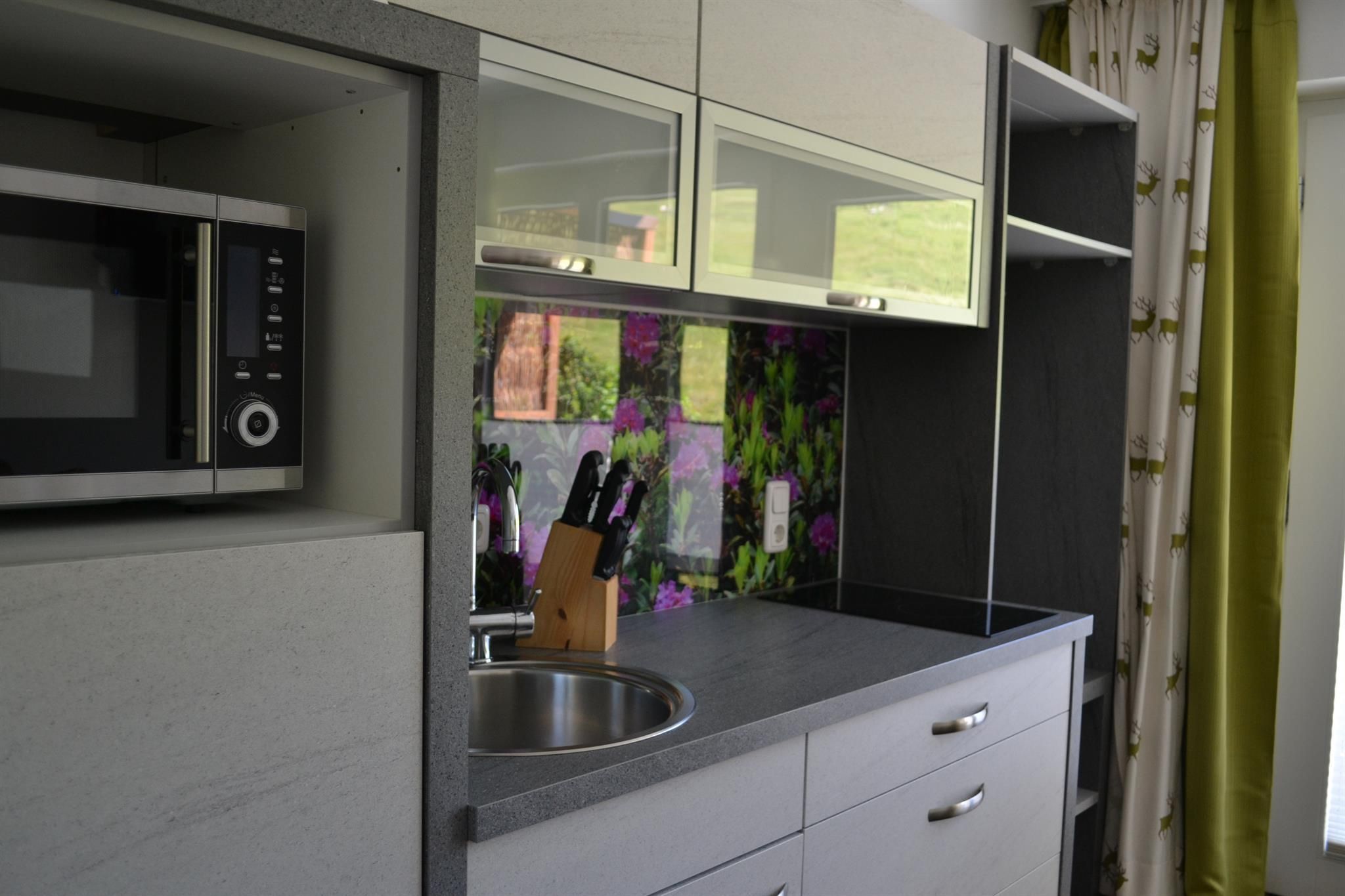 Gemütliches, kleines Appartement mit eigenem Eingang über die Terrasse. Im Wohn- Essbereich befindet sich eine Eckcouch mit Esstisch und eine voll ausgestattete Küchenzeile. 2-Platten Herd, Micro-Grill, Wasserkocher, Toaster und Kaffemaschine.