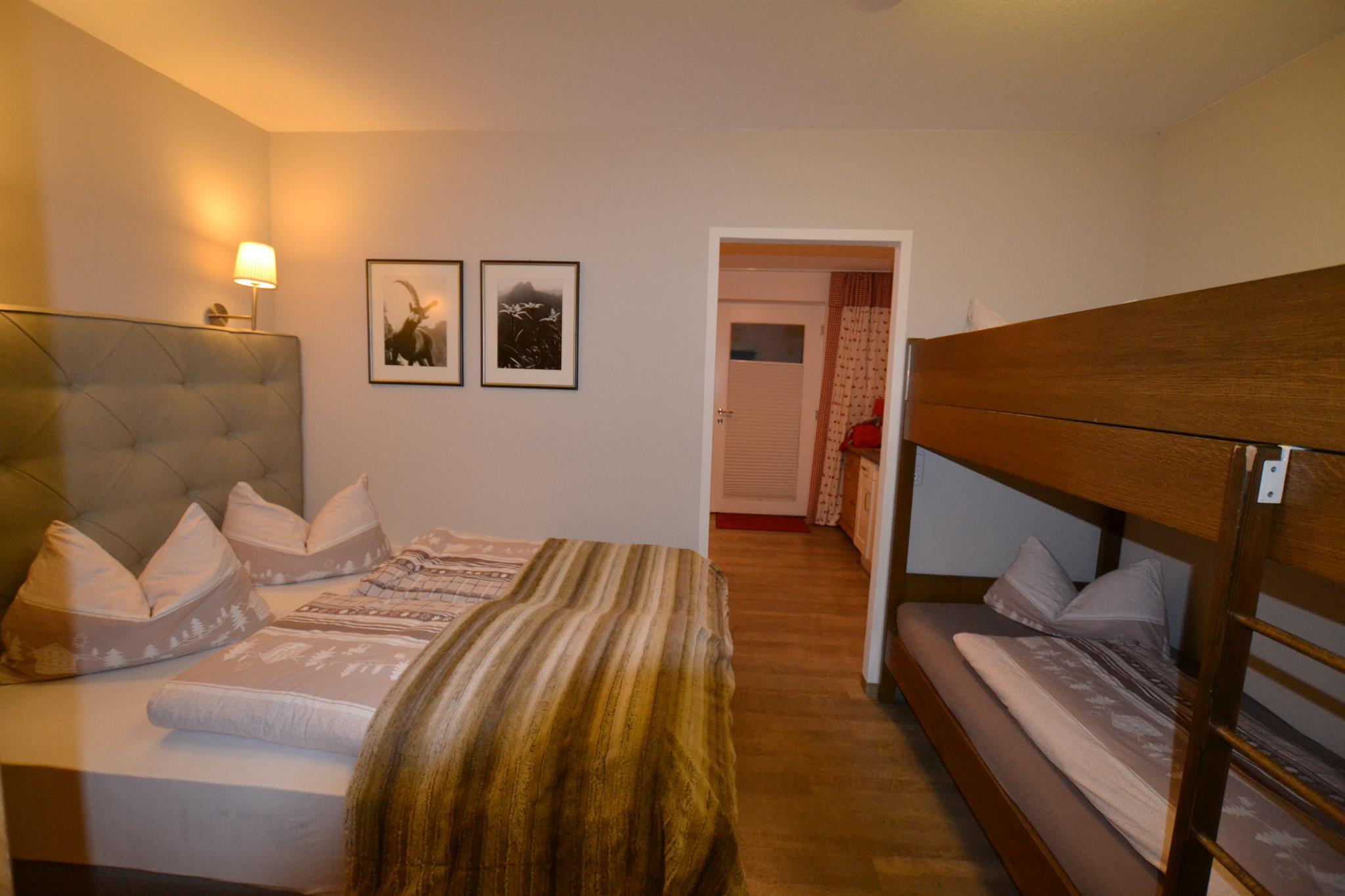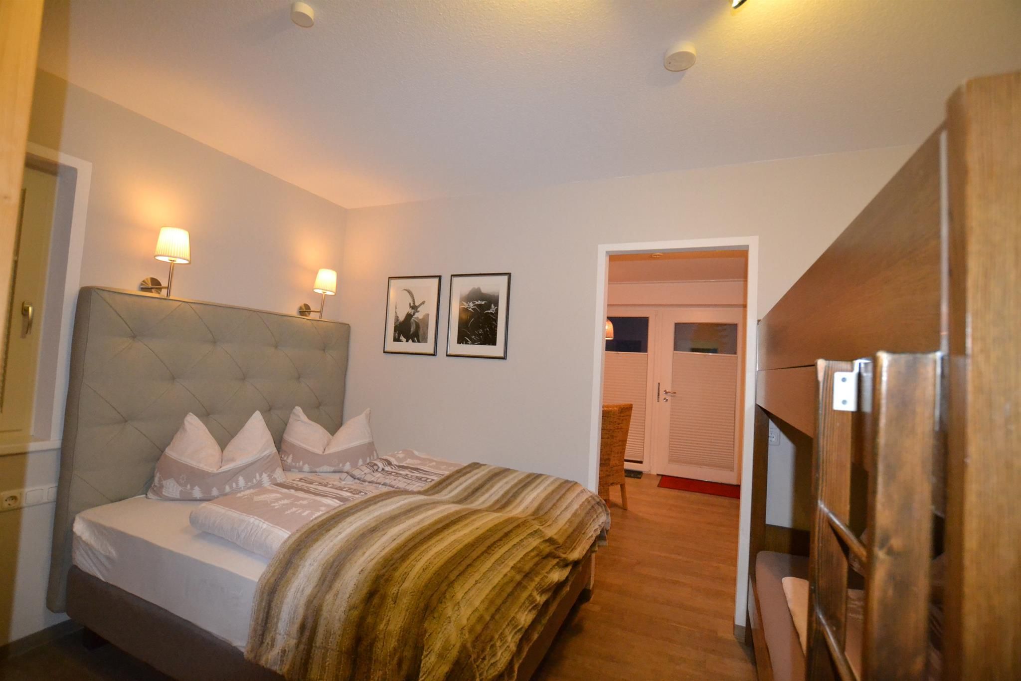Ein Box-Spring Doppelbett (1,60 m) und ein Einzelbett sind vorhand. Der Schlafbereich ist mit einer Schiebetüre getrennt.