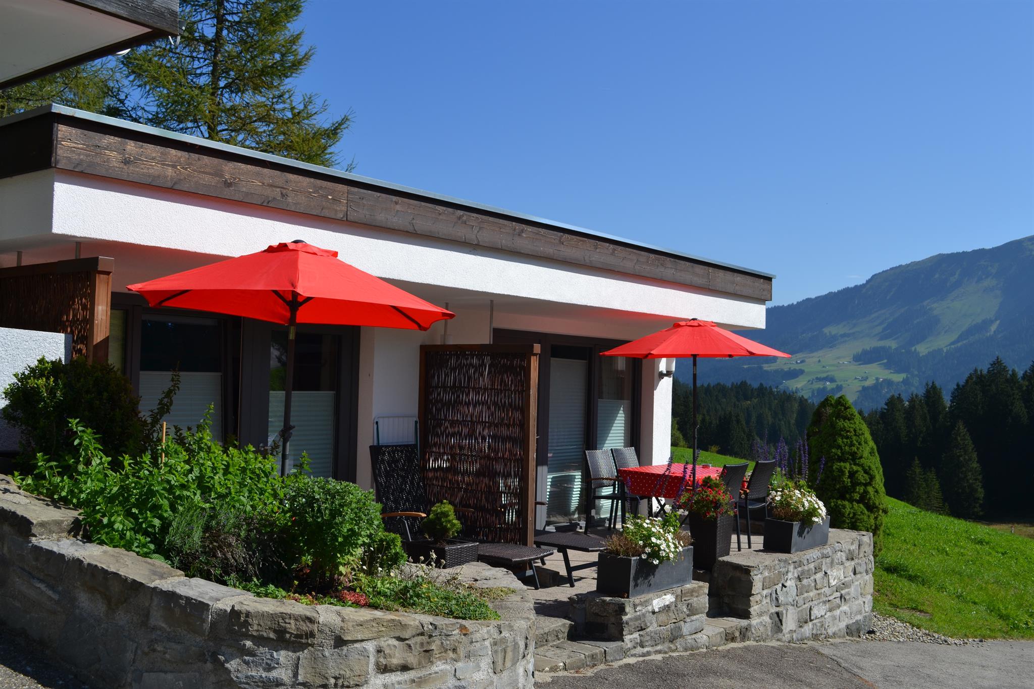 Grosses Panoramafenster mit Südterrasse. Hund auf Anfrage mit Aufpreis möglich.