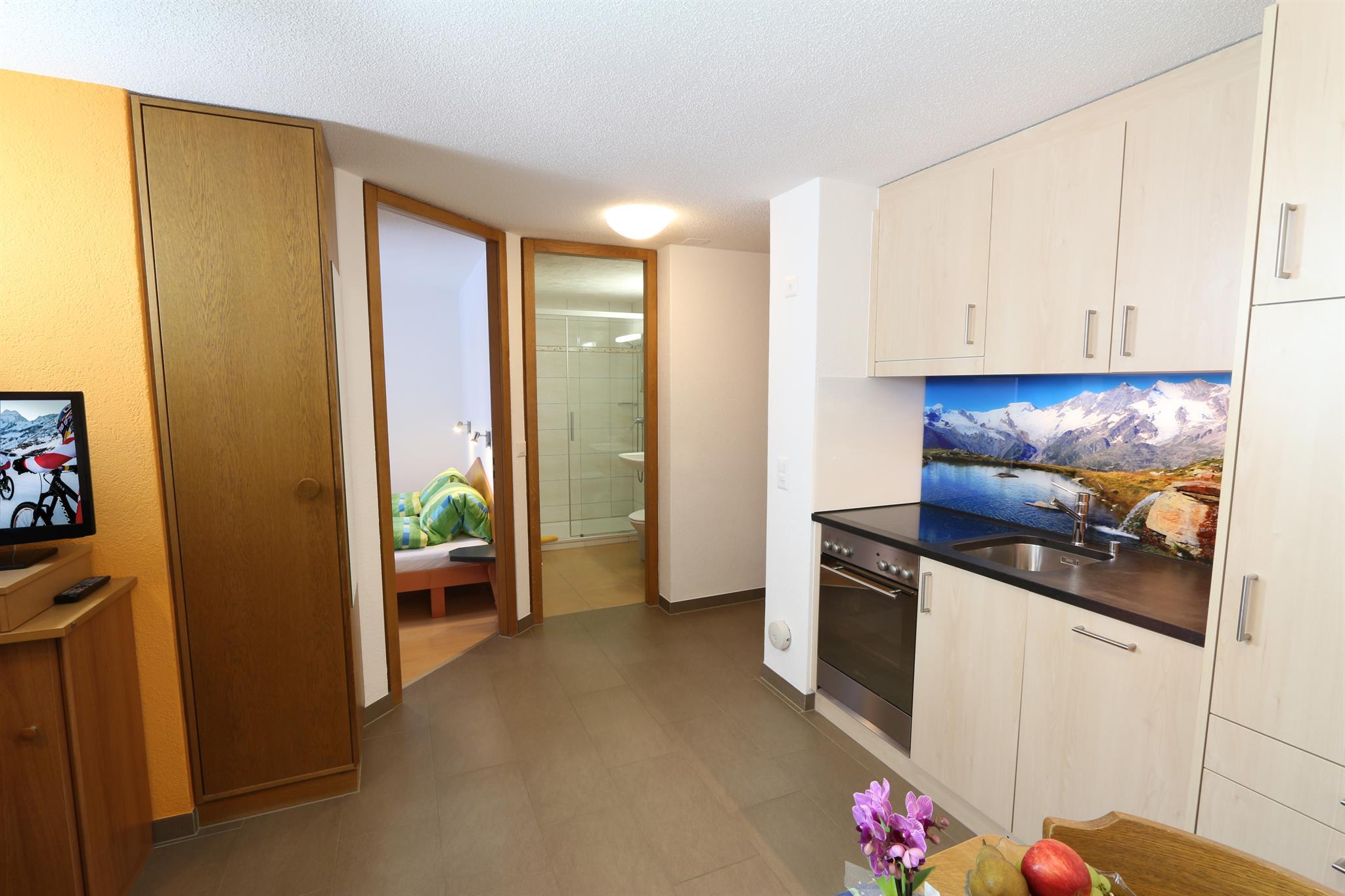Moderne und geräumige ***s / ****Apartments für 1 – 6 Personen in einem Top-Qualitätsstandard. Je nach Wohnungsgrösse mindestens 1 Schlafzimmer mit Lavabo. Vollausgestattete Wohn-Essküche mit Ceran-Kochfeld, Backofen, Kühlschrank mit Gefrierfach, Nespresso Kapsel-Kaffeemaschine, Geschirrspüler, Wasser- & Eierkocher sowie Käse-Fondue Caquelon. (Raclette-Ofen, Tischgrill, Toaster etc. stehen auf Anfrage zur Verfügung – einfach fragen!) Radio-CD Player, TV-Flachbildschirm mit Kabel-TV und Infokanal Saas-Fee, kostenfreies W-LAN, Safe, Dusche/WC mit Haartrockner. Sonniger Südbalkon mit einzigartigem Panoramablick auf die Gletscherbergwelt und Bergspitzen der Mischabelkette.