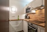 hervorragend ausgestattete Küche mit Kühlschrank, kleinem Gefrierfach und Geschirrspüler