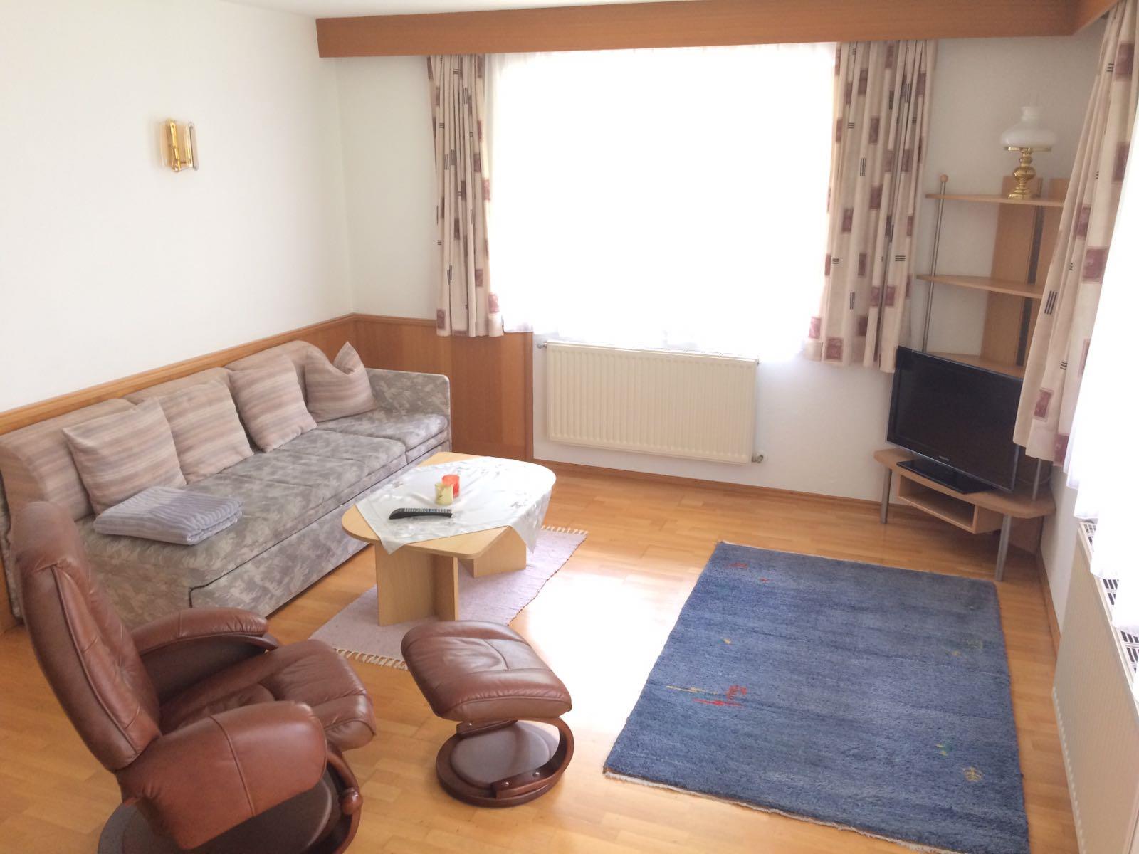Unsere Ferienwohnung mit ca. 75 m² befindet sich im Zentrum von Oetz und besteht aus: 2 Doppelschlafzimmern; 1 großen Wohnzimmer (Schlafmöglichkeit für 5.+6 Person); 1 vollausgestattete Küche; 1 Badezimmer mit Dusche/WC; großen Flur und einer Terrasse mit Garten.