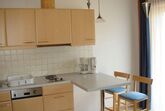 Komplett ausgestattete Küchenzeile (Geschirrspülmaschine, Dunstabzug, etc.)mit Esstheke.