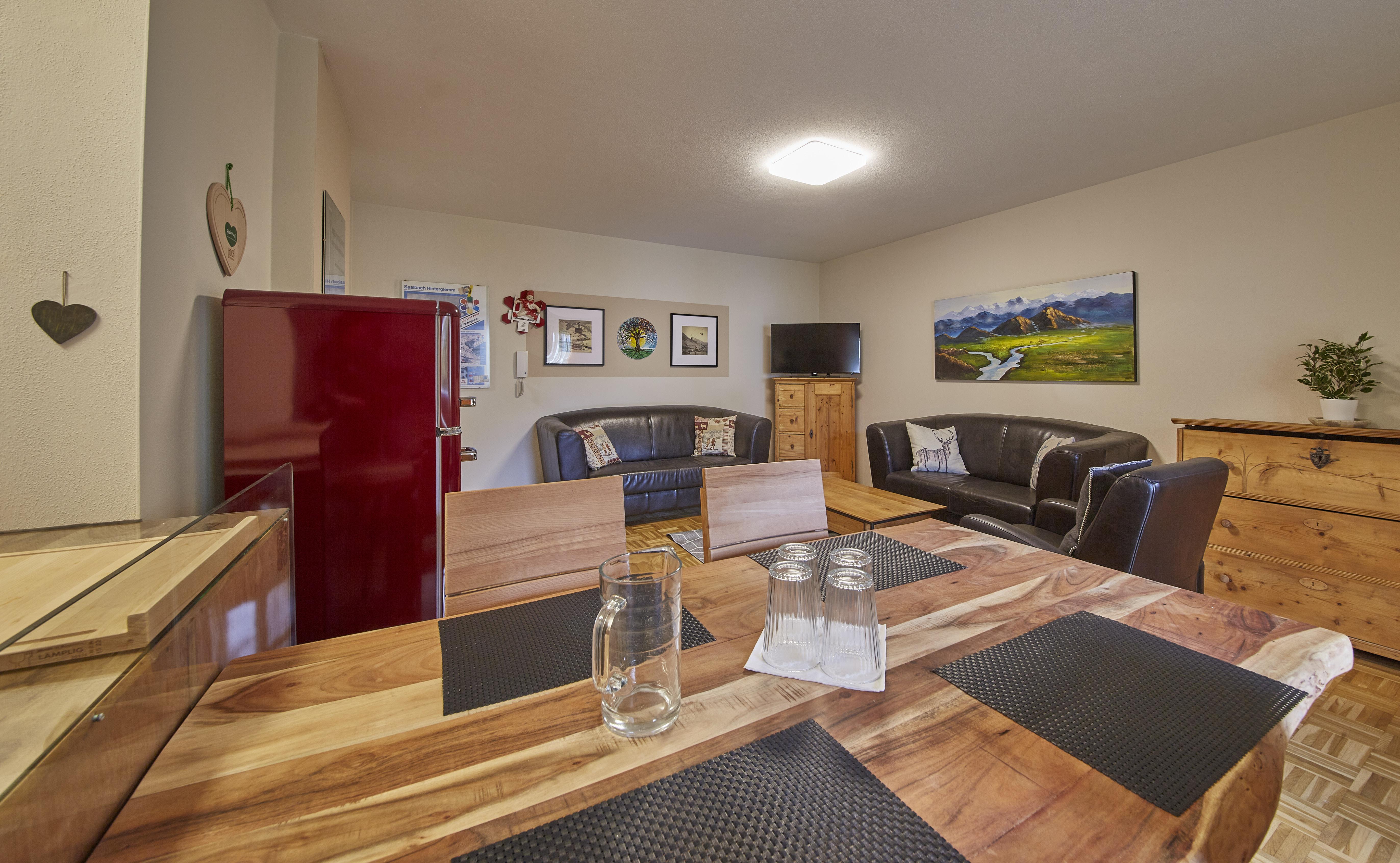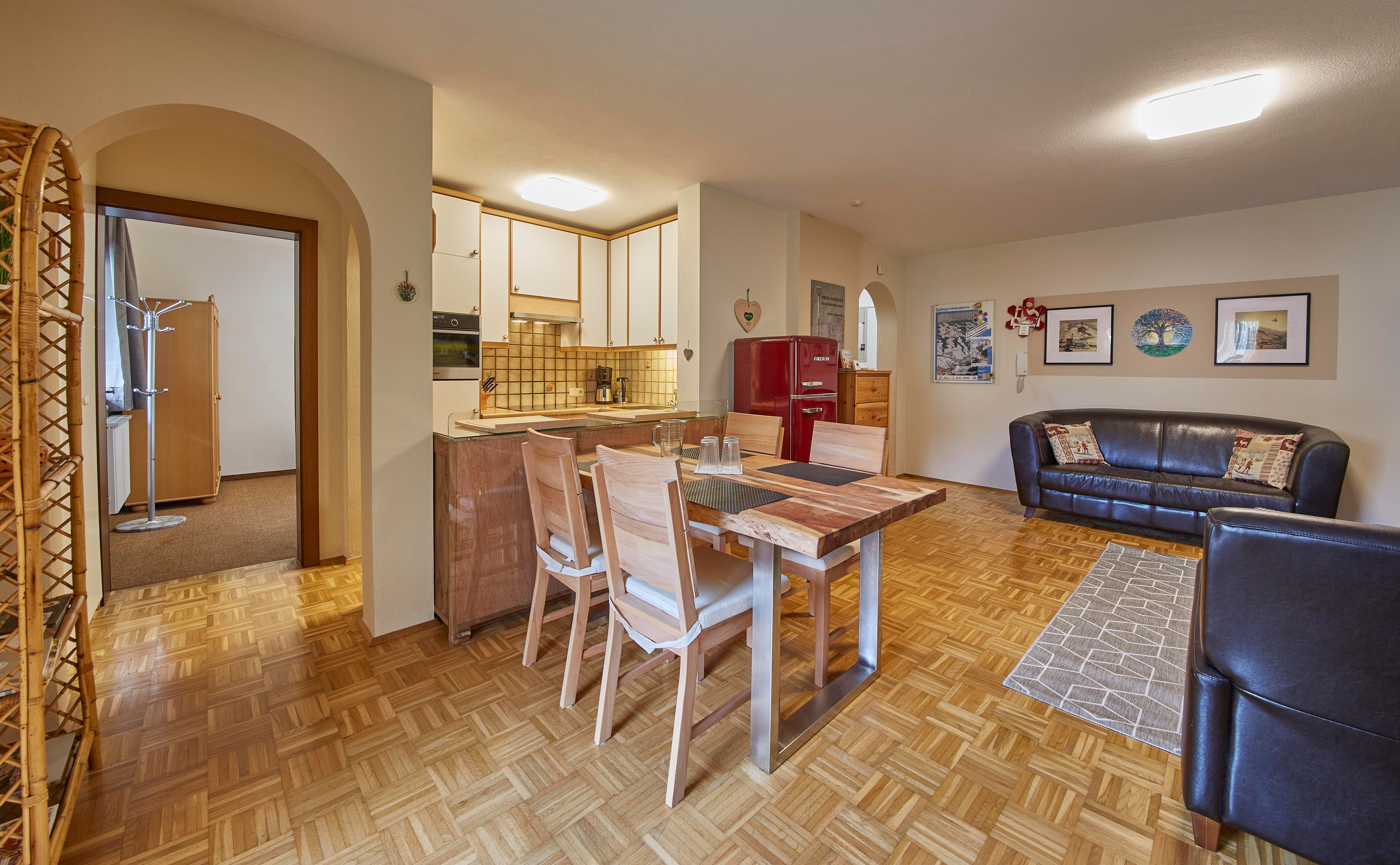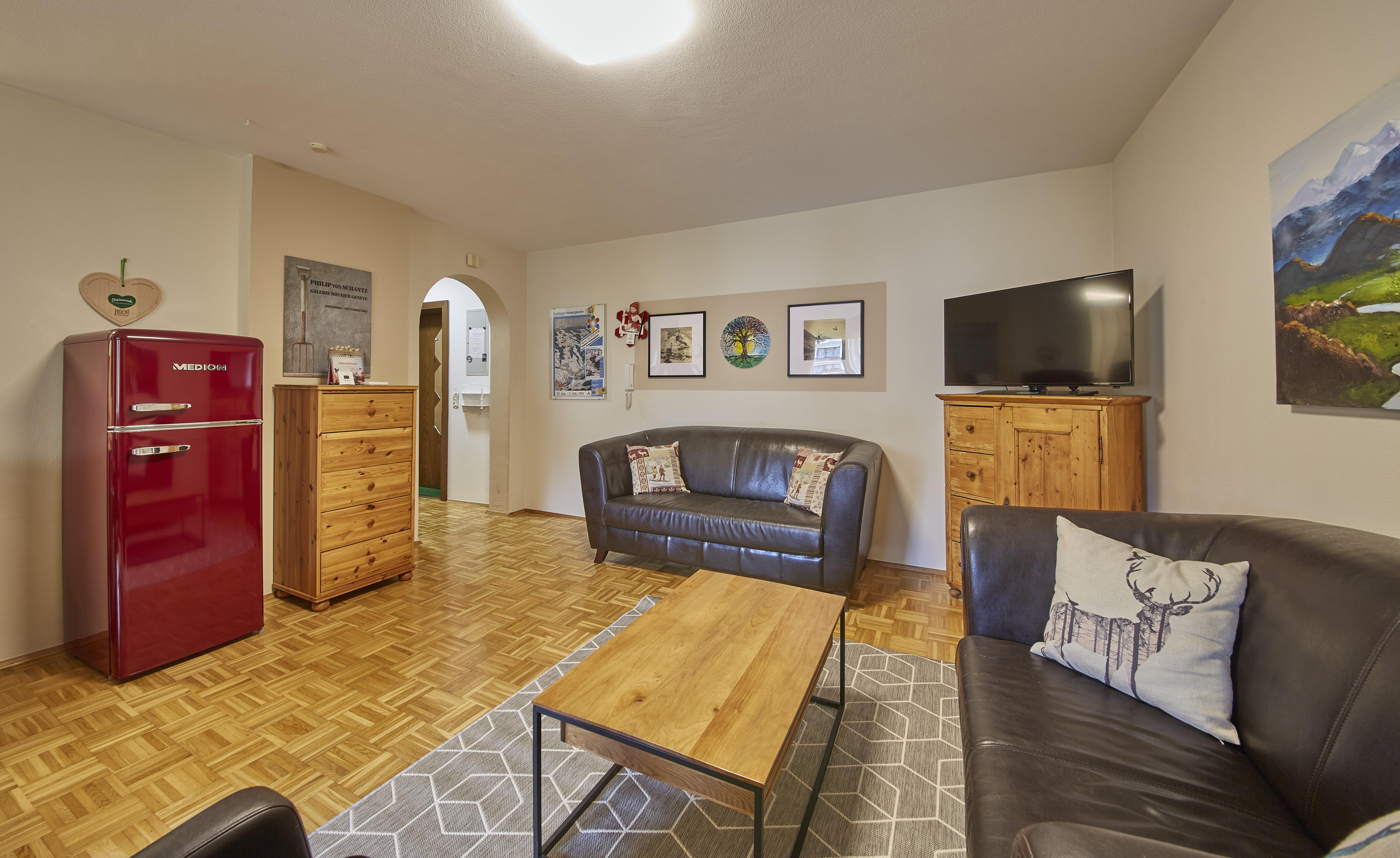 Die 75m² Wohnung für 4 Personen in einem Appartementgebäude direkt neben dem Zwölferkogellift bietet die ideale Unterkunft für einen gemütlichen, komfortablen Urlaub im größten Skigebiet Österreichs, Saalbach-Hinterglemm-Leogang-Fieberbrunn. Die Ferienwohnung bietet zwei Schlafzimmer mit einem Doppelbett und zwei Einzelbetten, ein Badezimmer mit Dusche, eine separate Toilette, einen Wohnraum mit vollausgestatteter Küche und Essbereich sowie einen Balkon. Im Keller befindet sich eine Waschmaschine und ein Trockner und können gegen Münzbezahlung verwendet werden. WLAN sowie ein Tiefgaragenparkplatz stehen allen Gästen kostenfrei zur Verfügung.