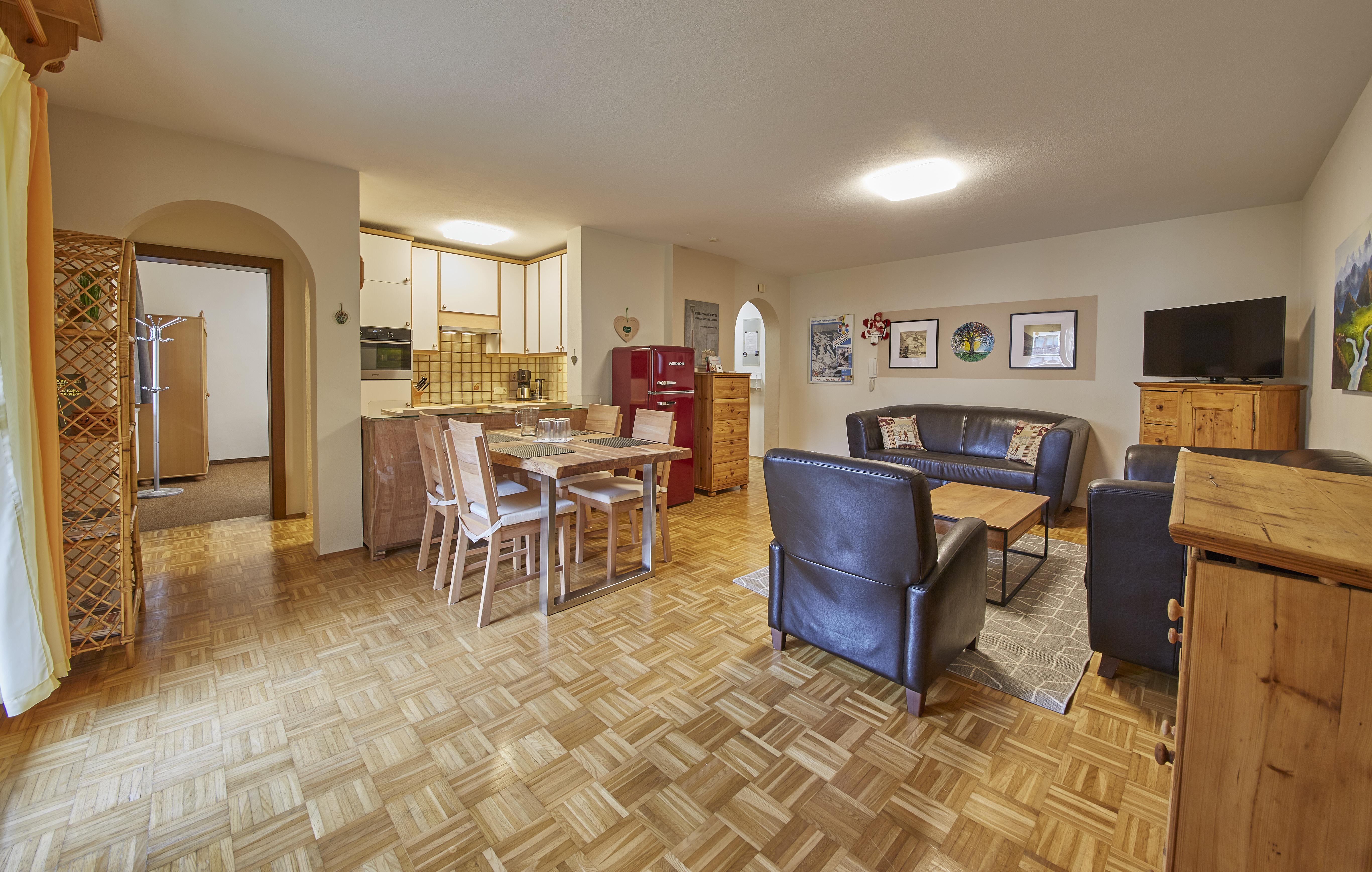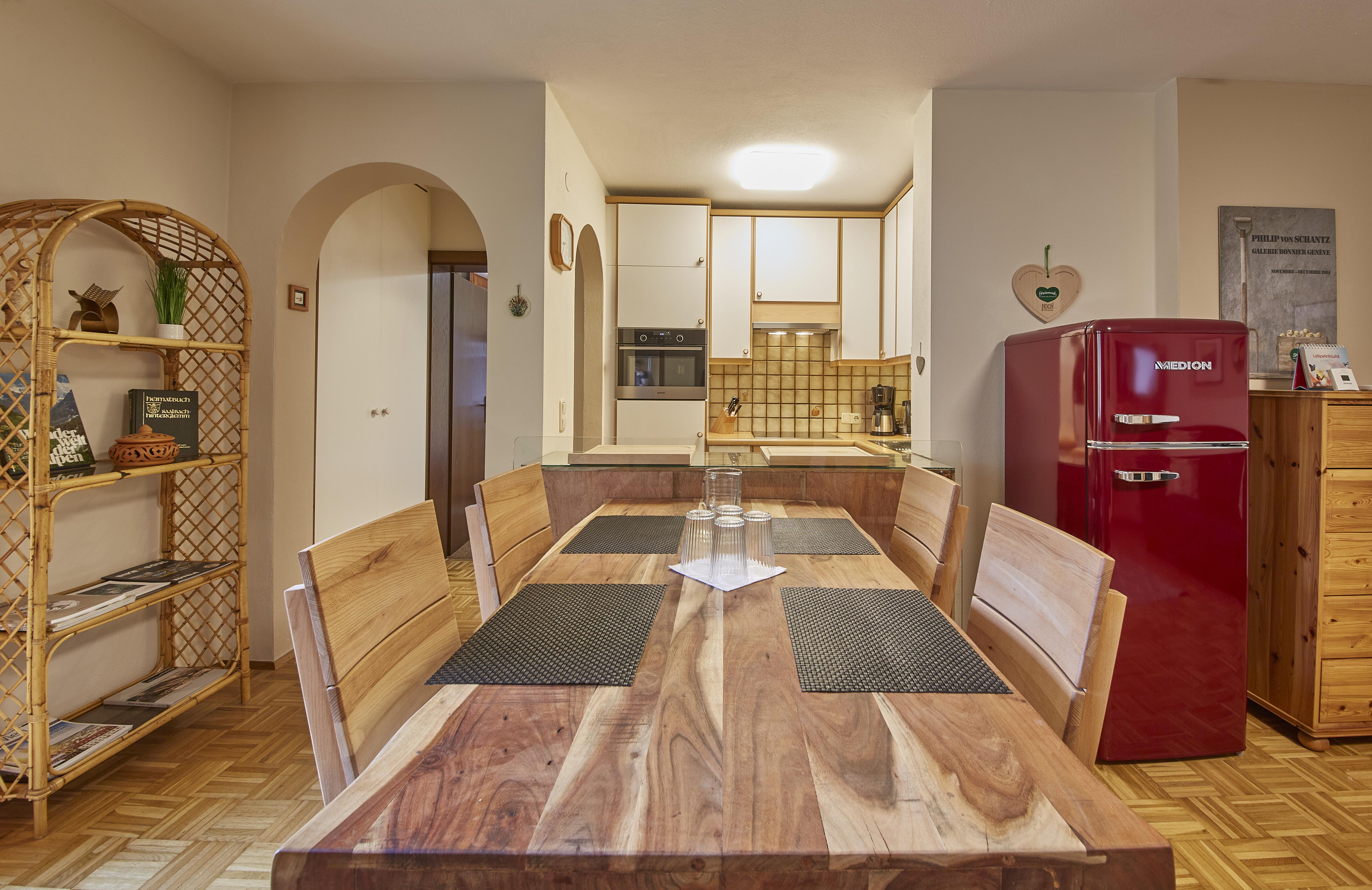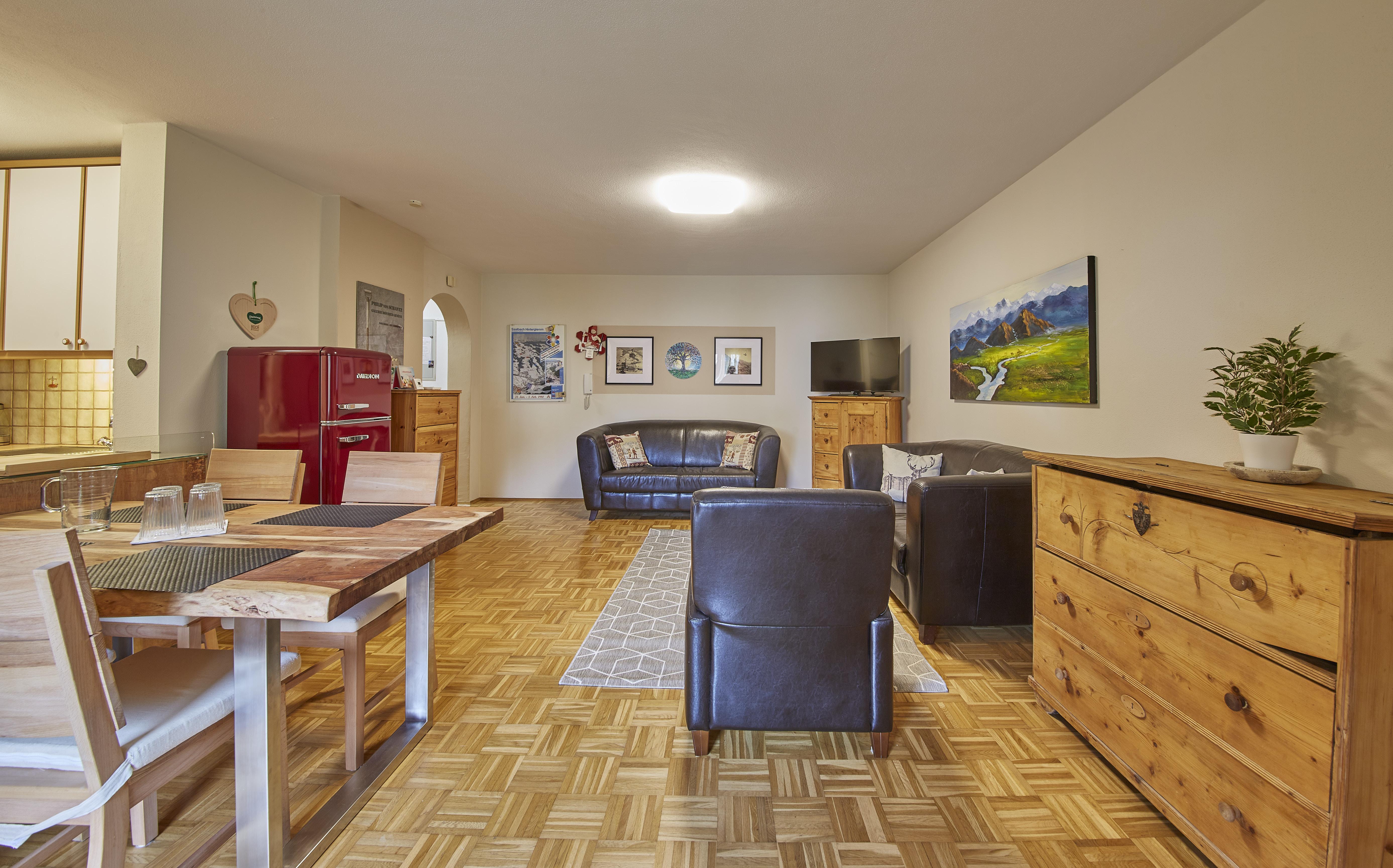 Die 75m² Wohnung für 4 Personen in einem Appartementgebäude direkt neben dem Zwölferkogellift bietet die ideale Unterkunft für einen gemütlichen, komfortablen Urlaub im größten Skigebiet Österreichs, Saalbach-Hinterglemm-Leogang-Fieberbrunn. Die Ferienwohnung bietet zwei Schlafzimmer mit einem Doppelbett und zwei Einzelbetten, ein Badezimmer mit Dusche, eine separate Toilette, einen Wohnraum mit vollausgestatteter Küche und Essbereich sowie einen Balkon. Im Keller befindet sich eine Waschmaschine und ein Trockner und können gegen Münzbezahlung verwendet werden. WLAN sowie ein Tiefgaragenparkplatz stehen allen Gästen kostenfrei zur Verfügung.