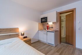 Das Studioappartement mit kombiniertem Wohn-/Schlafraum, Balkon, Küchenbereich und Esstisch ist modern eingerichtet und verfügt über Dusche/WC, Smart-TV und Glasfaser-Internetanschluss/WiFi. Der Küchenbereich ist mit Kühlschrank, Mikrowelle/Grill, Cerankochfeld, Senseo Pad-Kaffeemaschine, Essgeschirr und Küchenutensilien ausgestattet. Bettwäsche & Handtücher werden gestellt. Blaiken Appartements in vollständig rauchfrei. Die Bilder wurden in verschiedenen Einheiten dieser Kategorie aufgenommen.