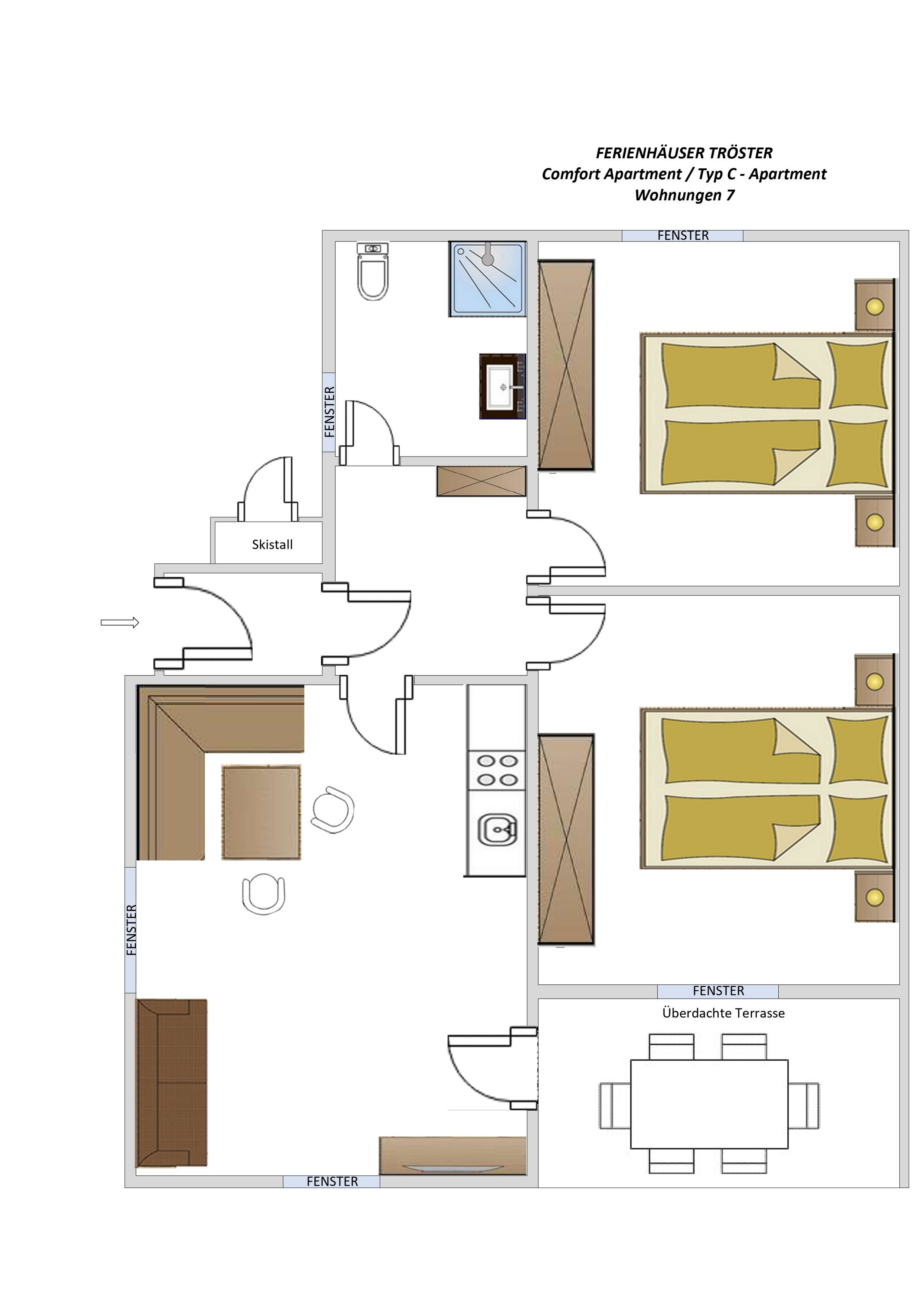 Natur, Ruhe, frische Luft, klares Wasser, Bergromantik und das einzigartige Gefühl wirklich frei zu sein, all dies und noch viel mehr erleben Sie bei uns in den Ferienhäuser Tröster. Unsere Appartements liegen zentral, aber dennoch ein wenig abseits des Ortstrubels. Gemütliche Stunden sind Ihnen in unseren Häusern somit garantiert. Die Gehzeit in den inneren Ortskern und zur St. Kathrein Therme beträgt nur 5 Minuten.