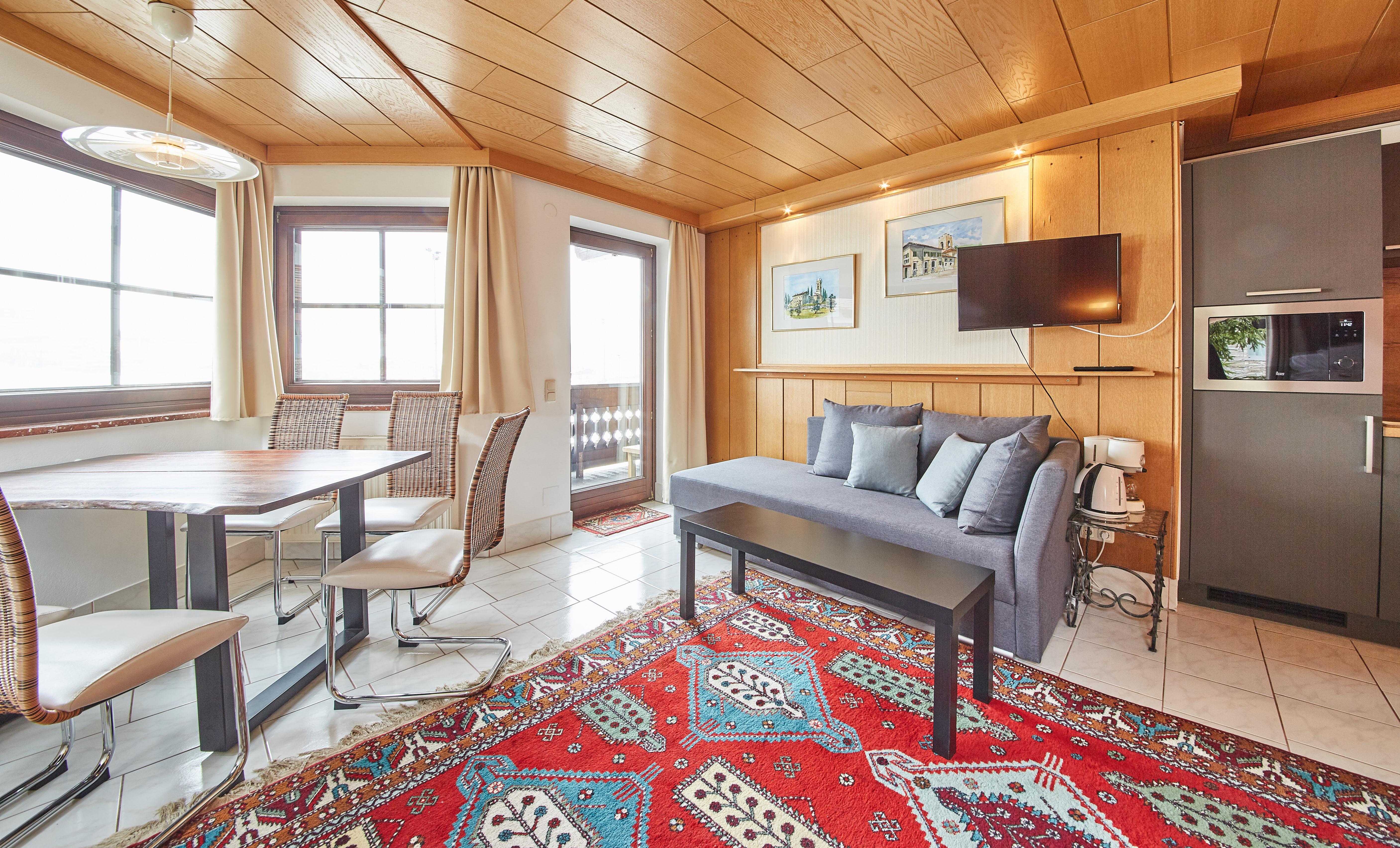 Willkommen im Apartment Wittenius Top 5, Deinem perfekten Rückzugsort für einen erholsamen Aufenthalt. Die zentrale Unterkunft für bis zu 5 Personen bietet auf 45 m² bietet 1 Schlafzimmer mit bequemen Doppelbett, einen Wohn-Schlafbereich mit Doppelbett, Schlafsofa, Küchenzeile und Esstisch, ein Badezimmer mit Dusche, eine separate Toilette sowie einen Balkon mit Ausblick auf die umliegende, verschneite Berg- und Tallandschaft Hinterglemms. Skilift vor dem Haus!