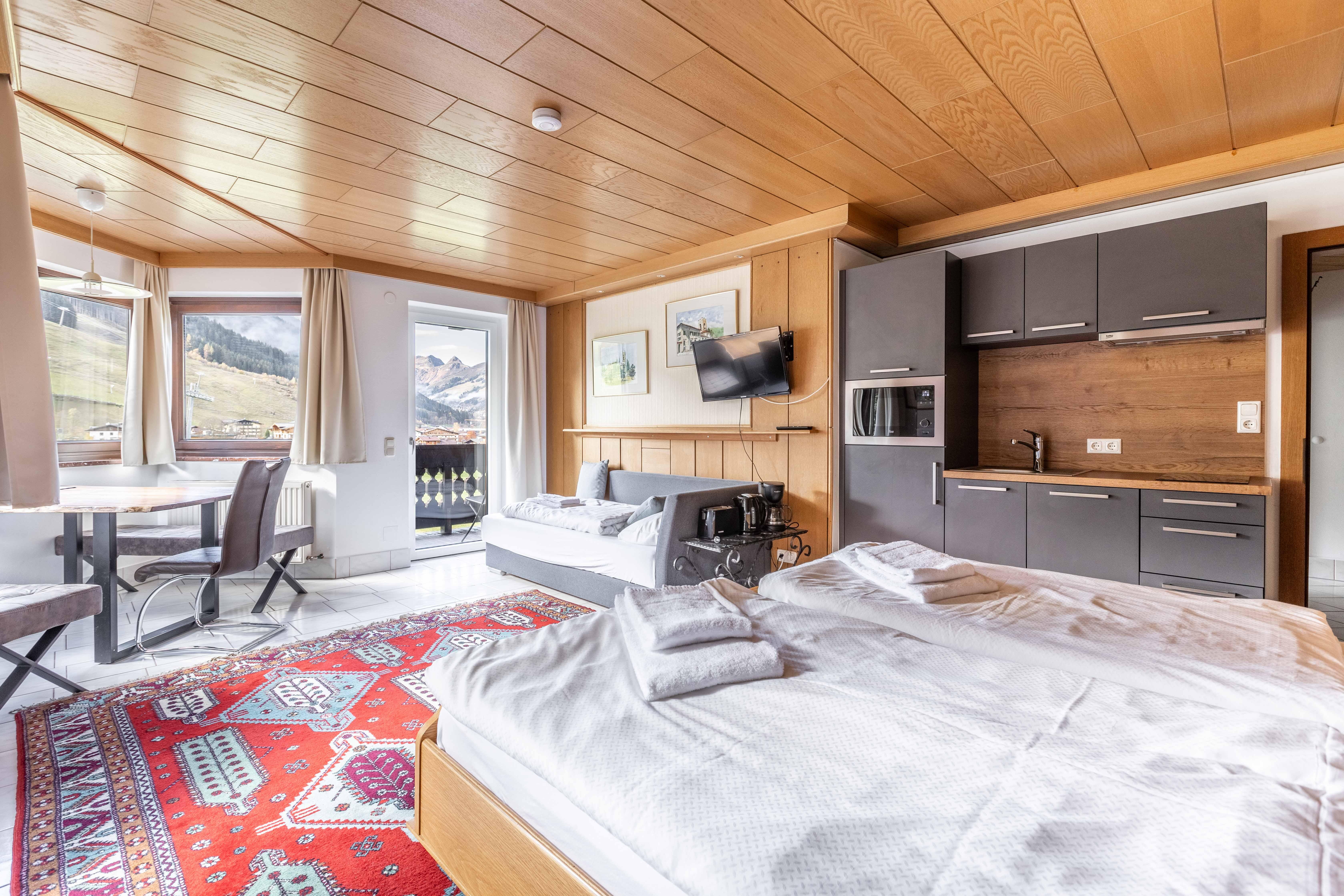 Willkommen im Apartment Wittenius Top 10, Deinem perfekten Rückzugsort für einen erholsamen Aufenthalt. Die zentrale Unterkunft für bis zu 5 Personen bietet auf 45 m² 1 Schlafzimmer mit bequemen Doppelbett sowie Schlafsessel, einen einladenden Wohnbereich mit Doppelbett, Küchenzeile sowie Esstisch, ein Badezimmer mit Wanne, eine separates WC sowie einen Balkon mit Ausblick auf die umliegende, verschneite Berg- und Tallandschaft Hinterglemms. Skilift vor dem Haus!