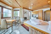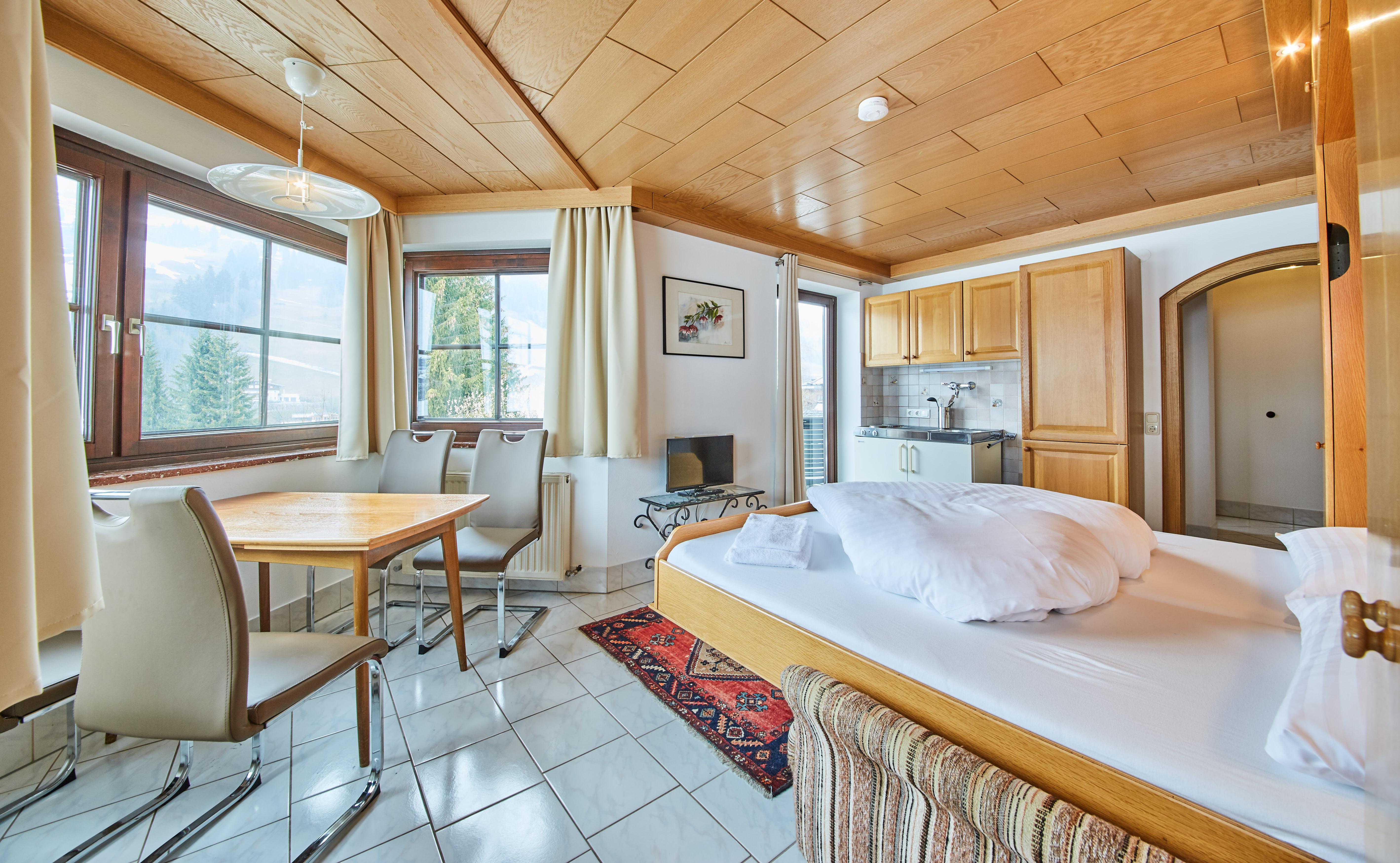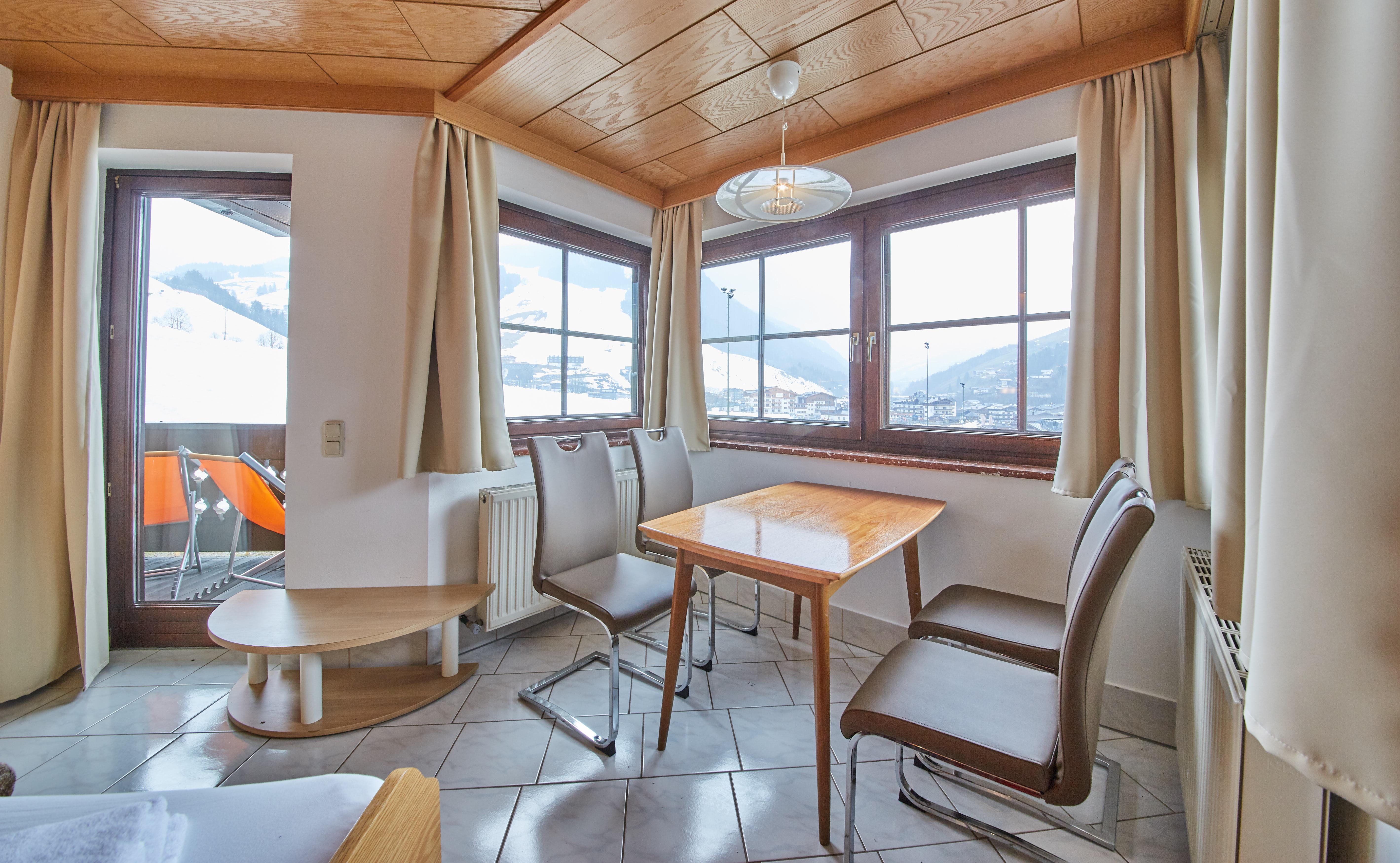 Willkommen im Apartment Wittenius Top 6, Deinem perfekten Rückzugsort für einen erholsamen Aufenthalt. Die zentrale Unterkunft für bis zu 2 Personen bietet auf 25 m² einen einladenden Wohn-Schlafraum mit Doppelbett, Küchenzeile und Esstisch, ein Badezimmer mit Wanne, eine separate Toilette sowie einen Balkon mit traumhaftem Ausblick auf die umliegende, verschneite Berg- und Tallandschaft Hinterglemms. Skilift vor dem Haus!