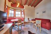 Unser MidTown Appartement für dich und deine Gruppe von 6 Personen befindet sich direkt neben dem Bergfriedlift und bietet die ideale Unterkunft für einen gemütlichen und komfortablen Winterurlaub im größten Skigebiet Österreichs. In unserem Appartement findest du zwei Schlafzimmer mit jeweils zwei Doppelbetten, ein bequemes Schlafsofa im Wohnraum, einen Balkon mit herrlichem Blick auf die Berge sowie ein Badezimmer mit Badewanne und WC. Parkplätze stehen dir und deinen Mitreisenden ohne Aufpreis zur Verfügung.