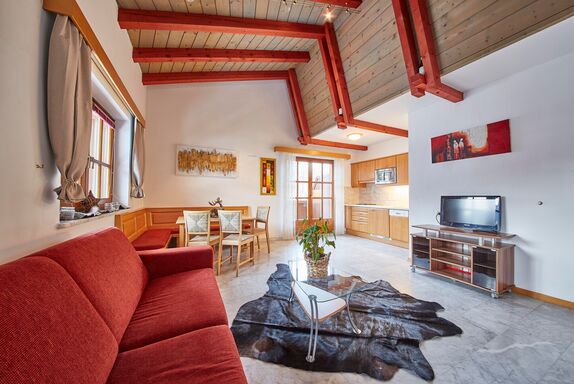 Unser MidTown Appartement für dich und deine Gruppe von 6 Personen befindet sich direkt neben dem Bergfriedlift und bietet die ideale Unterkunft für einen gemütlichen und komfortablen Winterurlaub im größten Skigebiet Österreichs. In unserem Appartement Top findest du auf 60m² zwei Schlafzimmer mit jeweils zwei Doppelbetten, ein bequemes Schlafsofa im Wohnraum, einen Balkon mit herrlichem Blick auf die Berge sowie ein Badezimmer mit Badewanne und WC. Parkplätze stehen dir und deinen Mitreisenden ohne Aufpreis zur Verfügung.
