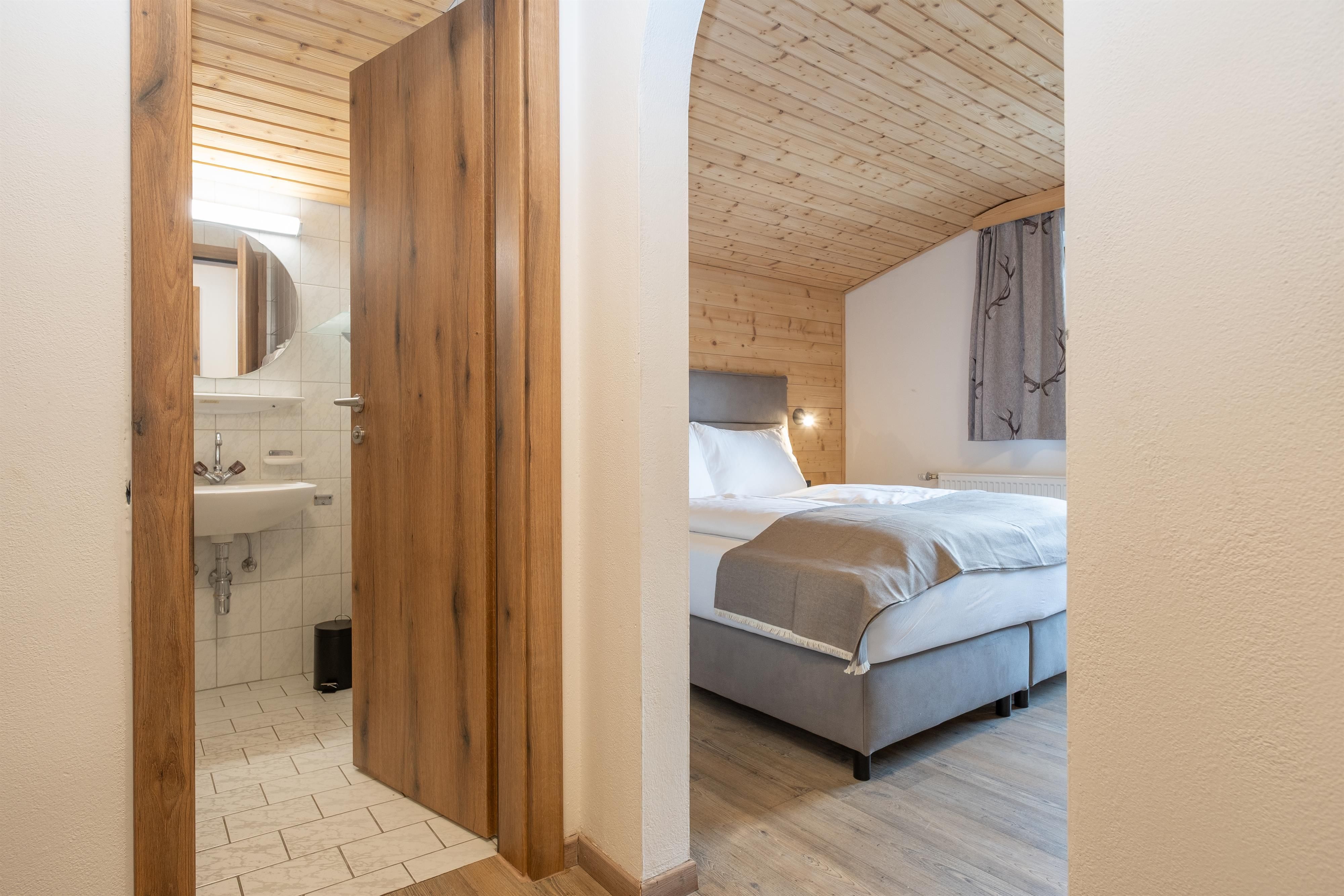 Willkommen in der Pension Maria Dreibettzimmer 1, Deinem perfekten Rückzugsort für einen erholsamen Aufenthalt für 3 Personen. Der 21m² Raum bietet nebst bequemen Doppelbett und einem Einzelbett ein Bad mit Dusche + Toilette. Vom Balkon besteht ein herrlicher Bergblick. Der Ski Lift befindet sich direkt neben der Unterkunft. Morgens erwartet dich ein herrliches, reichhaltiges Frühstück vom Buffet. Außerdem bist Du in wenigen Gehminuten im Zentrum und wohnst in der Nähe von bekannten Après-Skilokalen.