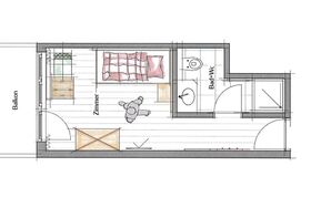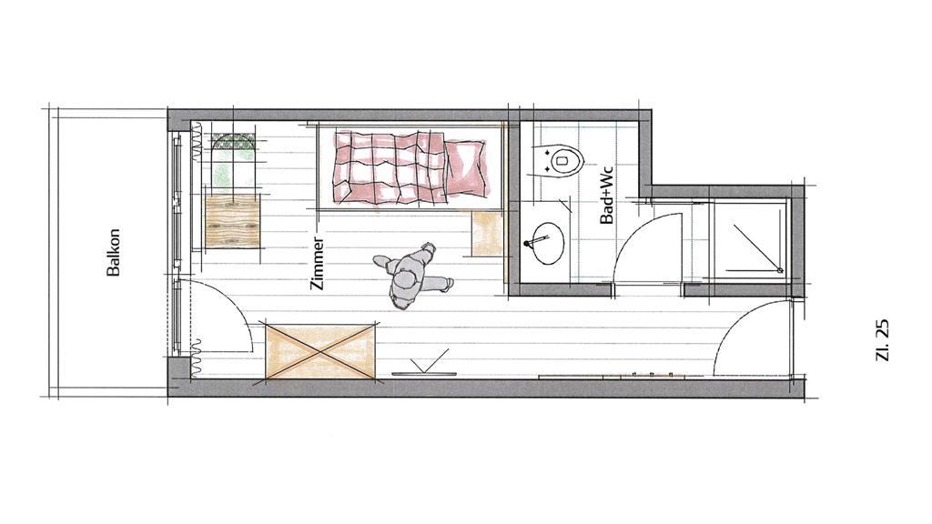 Neu renoviertes komfortables Einzelzimmer mit Flat TV, Badezimmer mit Dusche, WC, Handtuchtrockner und Balkon