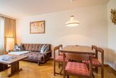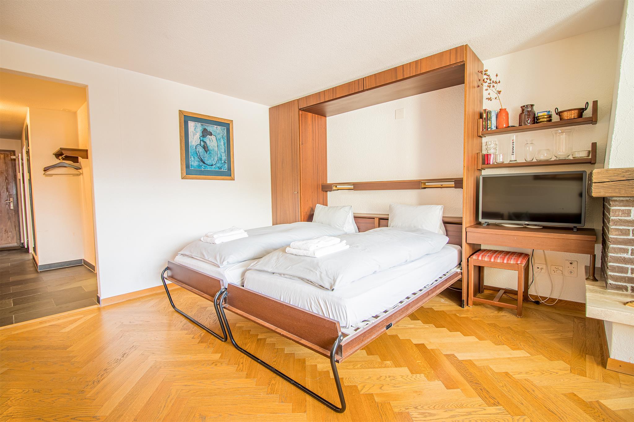 Geräumiges Wohn- und Esszimmer mit Schrankbett (für 2 Personen) und Kamin