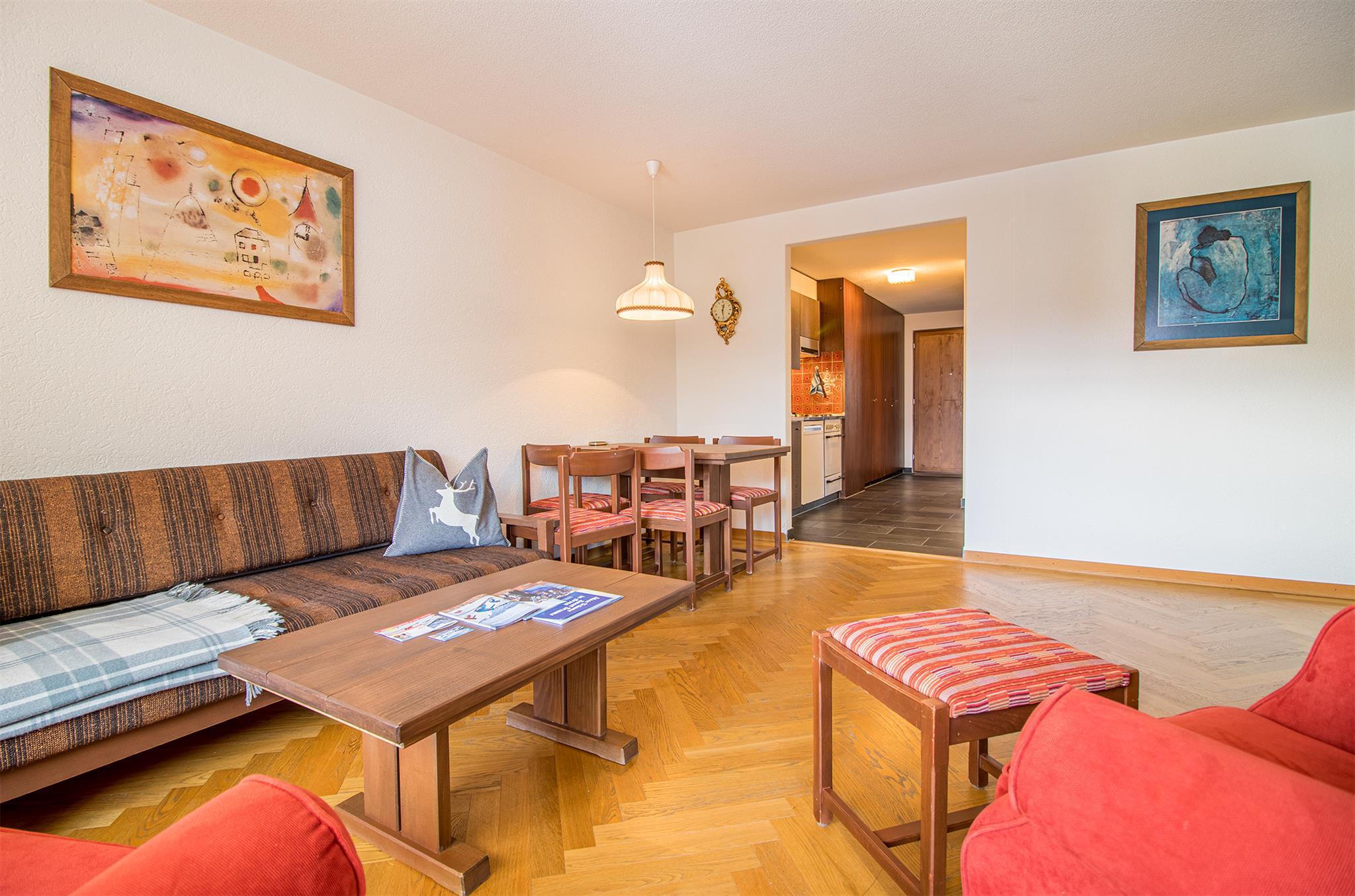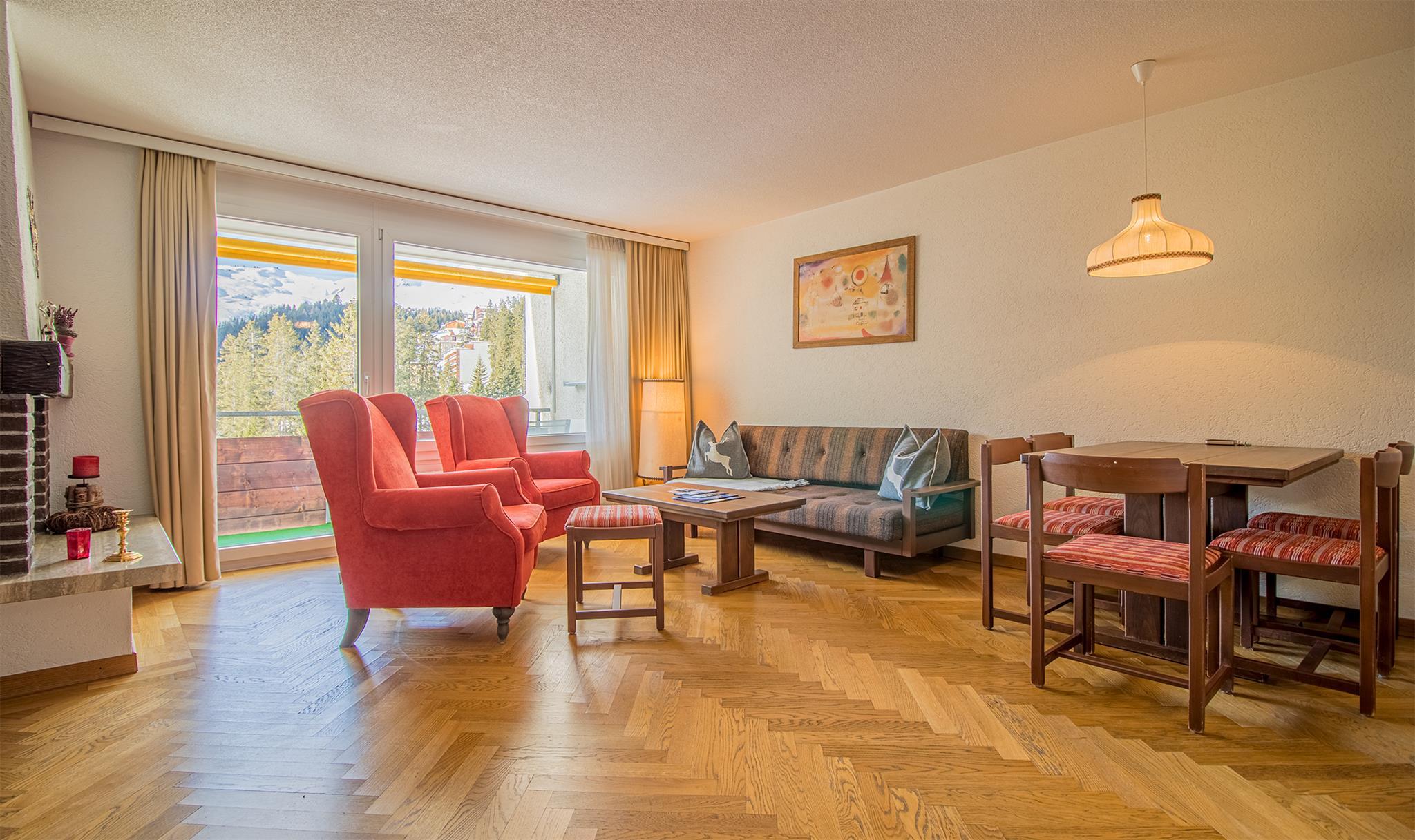 Die geräumige 2-Zimmer-Wohnung befindet sich im 8. Stock des Rothornblick Gebäudes an ruhiger Lage und von viel Natur umgeben. Der Balkon bietet einen herrlichen Bergblick. Während den Öffnungszeiten des direkt nebenan gelegenen Hotel Robinson Club Arosa, können der Swimming Pool und das Fitness kostenfrei mitbenutzt sowie im Winter vom Skibus profitiert werden.