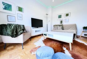 Die Wohnung ist hochwertig ausgestattet mit Parkett, elektrischen Rollos, Ambientebeleuchtung, dimmbaren Lichtschaltern, Pyrolyseherd, No-Frost-Kühlschrank und energiesparsamer Waschmaschine. Für die kleine Reinigung zwischendurch haben wir Reinigungsutensilien und Staubsauger zur Verfügung.