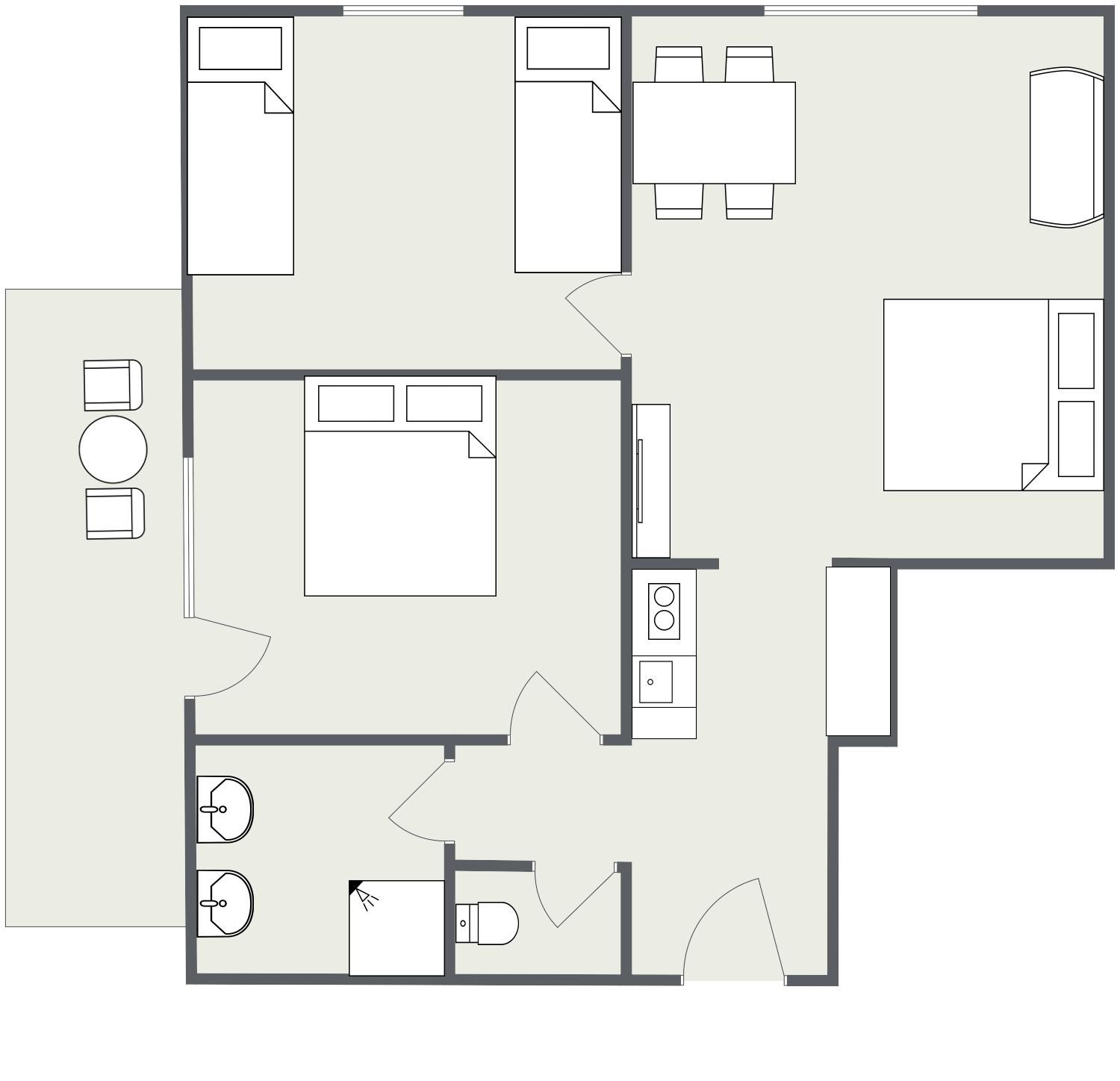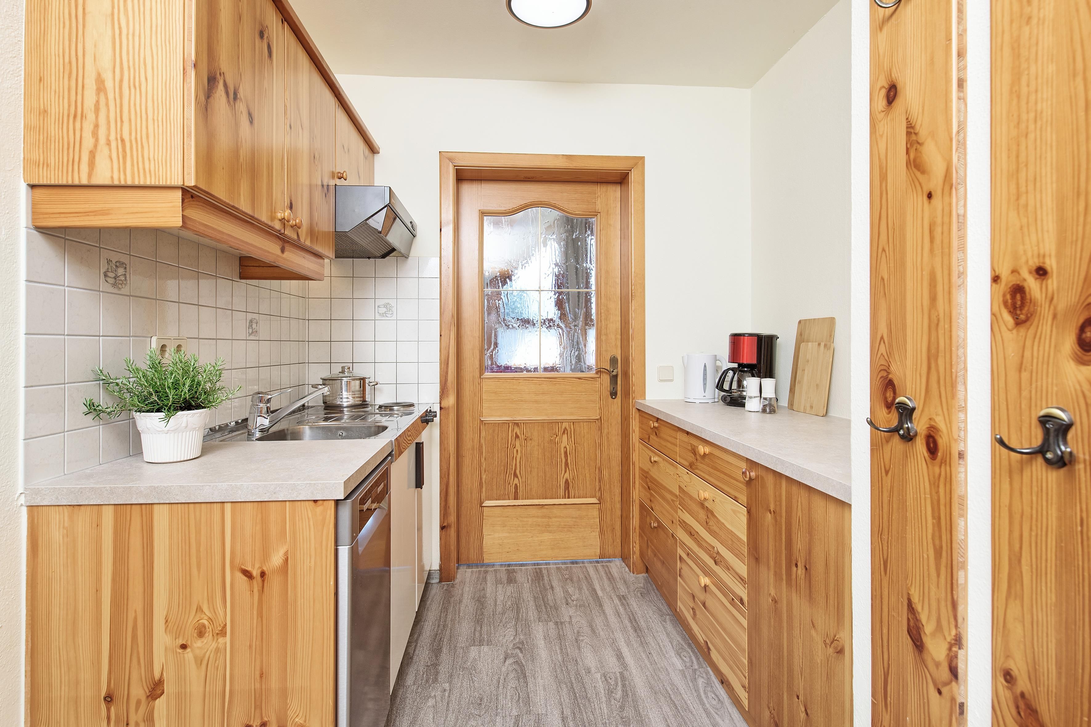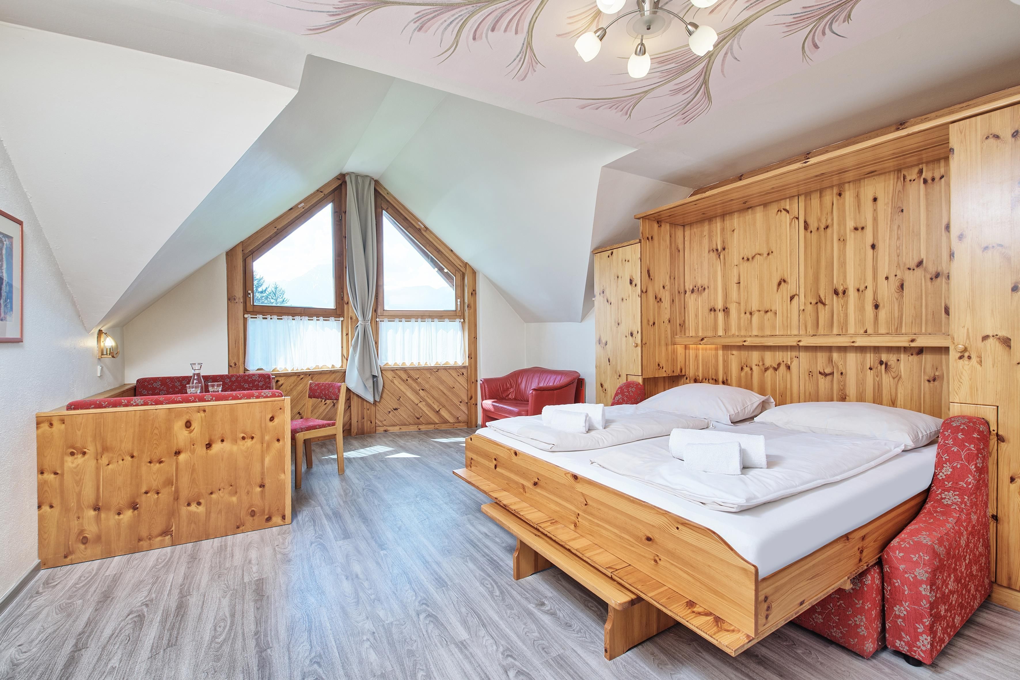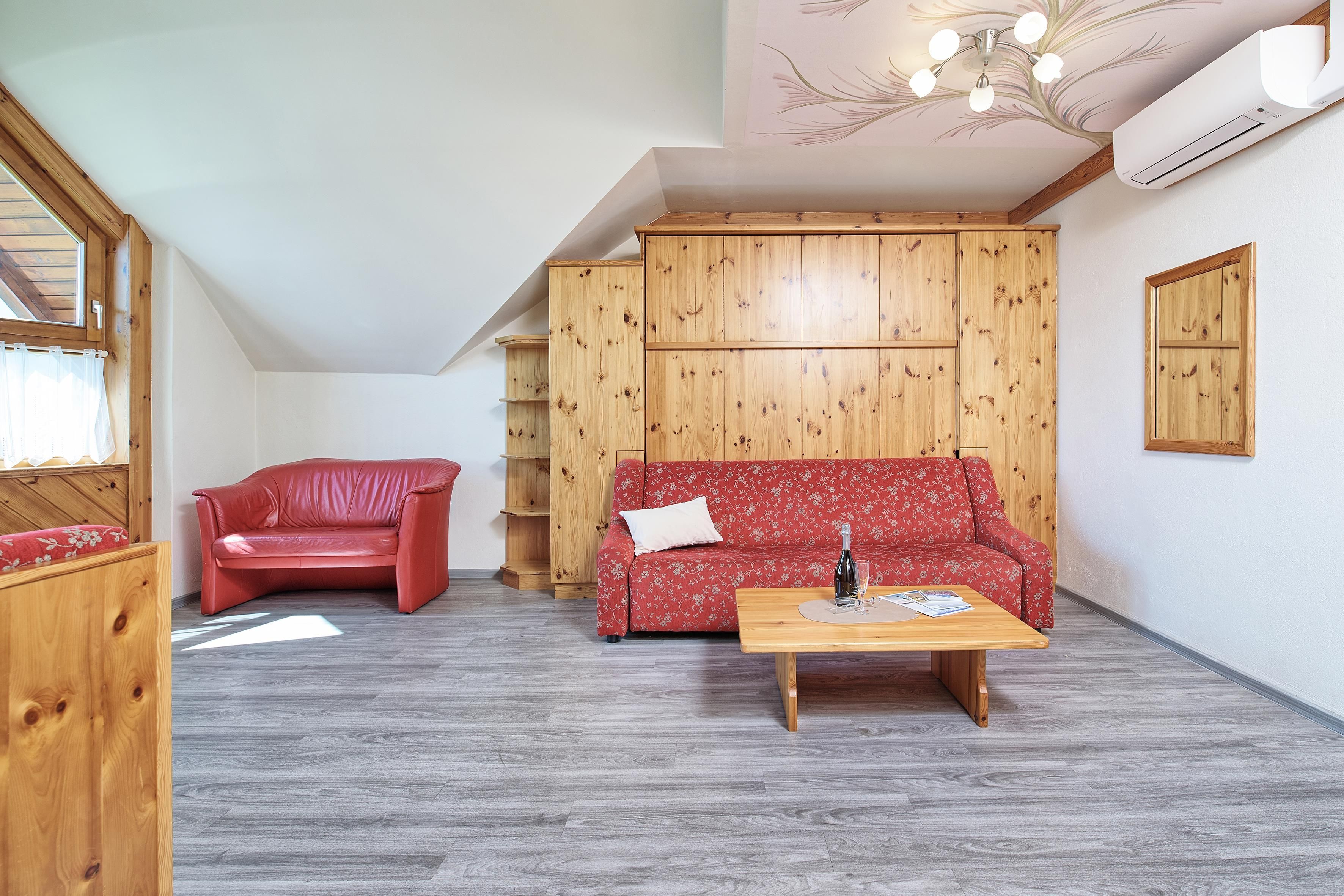 Das Appartement teil sich in einen Wohnbereich mit umklappbarem Schrankbett (Doppelbett), Sitzecke und TV, und zwei separaten Schlafzimmern (1x Doppelbett mit Zugang Balkon, 1x zwei getrennte Betten). Das Badezimmer hat zwei Waschbecken und Dusche, WC ist getrennt. In der Kochnische findet sich Geschirr für maximal 7 Personen. Der Balkon hat eine östliche Ausrichtung mit Blick auf die Karawanken,