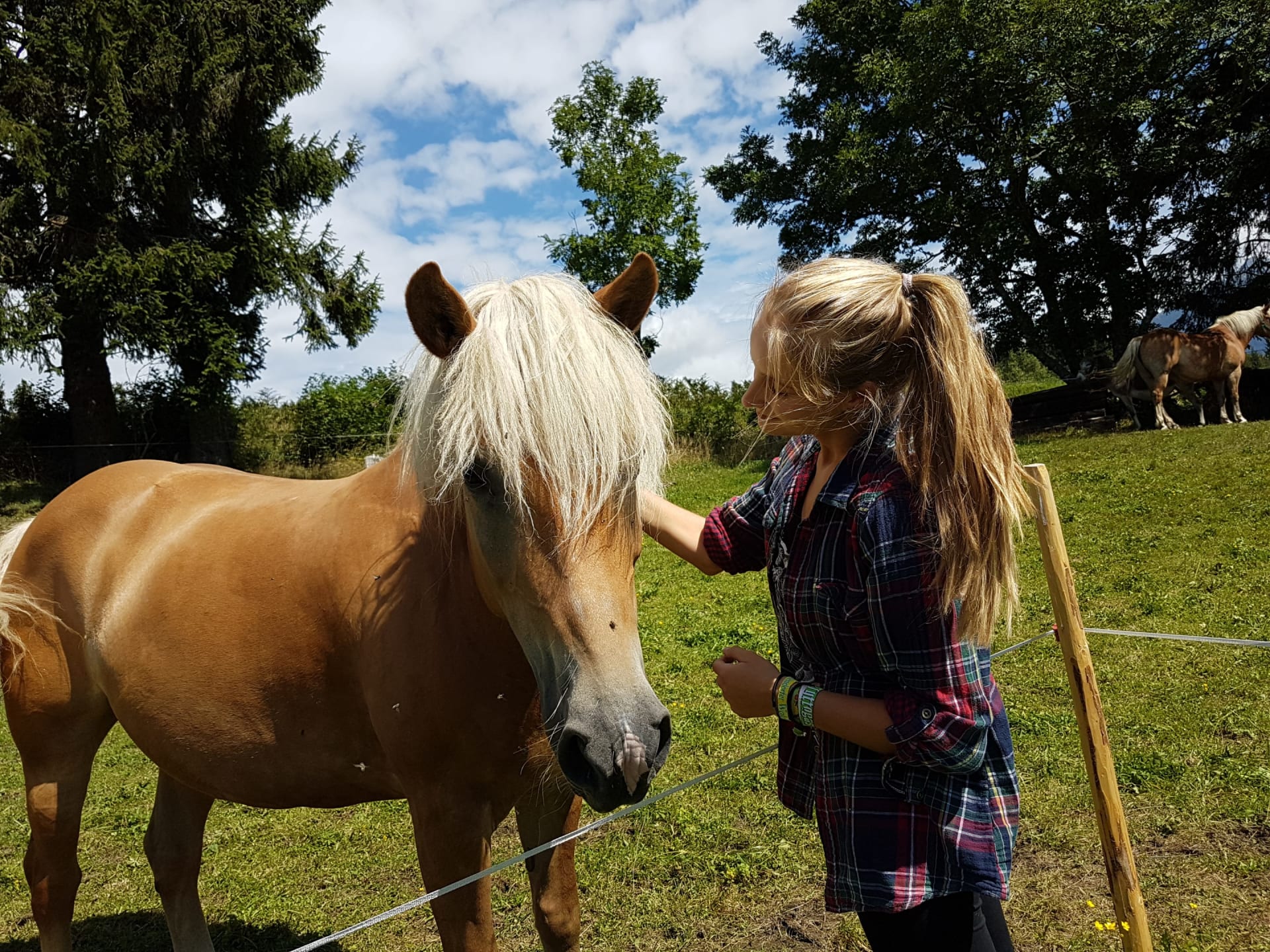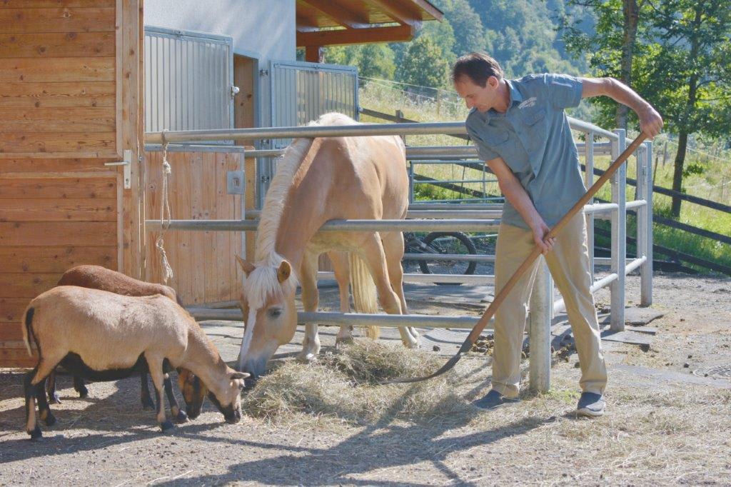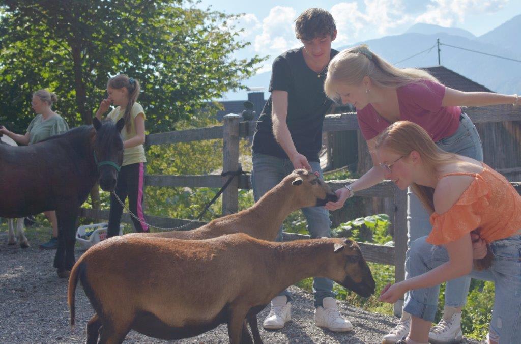 • Bauernhof mit Pferde, Ponies, Kamerunschafe, Kaninchen, Kanarienvögel und Hühnern mit Landwirtschaft. Eure Mithilfe im Stall ist gewünscht. Und wer kreativ sein möchte: das Heubasteln mit Doro ist legendär.