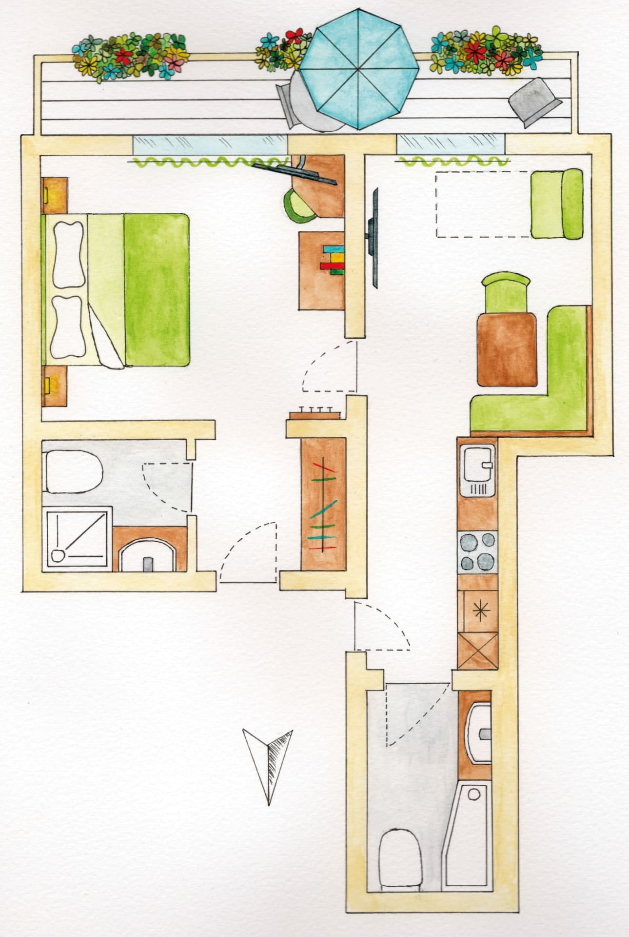 49 m², doppelstöckig, Dachterrasse (17 m²)