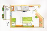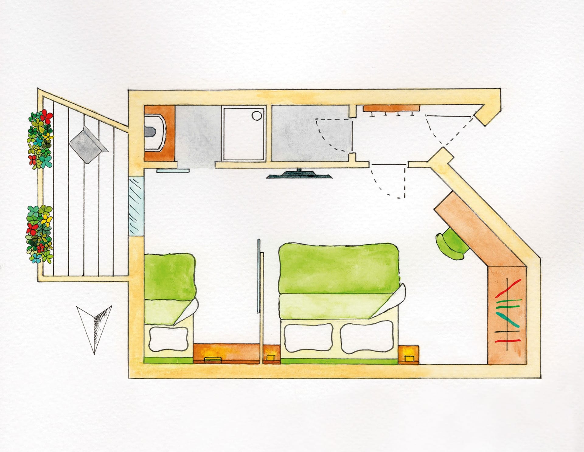 WC, Dusche (getrennt), Fön, Flat-SAT -TV, Safe, Kühlschrank (ohne Küche)