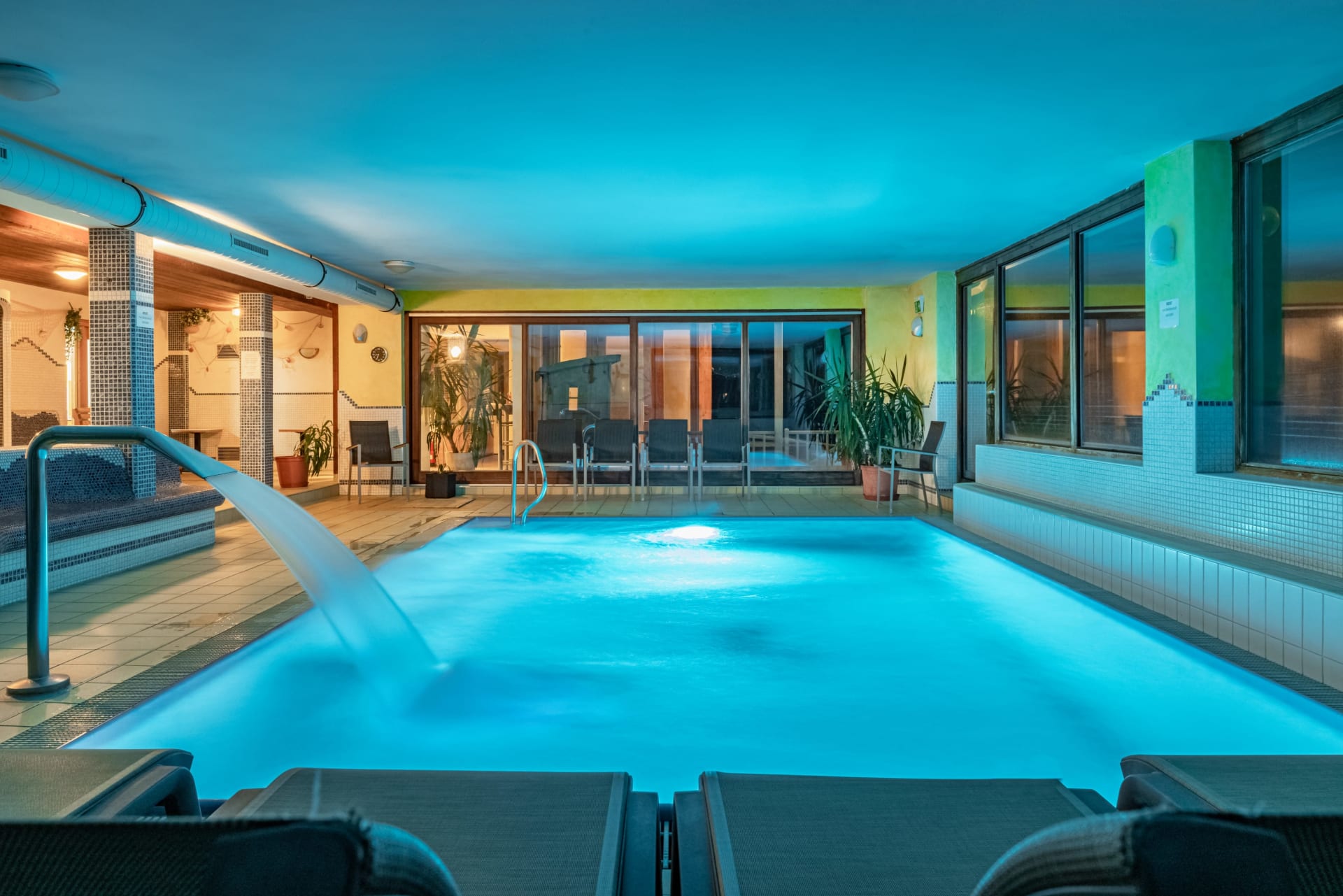 • Großzügige Wellnesslandschaft mit Hallenbad, Finnische- und Aromasauna, Infrarotsauna, Sonnenwiese, Ruheraum