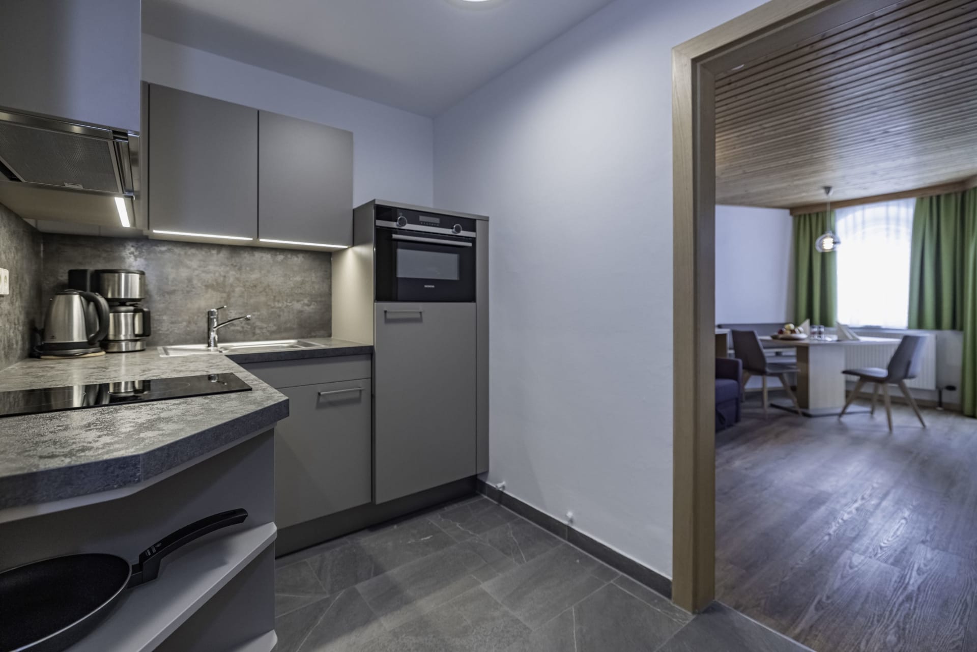 Vollausgestattete Küche, Sitzecke mit Tisch