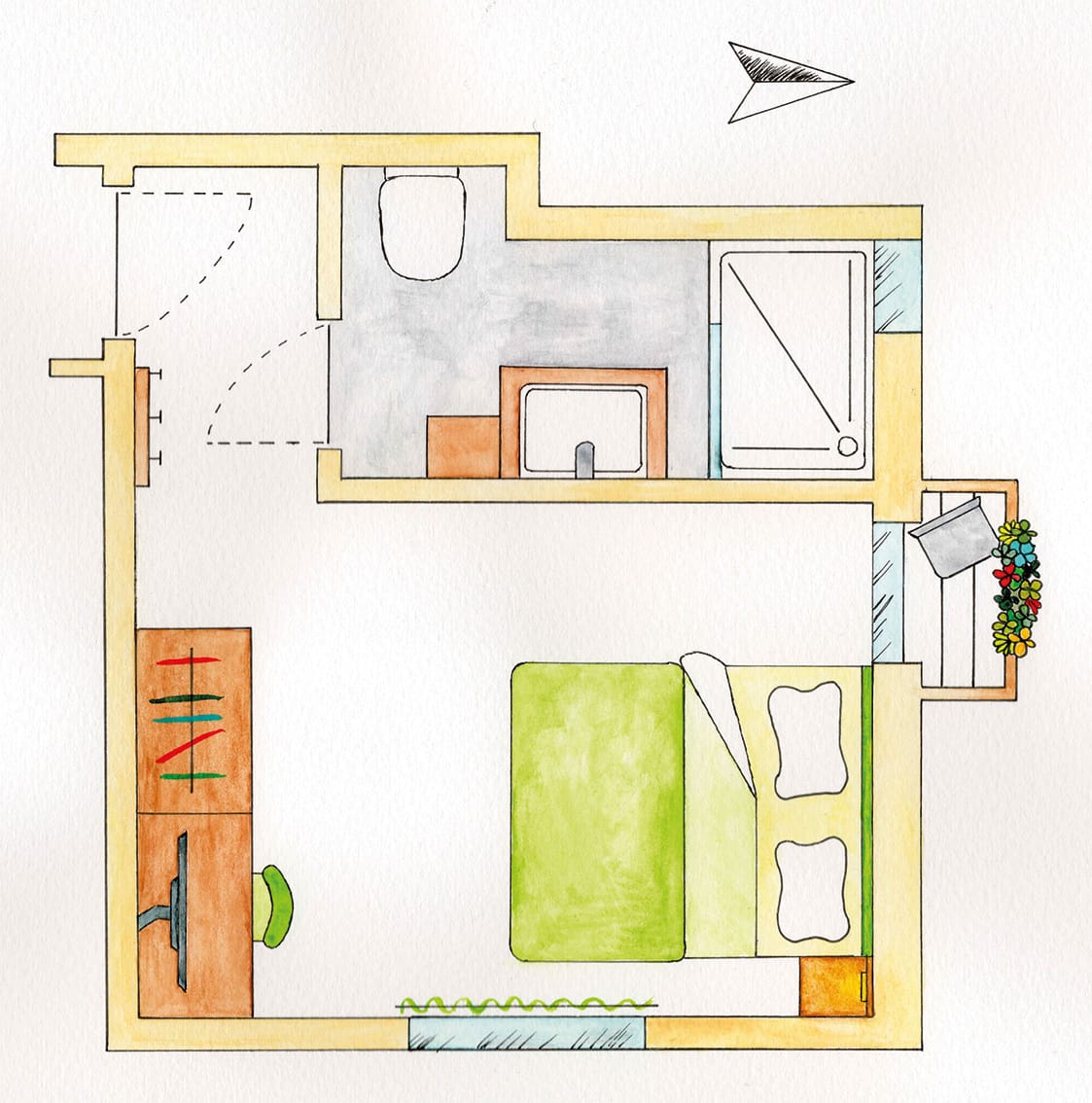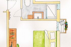 WC, Dusche, Fön, Flat-SAT TV, Kühlschrank (ohne Küche)