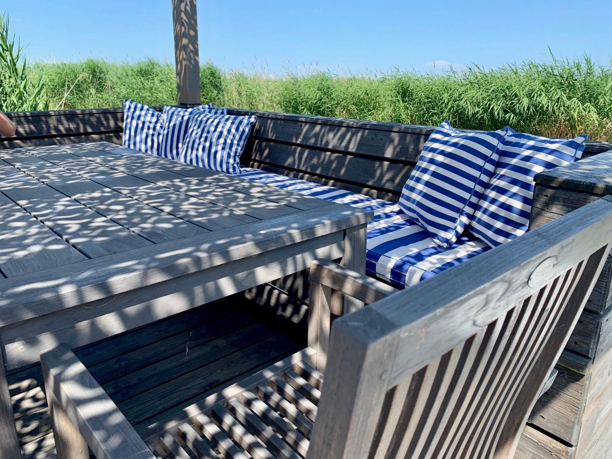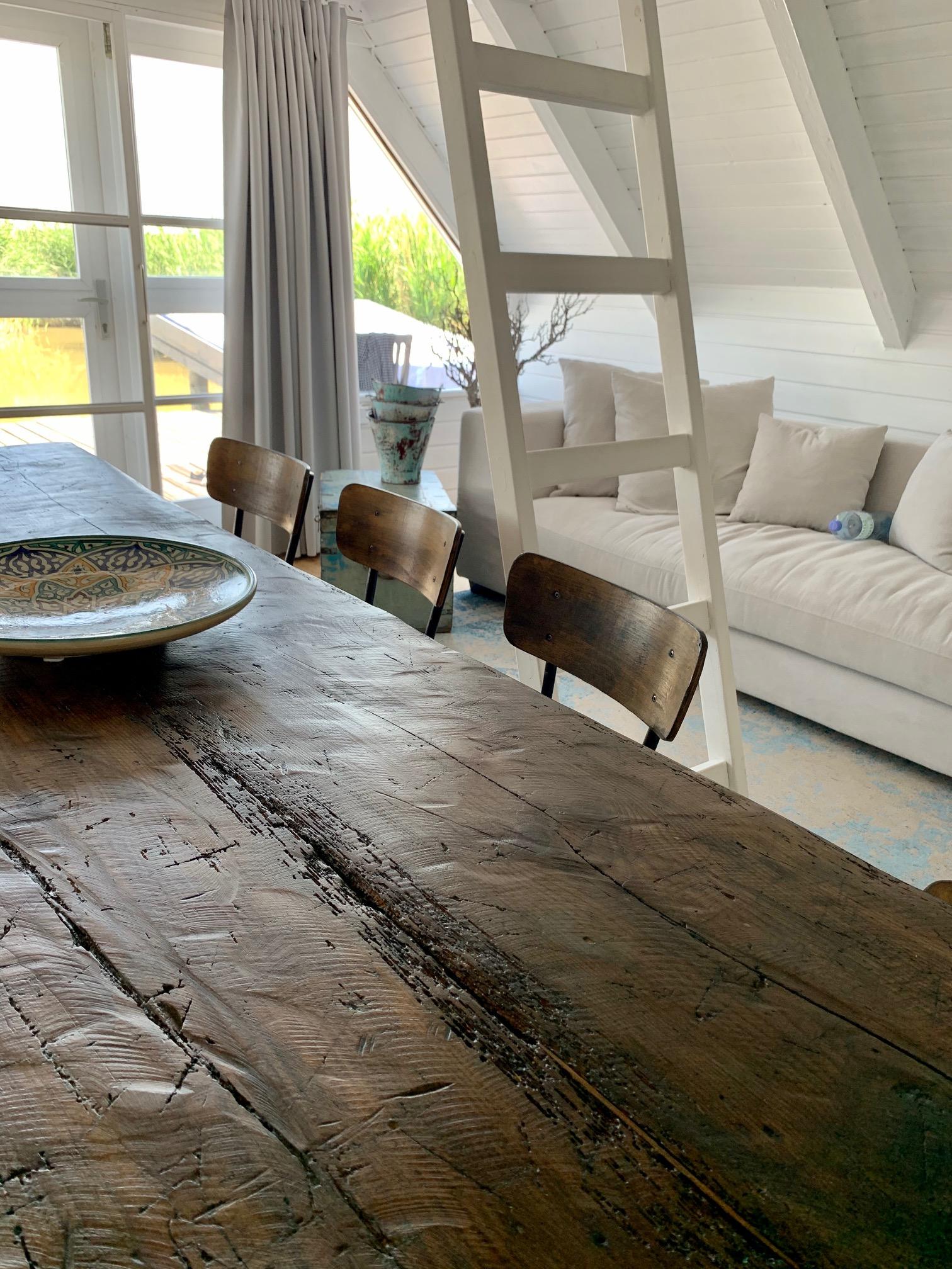 Wer so einen Urlaub bucht, bucht bewusst das Reduzierte und Einfache und keinen Luxus Urlaub. Die Einrichtung für die Seehütte Neusiedlersee haben wir übrigens in aller Welt entdeckt. Alte Teak Bänke aus Bali, ein schöne Truhe aus Indien und ein wundervoller Esstisch, der aus einem alten Weinkeller im Burgenland stammt.