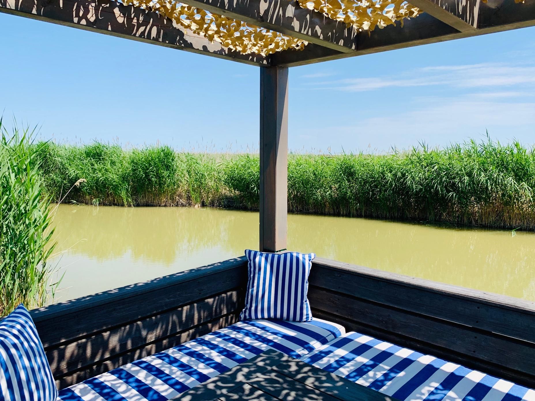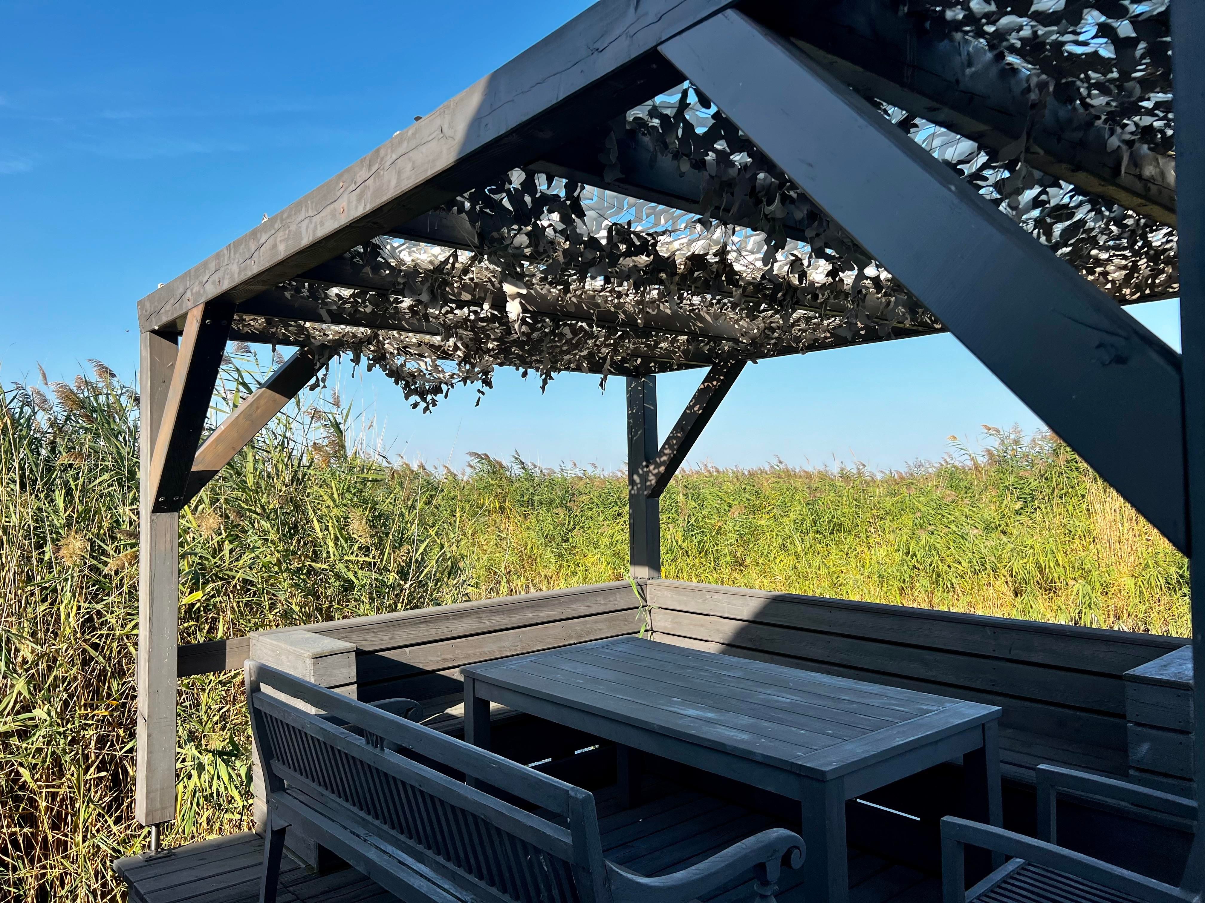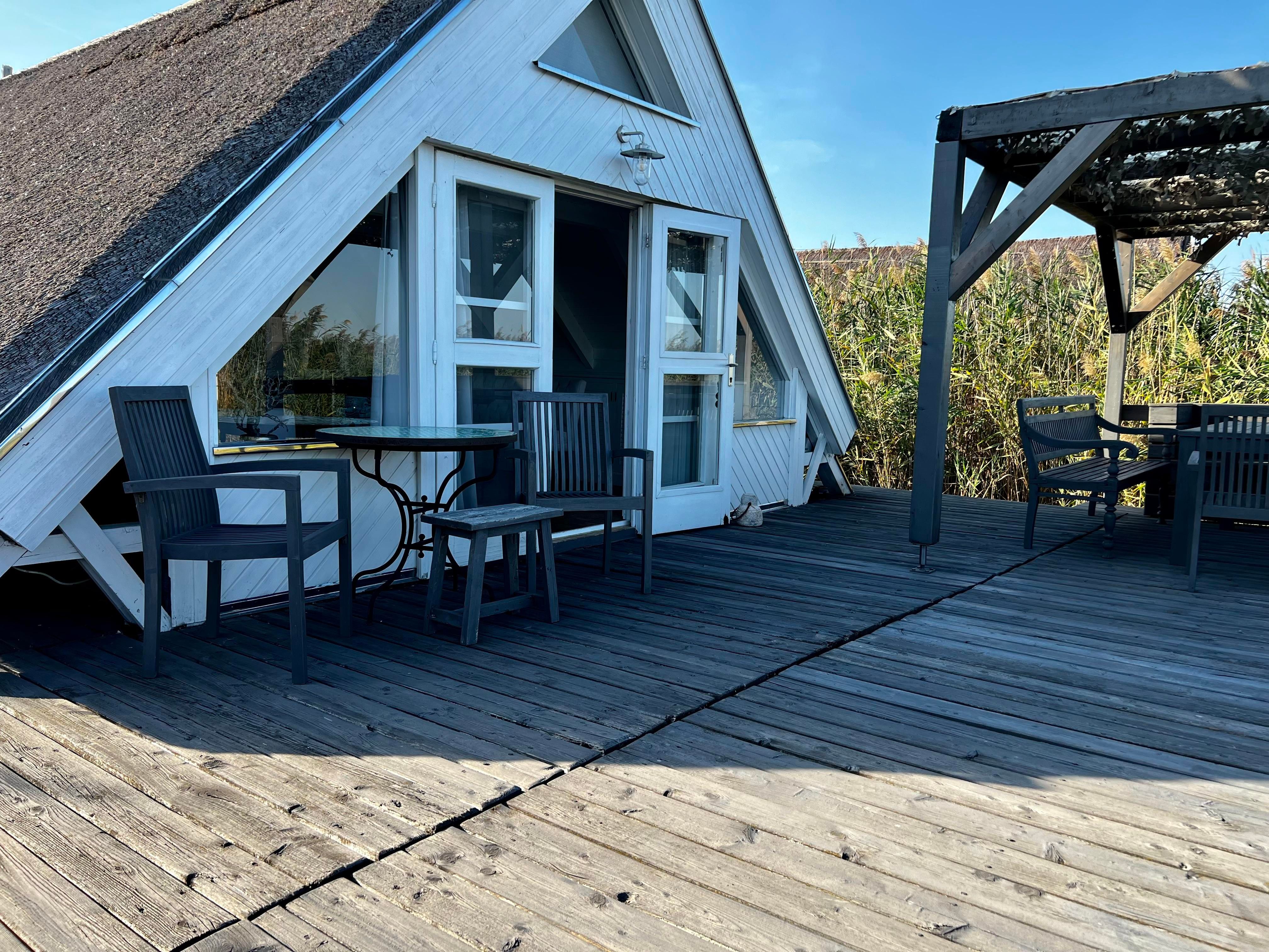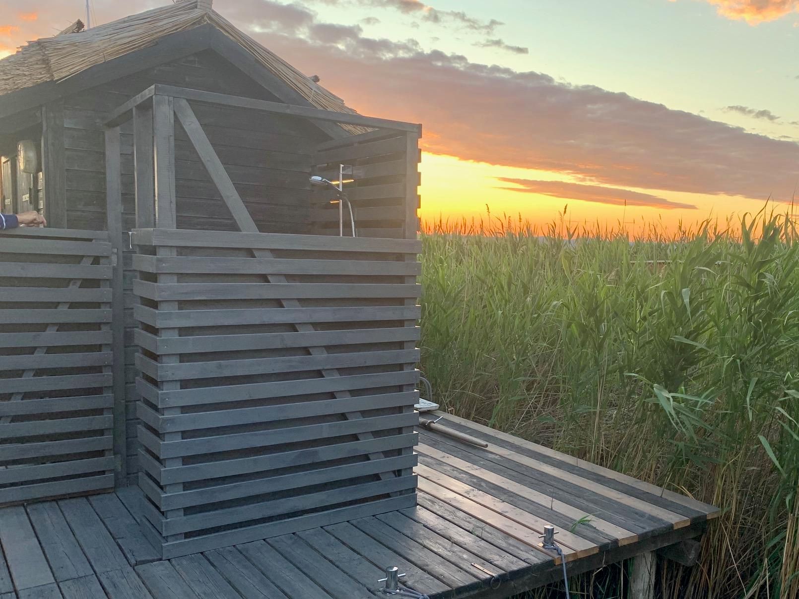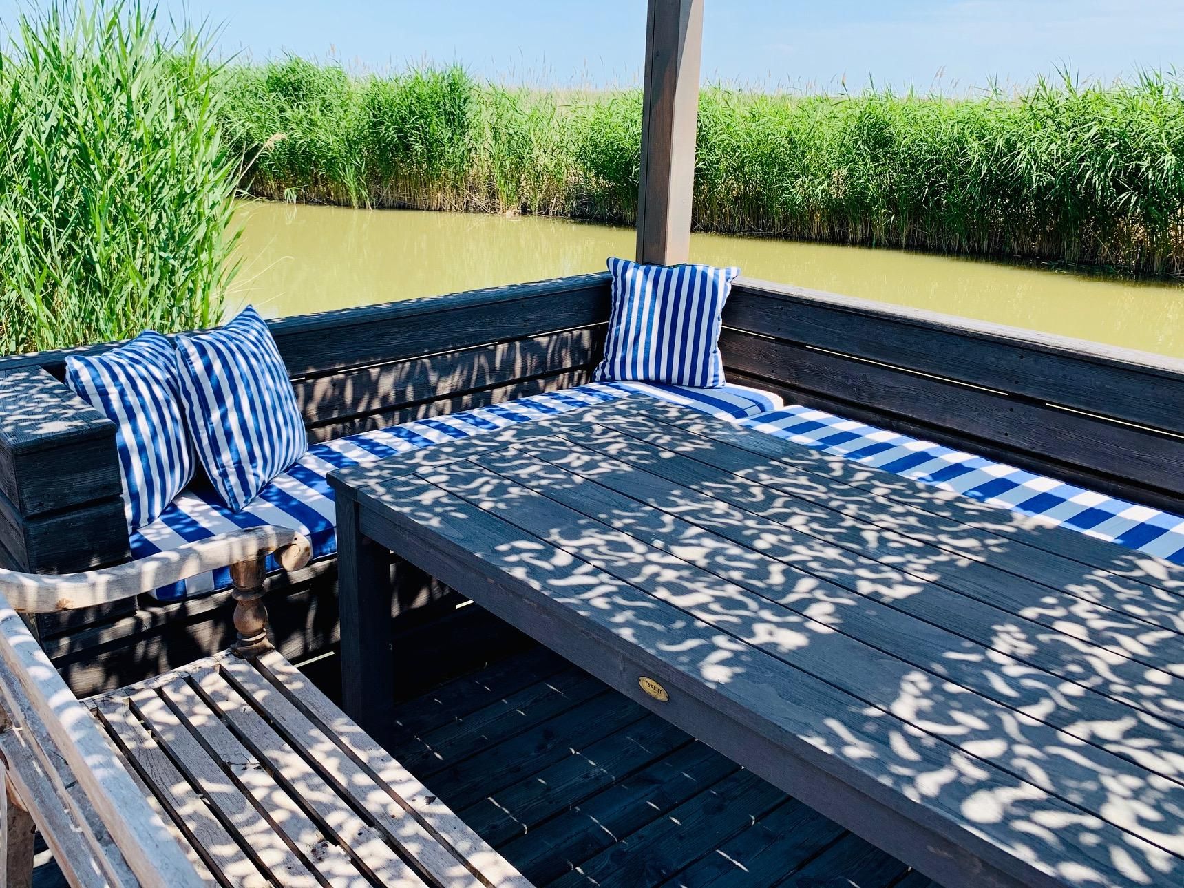 Vor der Seehütte kann man schwimmen. Der gesamte Neusiedlersee ist aber nicht sehr tief. Ein großes Sonnendeck mit gepolsterten Auflagen lädt zum Sonnenbaden und Entspannen ein. Neben dem Esstisch in der Hütte haben Sie auch Draußen auf der Terrasse einen großen Esstisch mit gemütlicher Eckbank. Die Hütte liegt mitten im Naturschutzgebiet und ist von Wasser und Schilf umgeben. Der Neusiedlersee und die Ruster Altstadt gehören zum UNESCO Weltkulturerbe. Damit misst die UNESCO der Kulturlandschaft Neusiedler See einen außergewöhnlichen Wert für die gesamte Menschheit bei.