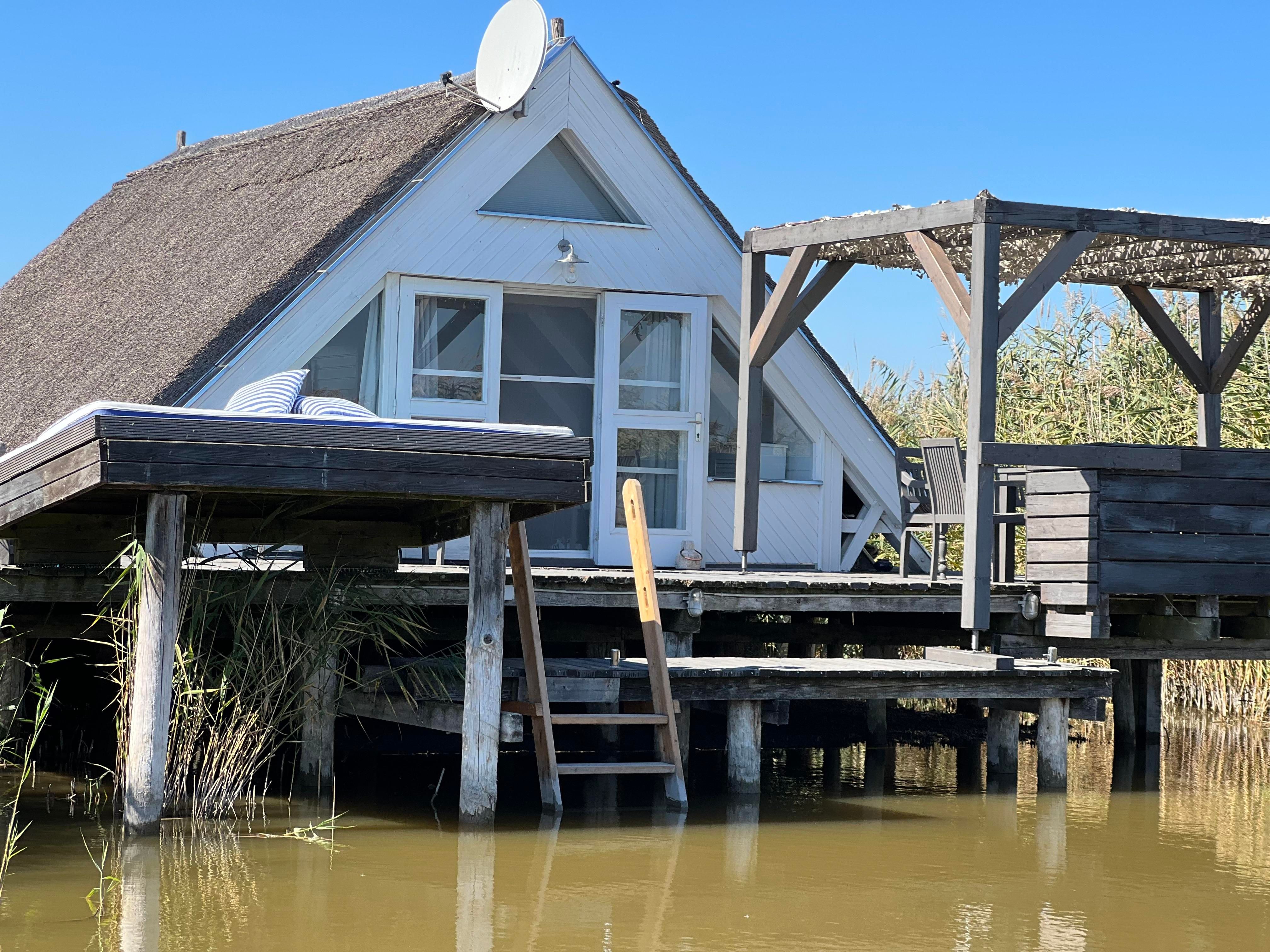 Willkommen in der Seehütte Neusiedlersee. Das romantische Chalet ist zirka 38 m² groß und steht auf einem zirka 100 m² Holz Plateau direkt im Wasser des Neusiedler Sees. Umgeben von Schilf und dem Ausblick auf Aussteigen aus dem Alltag.
