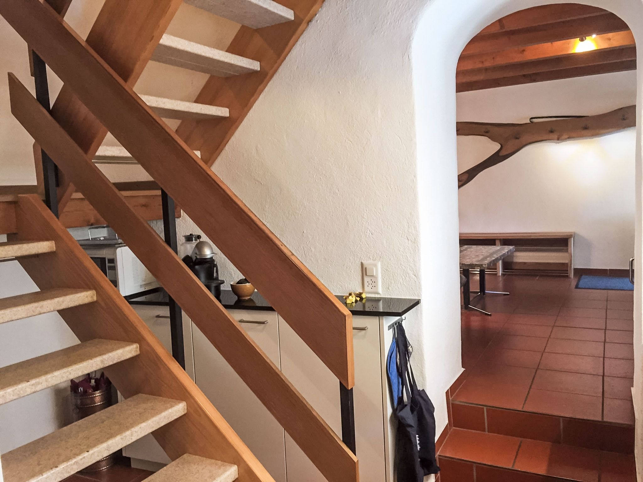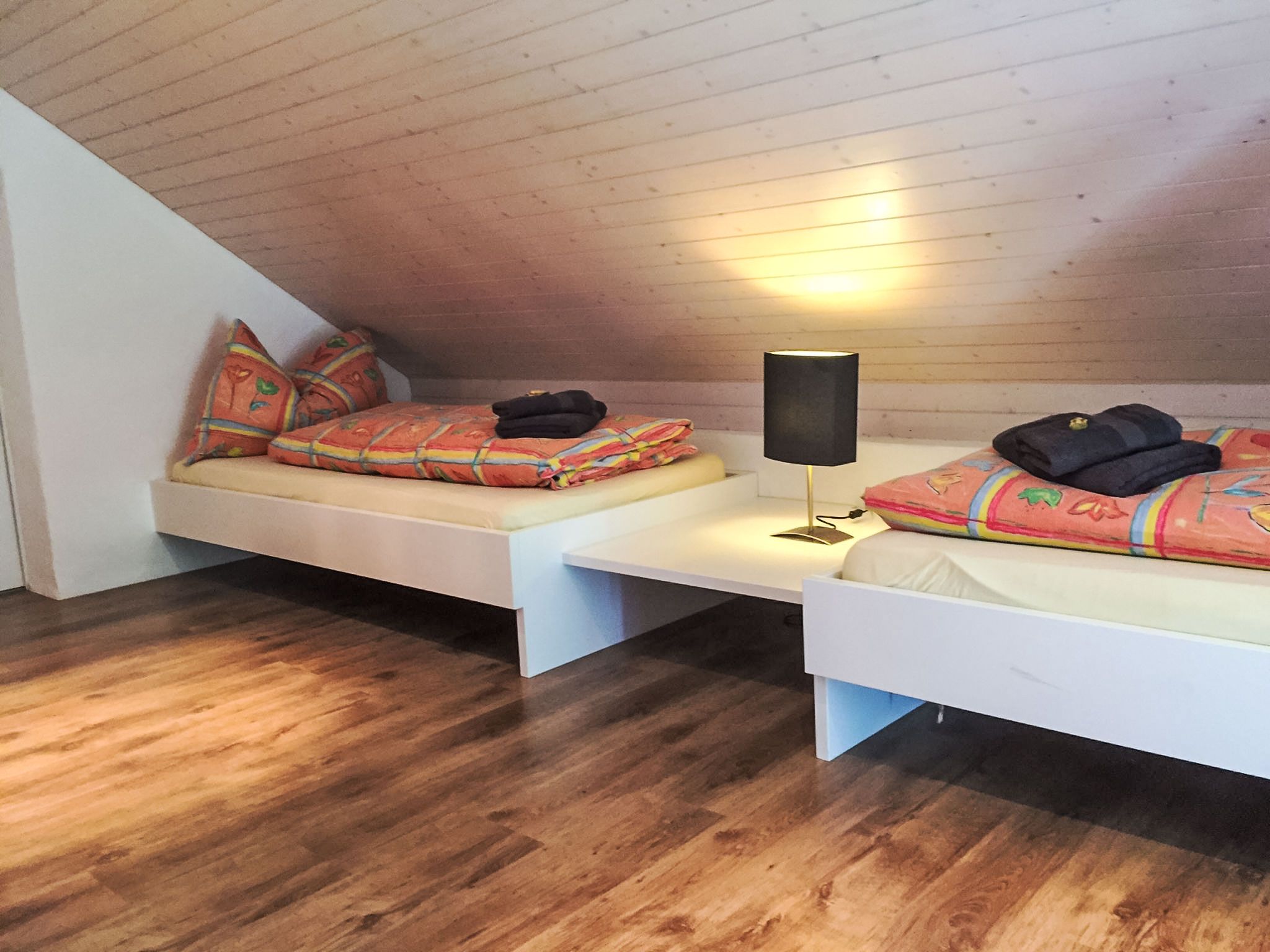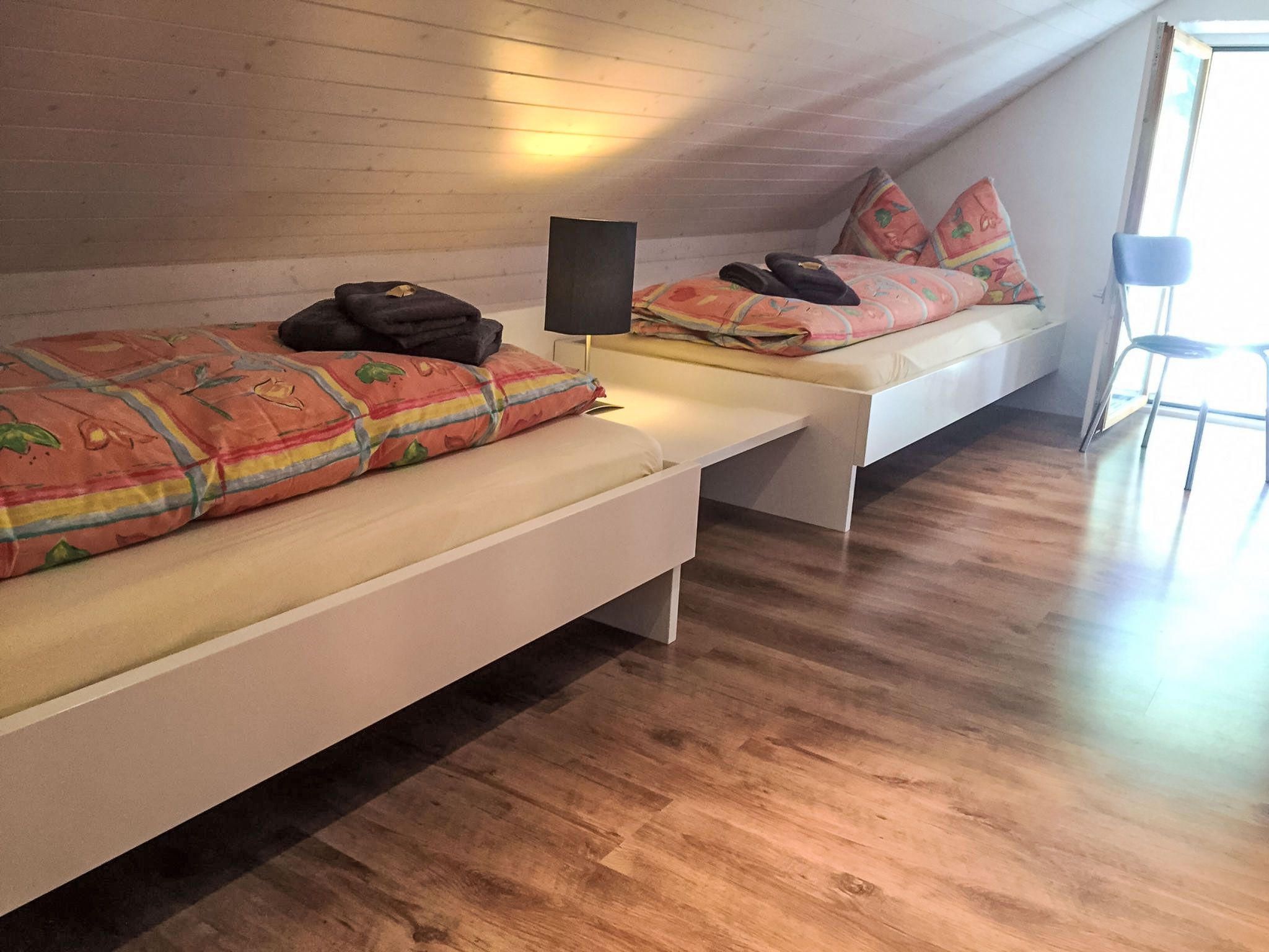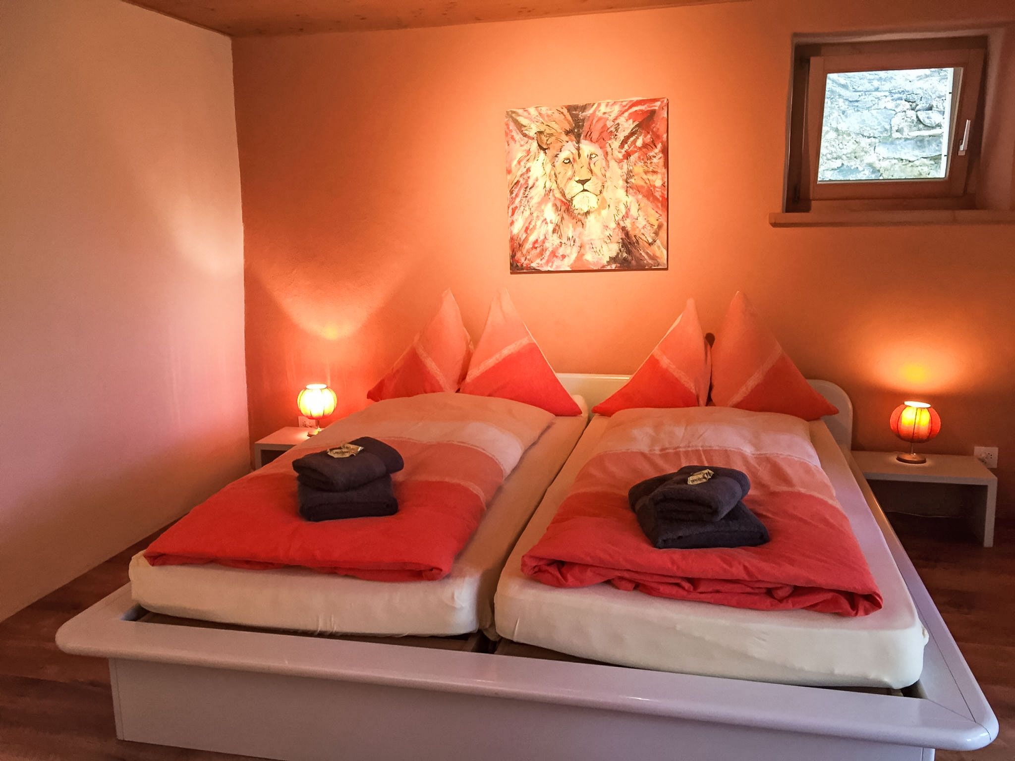Anna, 4-Zimmer-Haus 80 m2 auf 3 Stockwerken. Geräumig und hell, komfortabel und gemütlich eingerichtet: Wohnzimmer mit Schwedenofen und Sat-TV (Flachbildschirm), Radio. Ausgang zum Gartensitzplatz. Offene Küche (Backofen, Geschirrspüler, 4 Glaskeramikplatten, Toaster, Wasserkocher, elektrische Kaffeemaschine, Kapseln für die Kaffeemaschine (Nespresso) extra, Racletteofen, Fondue Set (Käse)) mit Esstisch und Essecke. Dusche/WC. E-Heizung. Obergeschoss: 1 Doppelzimmer mit 1 Doppelbett (2 x 90 cm, Länge 200 cm). Ausgang zum Balkon. 1 Zimmer mit 1 Doppelbett (2 x 90 cm, Länge 200 cm). 2. Obergeschoss: abgeschrägtes Spielzimmer mit 2 Betten (90 cm, Länge 200 cm). Gartensitzplatz überdacht. Terrassenmöbel, Gartengrill, Liegestühle (2). Zur Verfügung: Kinderhochstuhl, Babybett bis 2 Jahre (extra), Haartrockner. Internet (WLAN, gratis). Parkplatz in 50 m. Bitte beachten: Nichtraucher-Haus. Maximal 1 kleines Haustier/Hund erlaubt. Parkplatz mit Casa Anna bezeichnet. Erdgeschoss: Fussbodenheizung, 1. + 2. OG Elektro Radiatoren. NL-