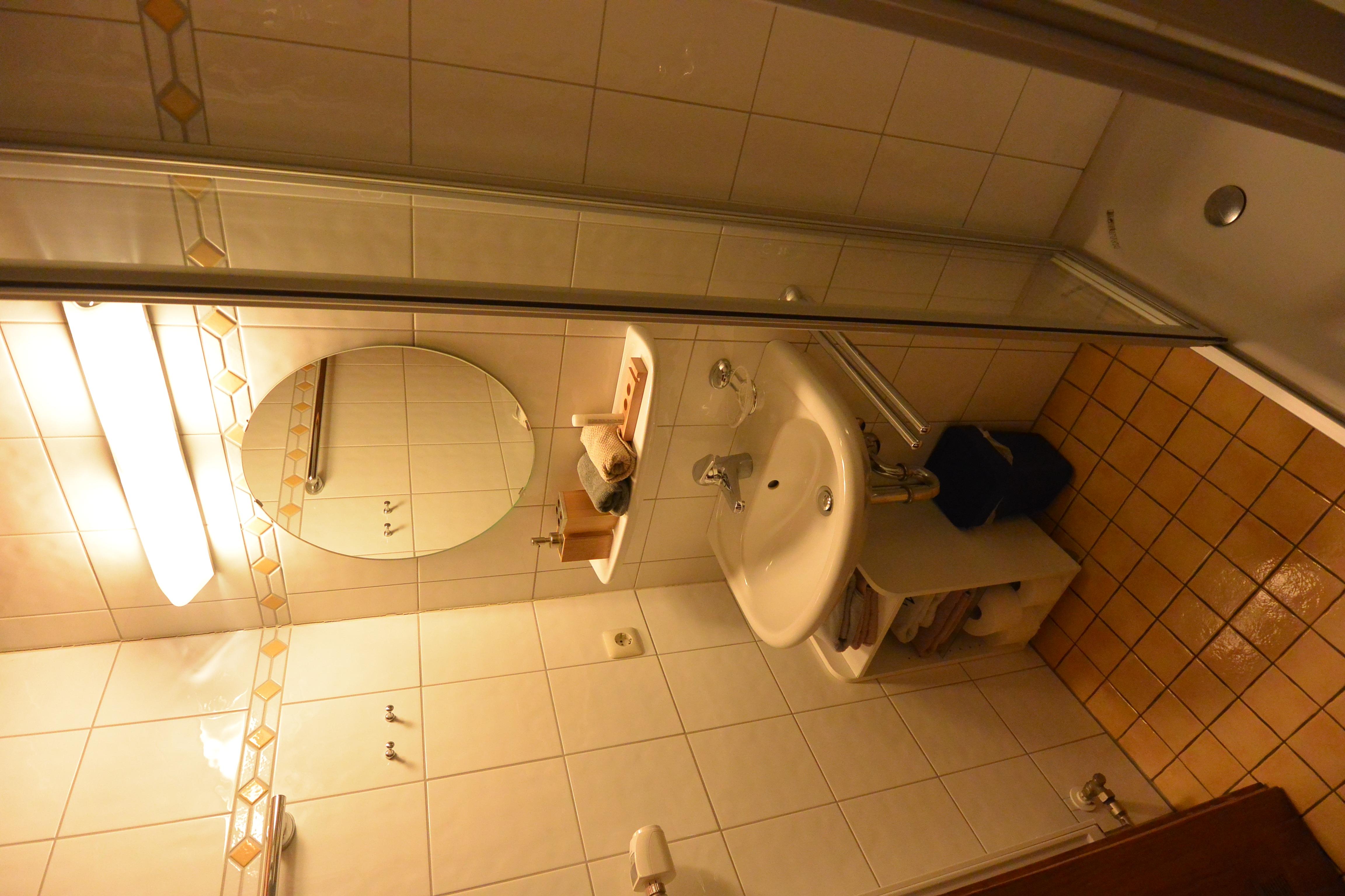 Im Erdgeschoss der Ferienwohnung befindet sich eine große Küche, die mit einer Mikrowelle und einer Geschirrspülmaschine ausgestattet ist. Hier können Sie Ihre Mahlzeiten bequem zubereiten. Zudem gibt es ein Badezimmer mit Dusche und WC sowie ein Einbettzimmer.