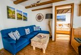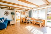 Im Wohnzimmer befindet sich ein großer internetfähiger Fernseher, von dem aus die Gäste entweder von der Couch mit Schlaffunktion oder von der Eckbankgruppe aus ihre Lieblingssendungen sehen können. Die Wohnung bietet somit eine gemütliche und komfortable Umgebung zum Entspannen.