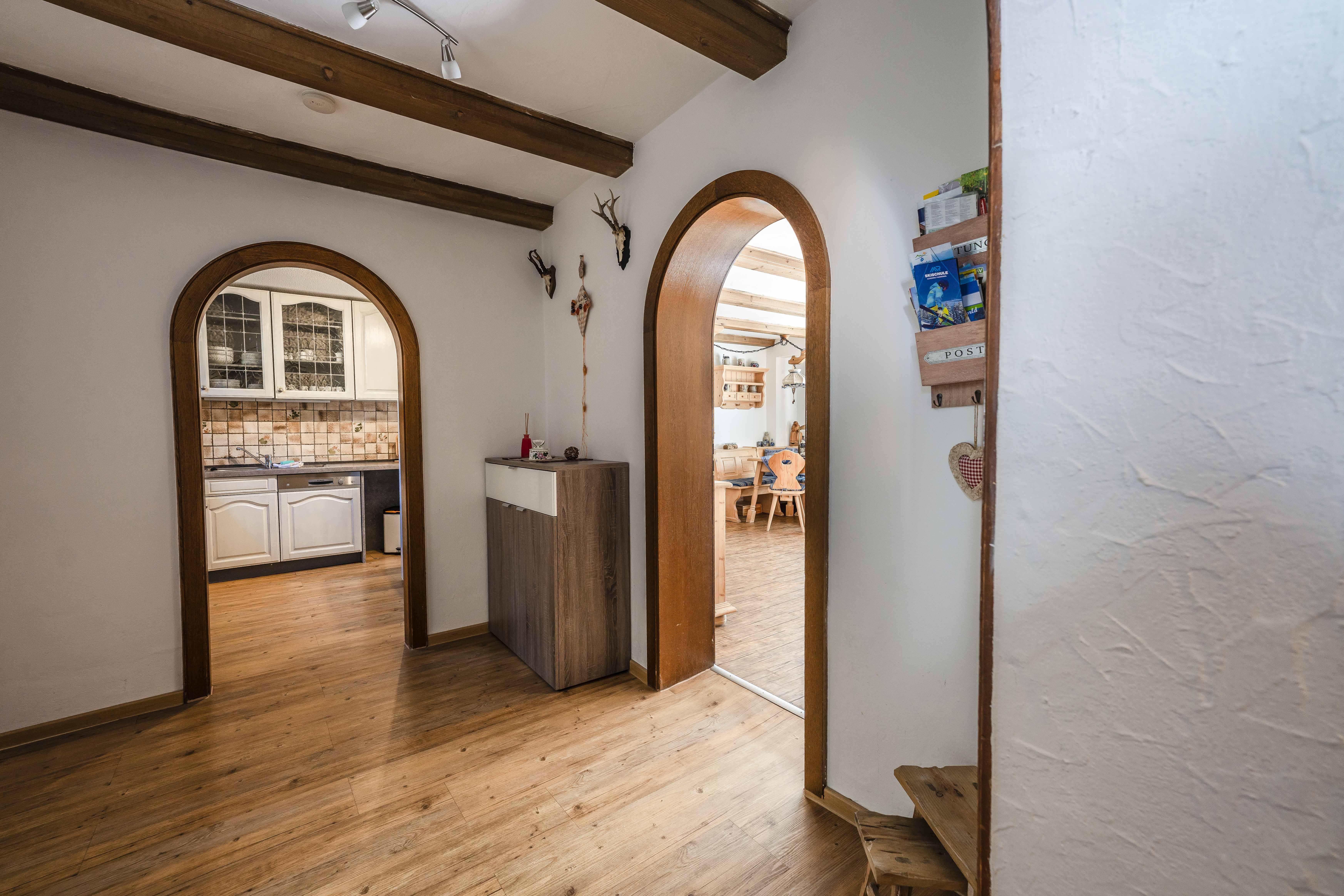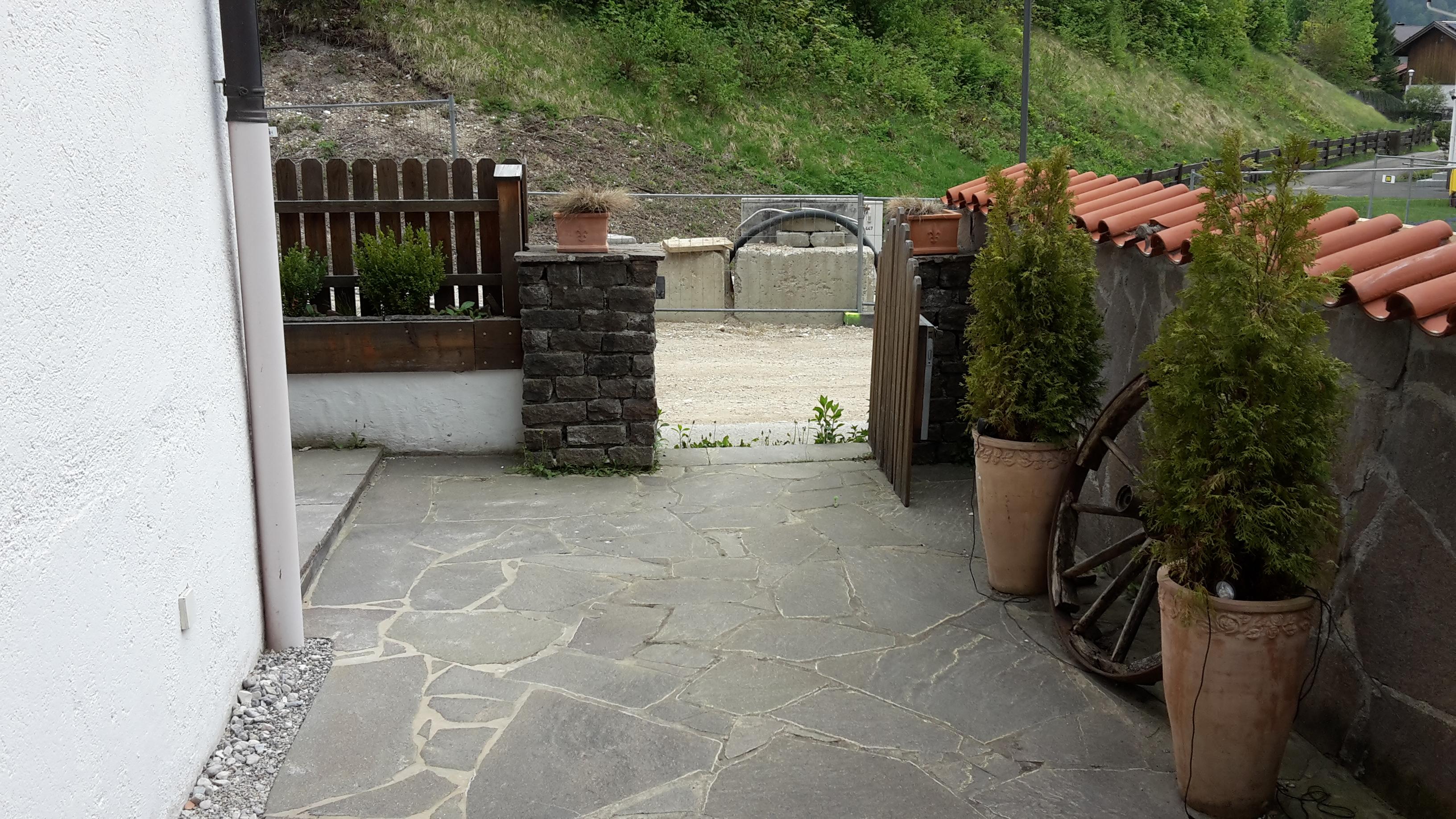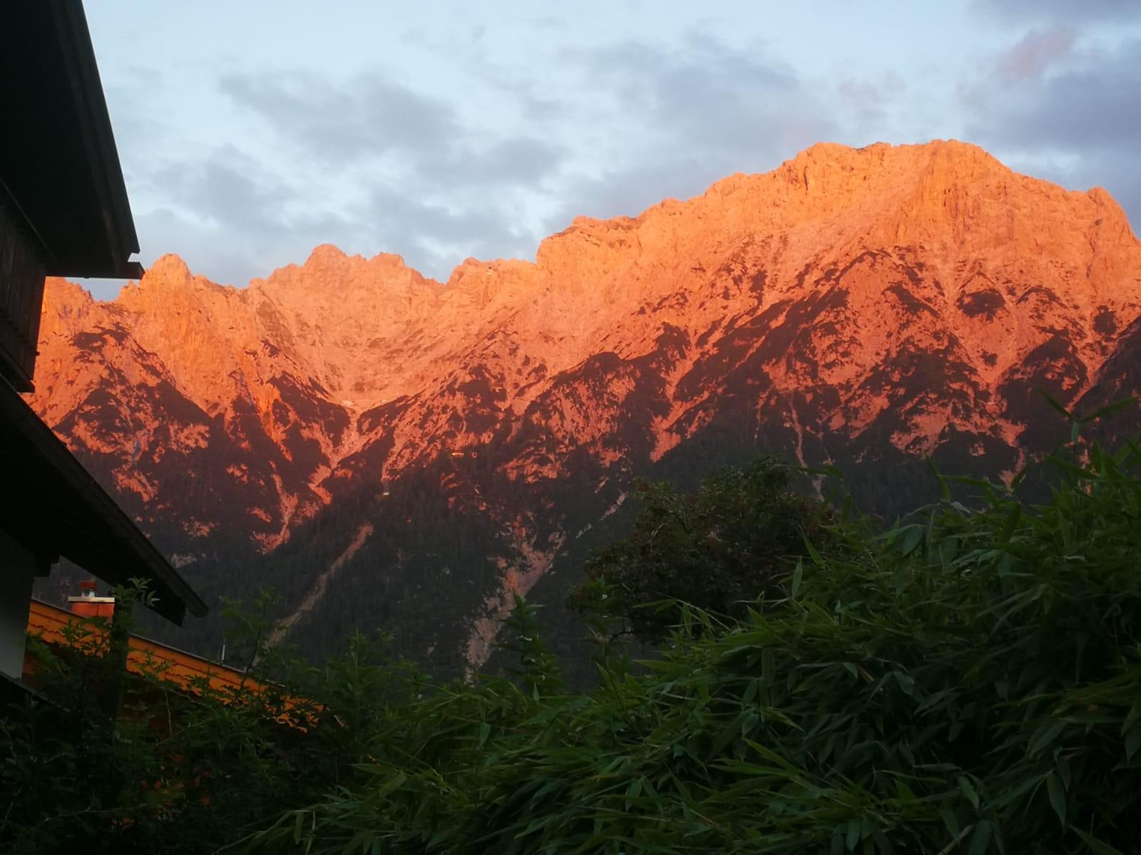 Die Paterrewohnung ist nach Osten ausgerichtet, so dass die Gäste auf ihrer eigenen Terrasse das Frühstück mit einem herrlichen Bergblick in der Morgensonne genießen können. Dies schafft eine entspannte und idyllische Atmosphäre.