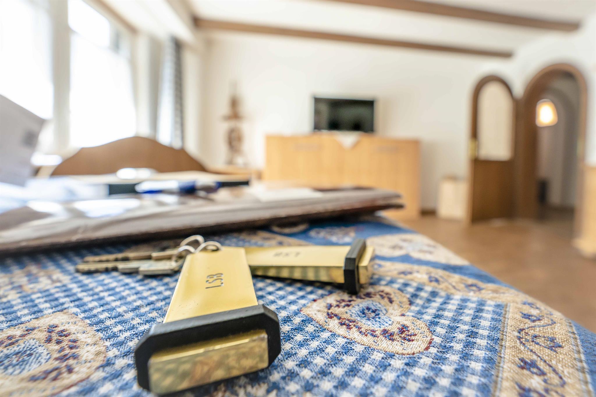 Die Wohnung verfügt über zwei Schlafzimmer, eines mit einem Doppelbett und das andere mit einem Einzelbett. Zusätzlich steht im Wohnzimmer ein Schrankbett zur Verfügung. Hier können sich die Gäste nach einem aktiven Tag in den Bergen entspannen und erholsamen Schlaf finden. Ein Flat-TV sorgt für Unterhaltung.