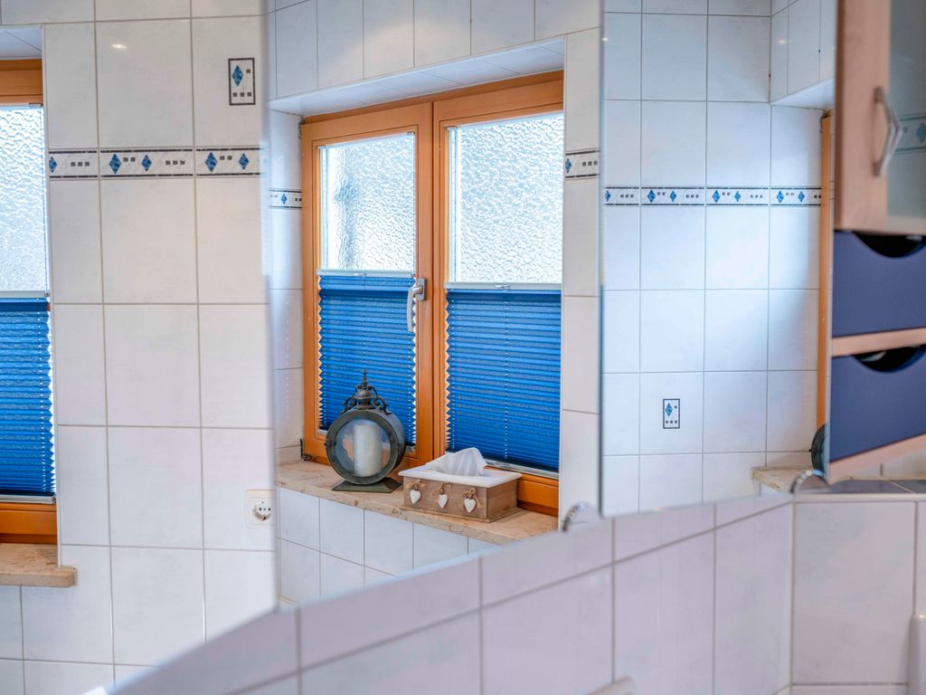 Das Badezimmer der Ferienwohnung Wörnerblick ist ein Ort der Entspannung und des Komforts. Es verfügt über eine moderne Deckenbeleuchtung, die für eine angenehme Atmosphäre sorgt und Ihnen ermöglicht, das Badezimmer nach Ihren Bedürfnissen zu beleuchten.