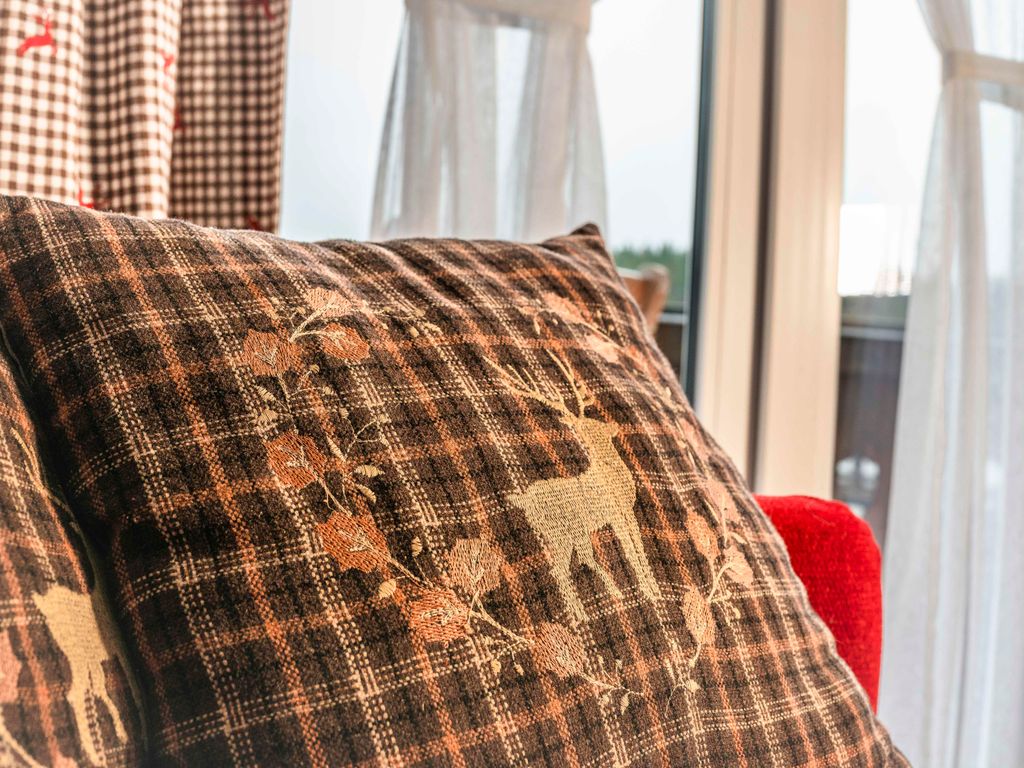Die Wohnung ist modern eingerichtet und verfügt über einen gemütlichen Wohnbereich mit einem Doppelbett, einem bequemen Sofabett und einem Flachbildfernseher. Hier können sich die Gäste nach einem aktiven Tag in den Bergen entspannen und den Blick auf die Natur genießen. Kostenloses WLAN steht ebenfalls zur Verfügung.