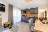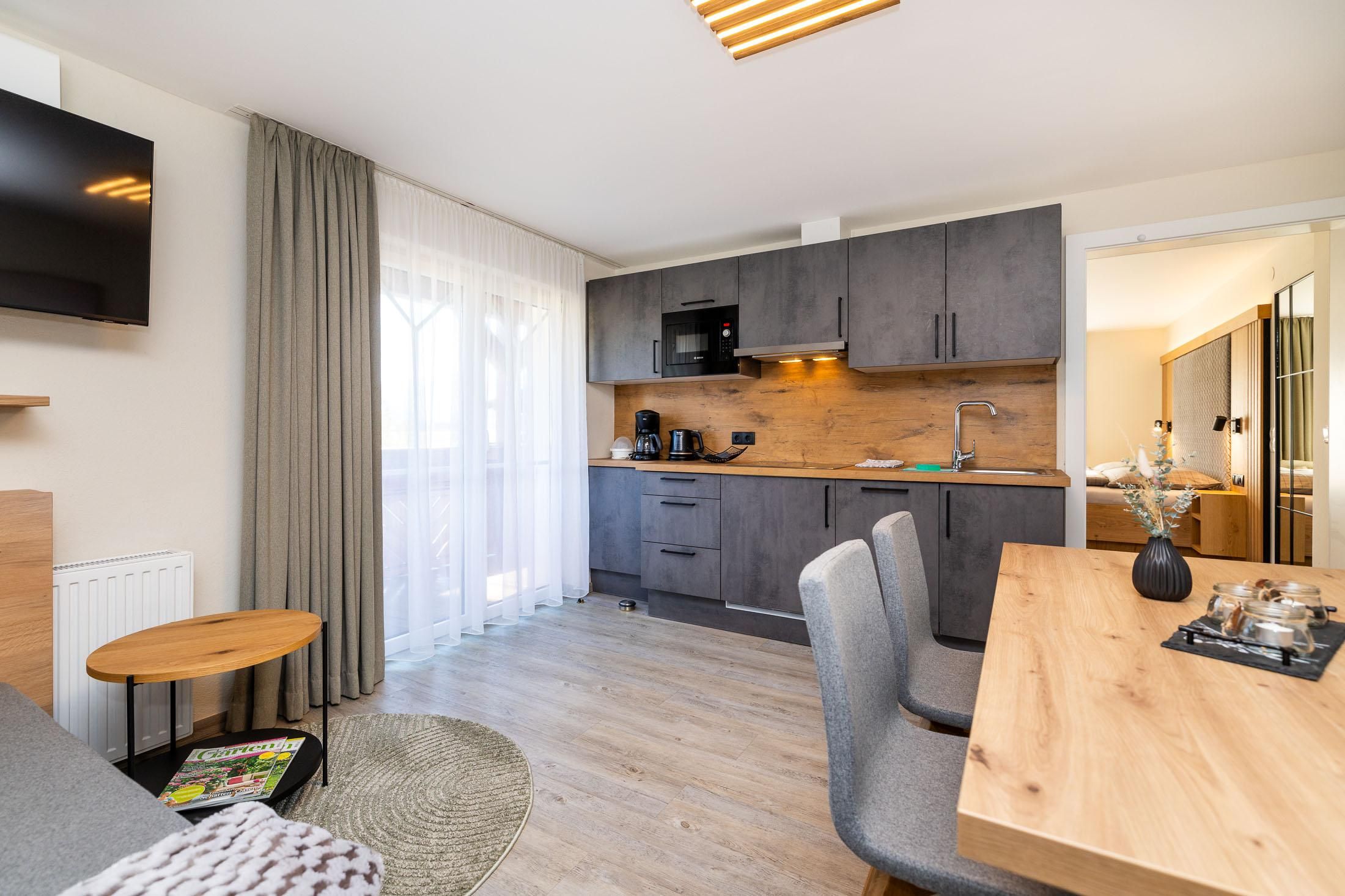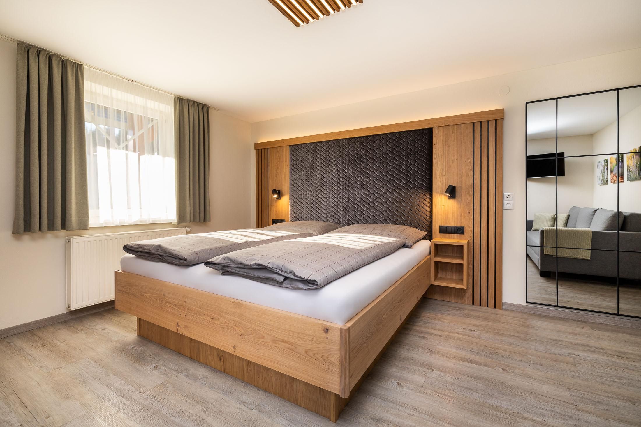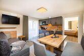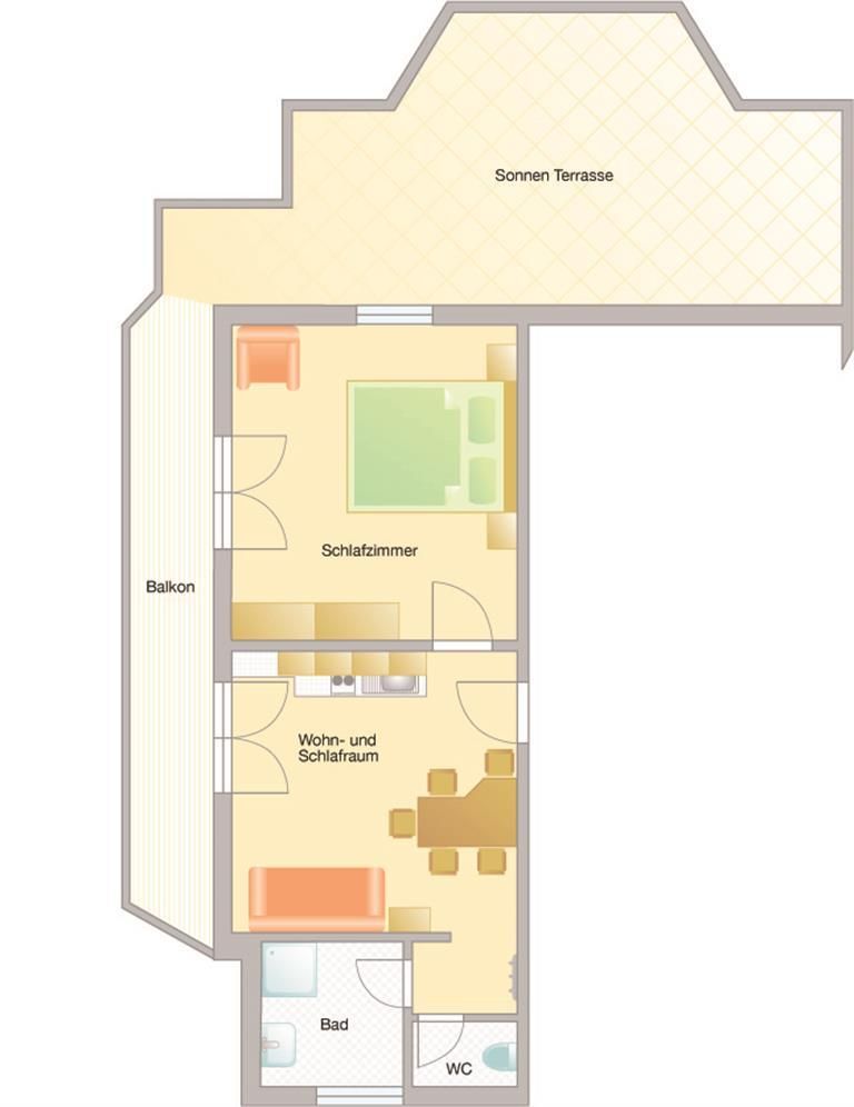 Gemütlich ausgestattetes Appartement mit Balkon (Süd-Osten) und einer großen Terrasse (Süd-Westen) und Terrassenmöbel. Toilette getrennt vom Badezimmer. Im Anschluss steht bei Bedarf ein Doppelzimmer (DU und WC) als zweiter Schlafraum zur Verfügung.