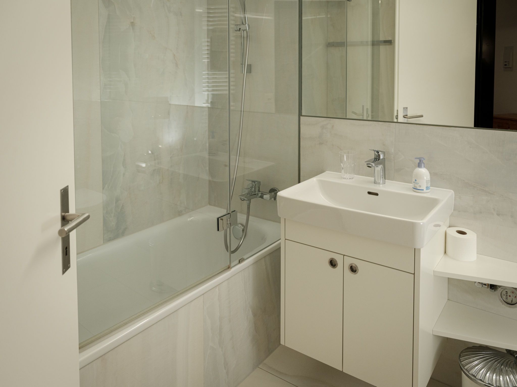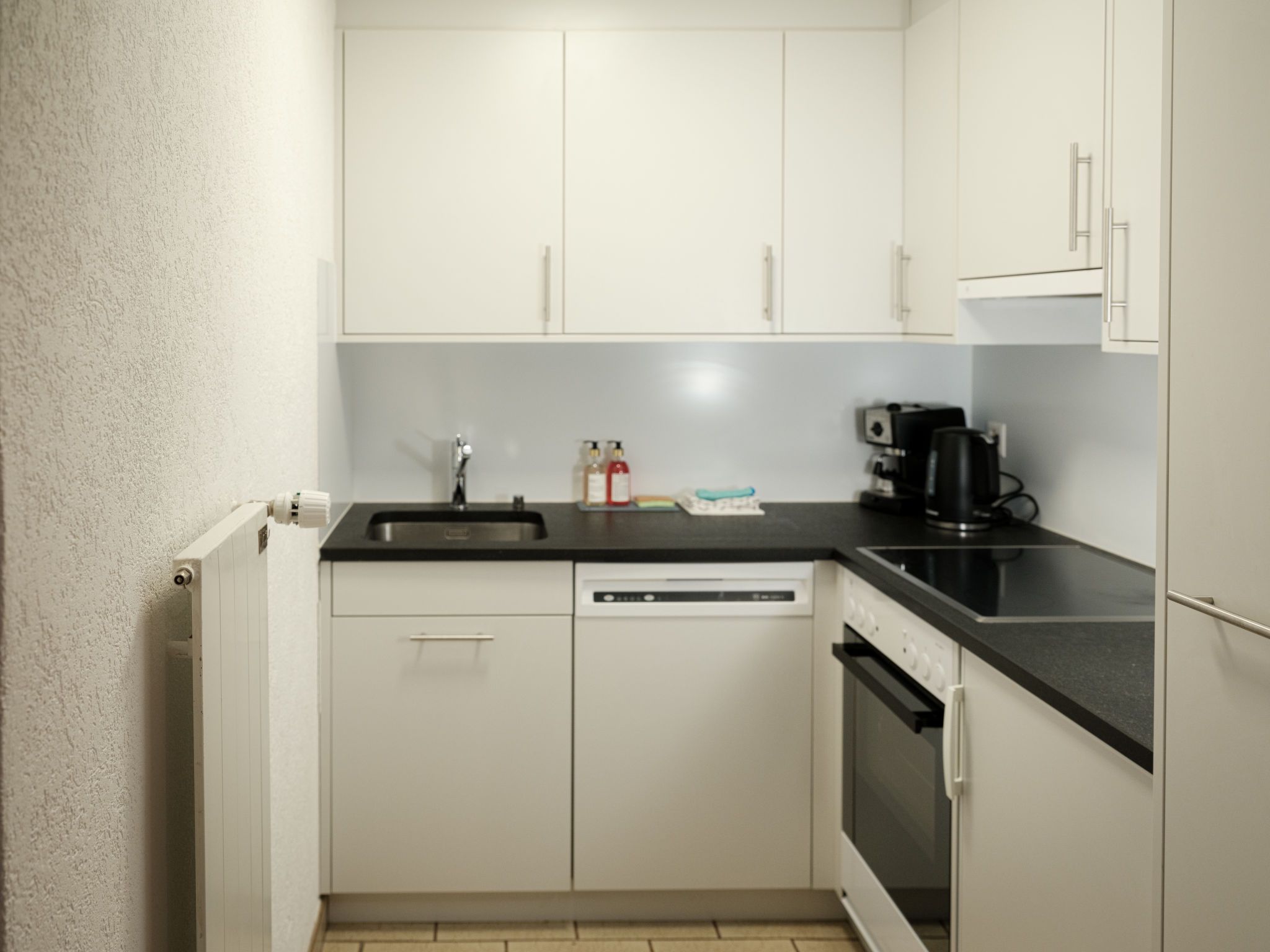 Pasadena, 2-Zimmer-Wohnung 73 m2 im 1. Stock. Geräumig und hell, schön und geschmackvoll eingerichtet: Wohn-/Esszimmer mit Esstisch und TV. Ausgang zum Balkon. 1 Doppelzimmer mit 1 Doppelbett (2 x 90 cm, Länge 200 cm). Ausgang zum Balkon. Küche (Backofen, Geschirrspüler, 4 Glaskeramikplatten, Toaster, Wasserkocher, Tiefkühler, elektrische Kaffeemaschine). Bad/WC. Grosser Balkon. Balkonmöbel. Seitliche Sicht auf die Berge. Zur Verfügung: Haartrockner. Internet (Wireless LAN, gratis). Bitte beachten: Nichtraucher-Unterkunft.